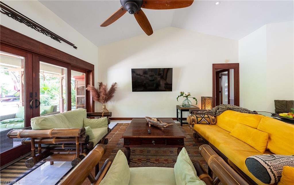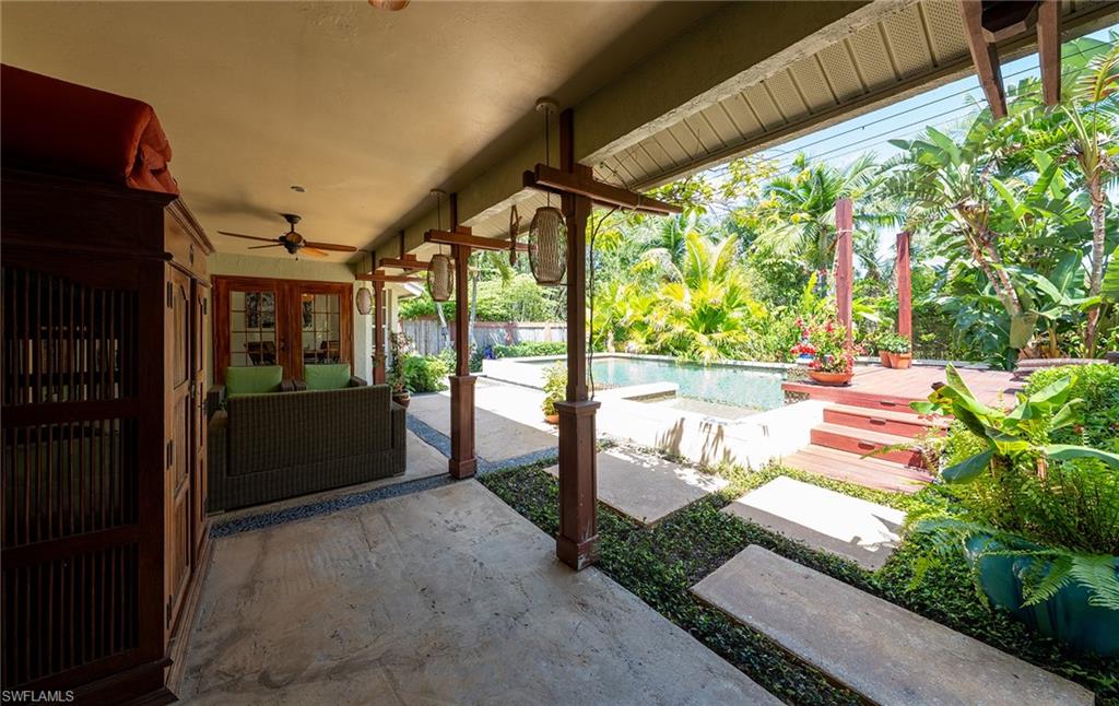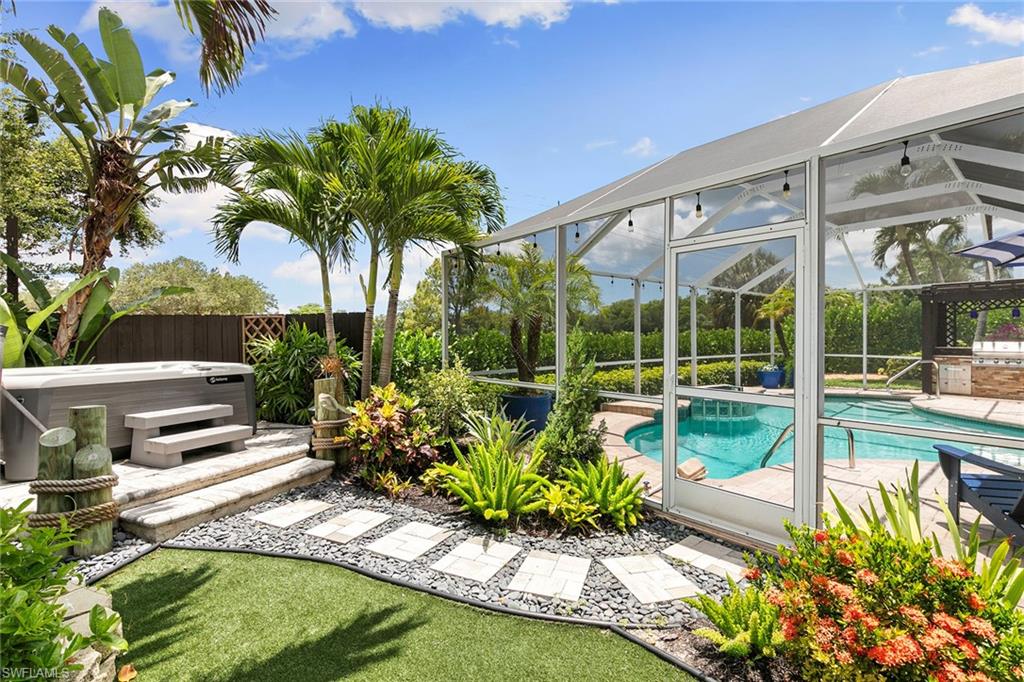 South Pacific-Inspired Zen Oasis in the Heart of Naples! Step into your own private paradise, where tropical luxury meets artistic design. Created by a Disney Imagineer, this one-of-a-kind home features a stunning resort-style pool and hot tub with an infinity-edge waterfall and fountain—all heated by in-ground propane. Surrounded by lush landscaping and custom Bali-inspired trim and finishes, every detail of this property evokes serenity and style. Enjoy Florida’s sunshine while sipping a piña colada on your secluded lanai, or open the full-length sliders in the vaulted-ceiling great room to let in gentle breezes and blur the line between indoor and outdoor living. The beautifully updated kitchen offers designer touches and smart functionality, including pull-out drawers and premium finishes. The spacious primary suite includes a walk-in closet, impact sliding doors to the lanai, and intricately carved custom wood accents that bring warmth and character. A guest bedroom features a custom Murphy bed, easily converting the space into a home office when needed. Need room for a boat or RV? You’ll have it—with the added bonus of optional Gulf access through the neighboring Coconut River Estates Civic Association, just $520/year. Amenities include a boat ramp, pickleball, tennis, and basketball courts. Located minutes from downtown Naples and the beaches, you’ll love the convenience of the nearby Gordon River Greenway, with miles of scenic boardwalks connecting you to Baker Park, the Naples Zoo, and more. This extraordinary, artistically crafted home isn’t just a place to live—it’s a lifestyle. Your South Pacific sanctuary awaits!