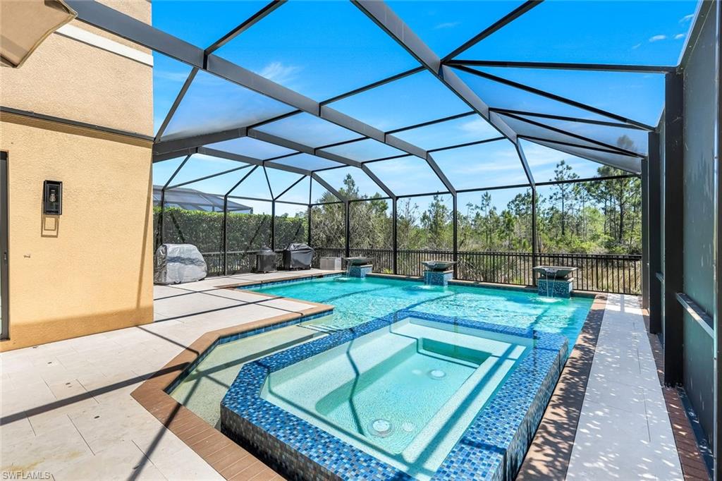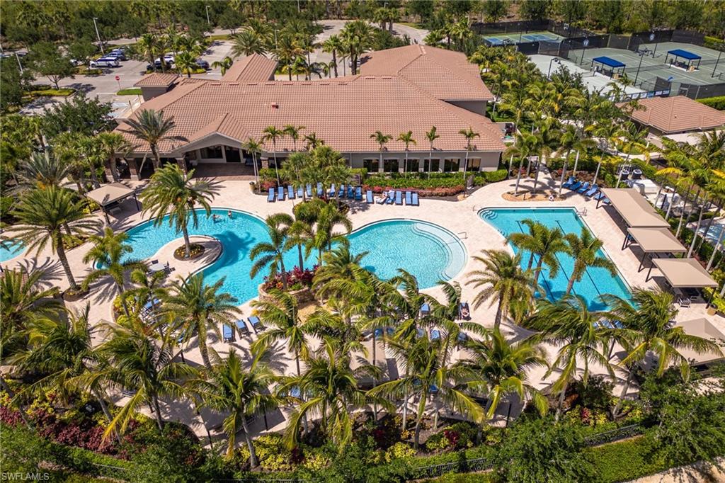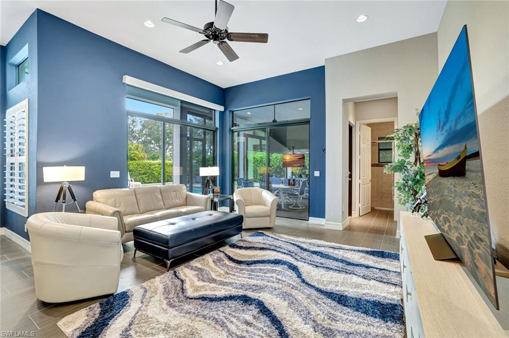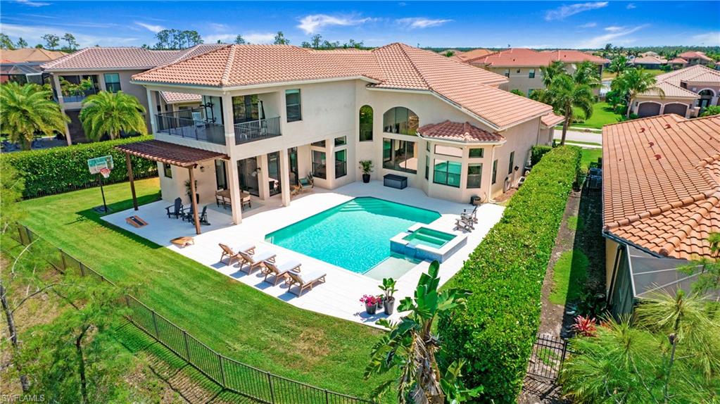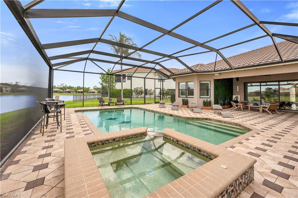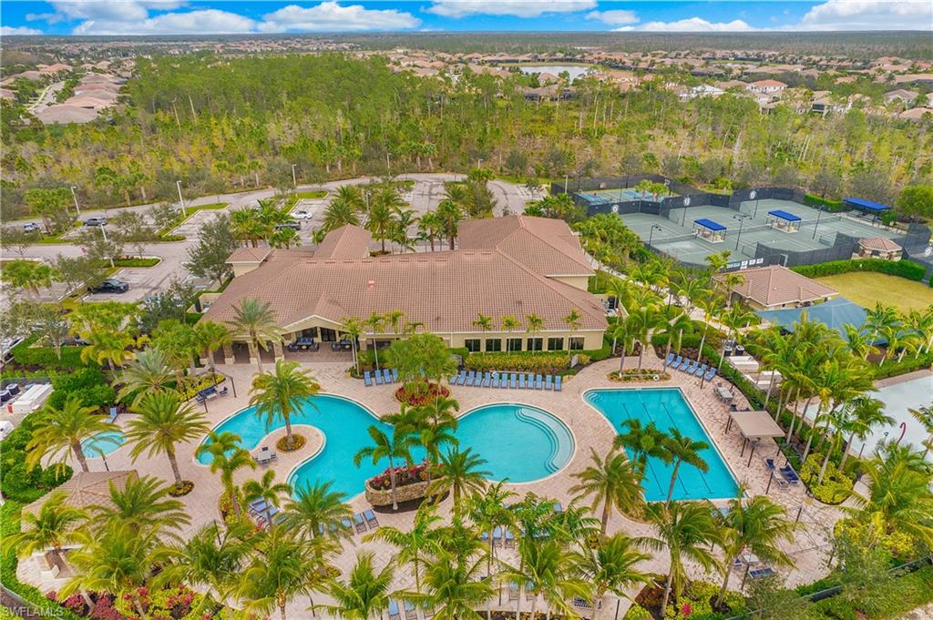 Live, Work & Play in Style – Exceptional Dubonnet Grande in Riverstone. Step into luxury with the highly sought-after Dubonnet Grande floorplan, thoughtfully designed for the way we live today—balancing work, relaxation, and entertainment, all under one roof. This expansive residence offers nearly 5,000 square feet of beautifully finished living space, including five spacious bedrooms, a versatile loft or den, a large game room, five and a half baths, and a three-car garage. From the moment you enter, soaring 20-foot ceilings and a bright, open-concept layout create an immediate sense of space and sophistication. Whether you're hosting gatherings or enjoying quiet moments at home, this inviting atmosphere sets the perfect stage for everyday life. The outdoor living area is equally impressive, featuring a large pool, three covered lanais, and a generous stamped concrete patio—all fully enclosed within a fenced yard that ensures privacy and tranquility. It’s a true backyard retreat, ideal for year-round enjoyment. Recent enhancements add to the home’s appeal, with a refreshed kitchen showcasing quartz countertops, updated tilework in the primary bathroom, and a complete interior and exterior repainting. A new paver driveway and walkway with raised stone planters, along with enhanced landscaping and upgraded exterior lighting, further elevate the home’s curb appeal. Impact-resistant doors and windows, paired with Storm Smart automatic shutters enclosing the expanded, screened lanai, provide peace of mind and comfort no matter the season. Located within the prestigious, amenity-rich Riverstone community, residents enjoy access to a state-of-the-art clubhouse, resort-style and lap pools, a hot tub, and a children’s water park. Fitness and recreation options abound with five Har-Tru tennis courts, pickleball and basketball courts, an indoor sports court, a dance studio, and a modern fitness center. Social spaces include lounges, a billiards room, and more—offering something for every member of the household. This exceptional home is nestled in an A-rated school district and ideally situated just minutes from I-75, upscale shopping, fine dining, and Naples’ renowned white-sand beaches. Discover the perfect blend of elegance, functionality, and lifestyle—schedule your private tour today!