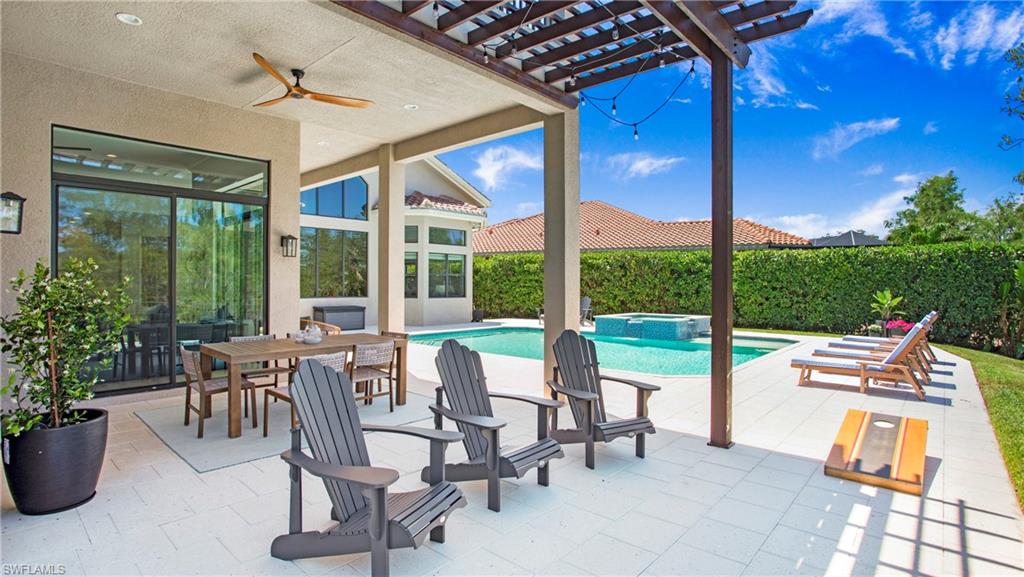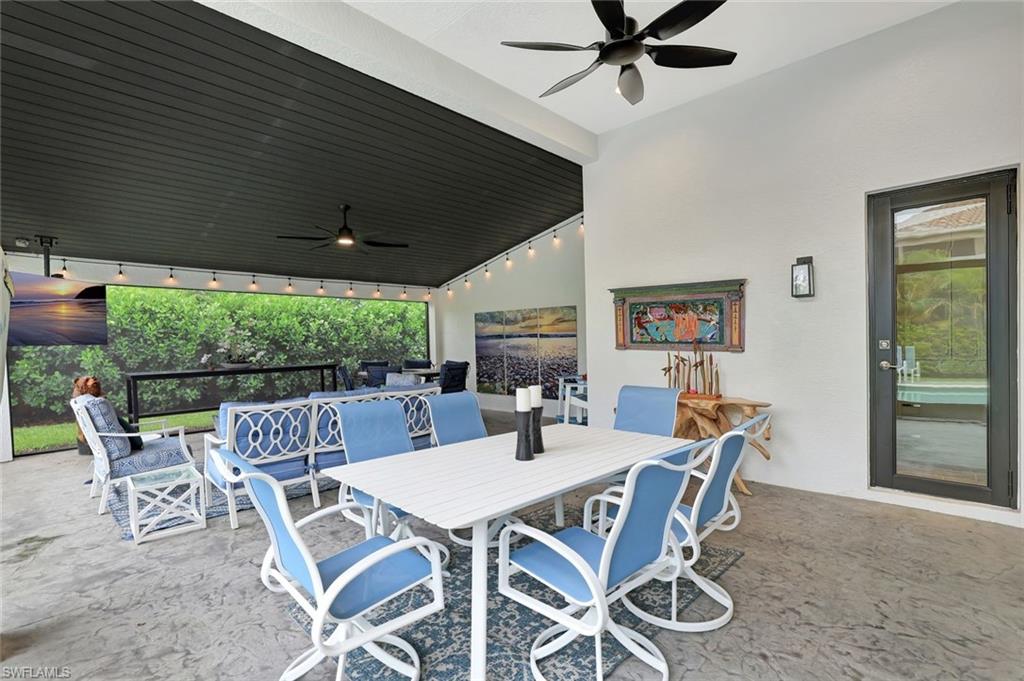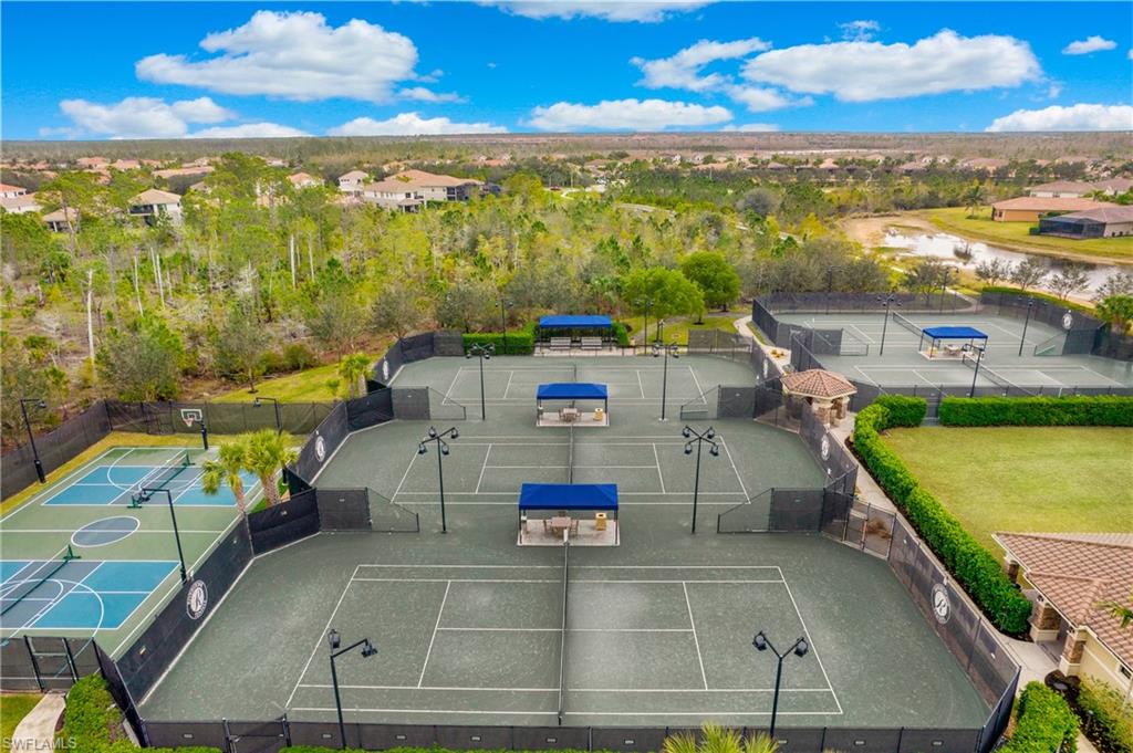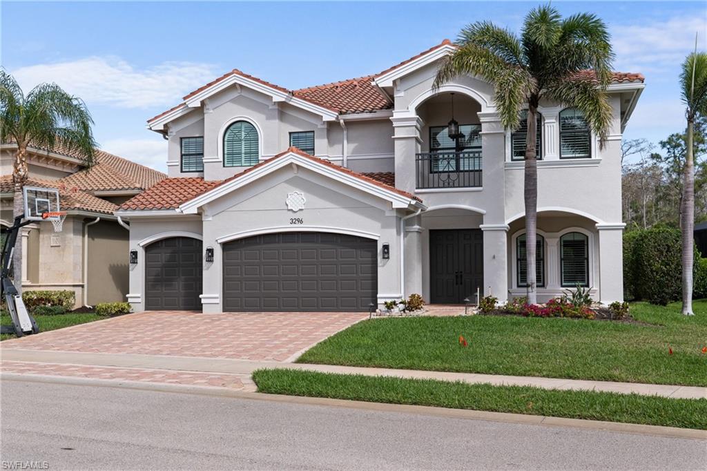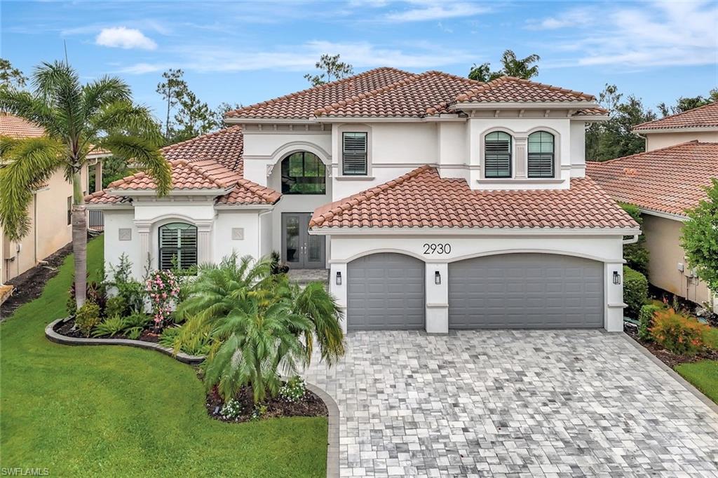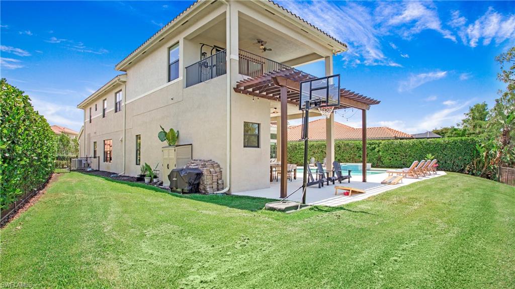 Live, Work & Play in Style – Exceptional Dubonnet Grande in Riverstone. Step into luxury with the highly sought-after Dubonnet Grande floorplan, thoughtfully designed for the way we live today—balancing work, relaxation, and entertainment, all under one roof. This expansive residence offers nearly 5,000 square feet of beautifully finished living space, including five spacious bedrooms, a versatile loft or den, a large game room, five and a half baths, and a three-car garage. From the moment you enter, soaring 20-foot ceilings and a bright, open-concept layout create an immediate sense of space and sophistication. Whether you're hosting gatherings or enjoying quiet moments at home, this inviting atmosphere sets the perfect stage for everyday life. The outdoor living area is equally impressive, featuring a large pool, three covered lanais, and a generous stamped concrete patio—all fully enclosed within a fenced yard that ensures privacy and tranquility. It’s a true backyard retreat, ideal for year-round enjoyment. Recent enhancements add to the home’s appeal, with a refreshed kitchen showcasing quartz countertops, updated tilework in the primary bathroom, and a complete interior and exterior repainting. A new paver driveway and walkway with raised stone planters, along with enhanced landscaping and upgraded exterior lighting, further elevate the home’s curb appeal. Impact-resistant doors and windows, paired with Storm Smart automatic shutters enclosing the expanded, screened lanai, provide peace of mind and comfort no matter the season. Located within the prestigious, amenity-rich Riverstone community, residents enjoy access to a state-of-the-art clubhouse, resort-style and lap pools, a hot tub, and a children’s water park. Fitness and recreation options abound with five Har-Tru tennis courts, pickleball and basketball courts, an indoor sports court, a dance studio, and a modern fitness center. Social spaces include lounges, a billiards room, and more—offering something for every member of the household. This exceptional home is nestled in an A-rated school district and ideally situated just minutes from I-75, upscale shopping, fine dining, and Naples’ renowned white-sand beaches. Discover the perfect blend of elegance, functionality, and lifestyle—schedule your private tour today!