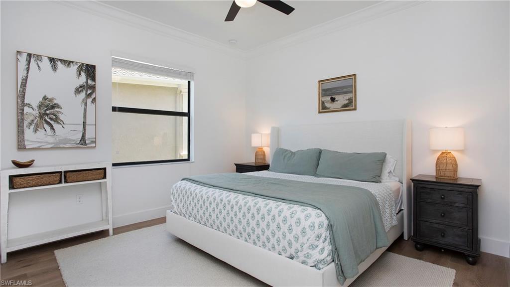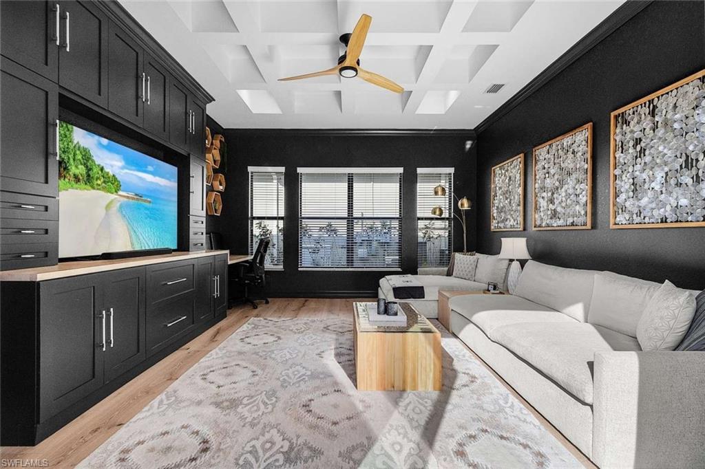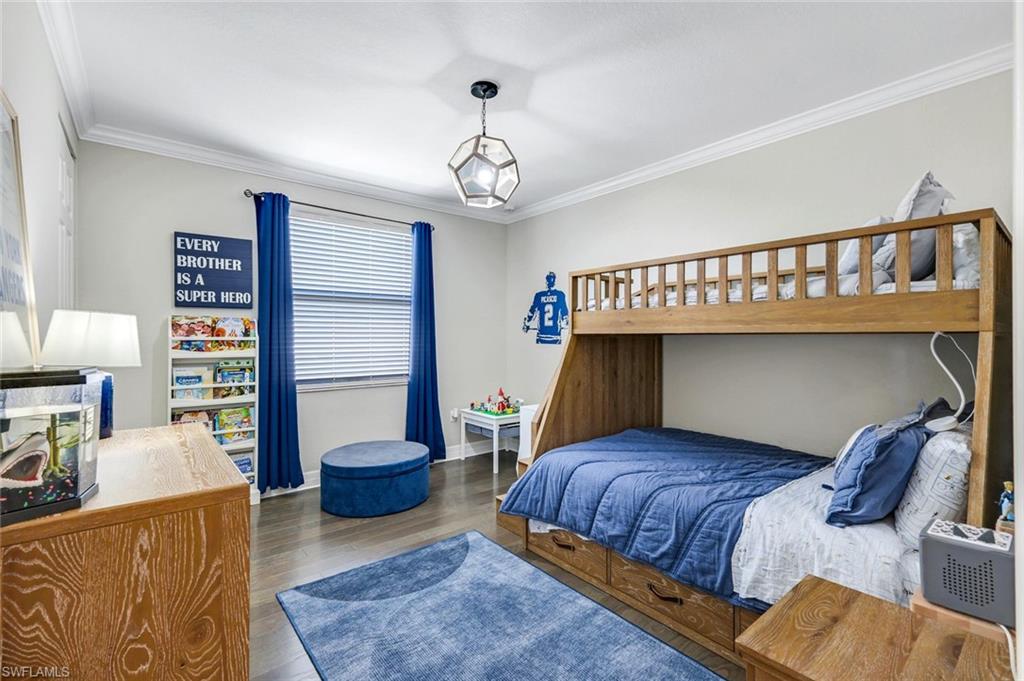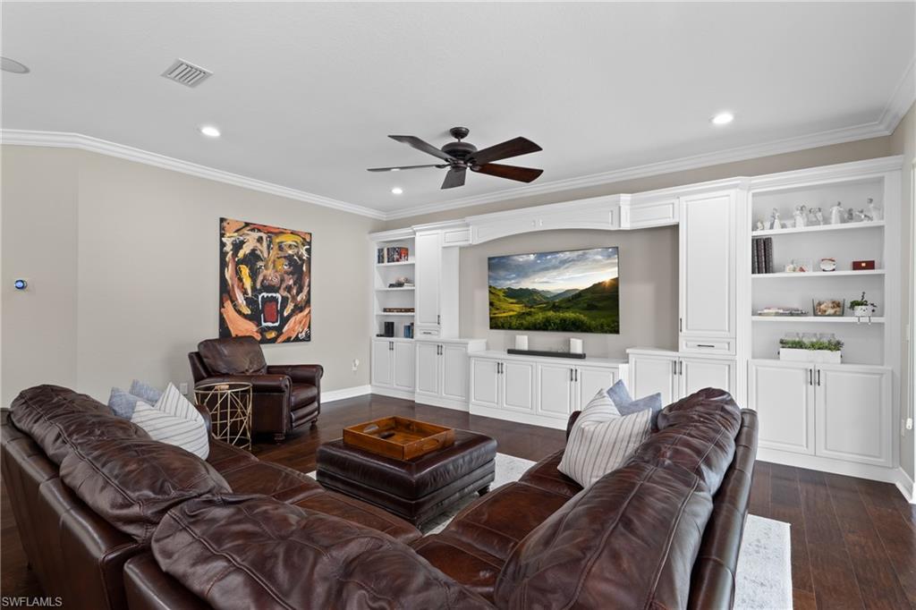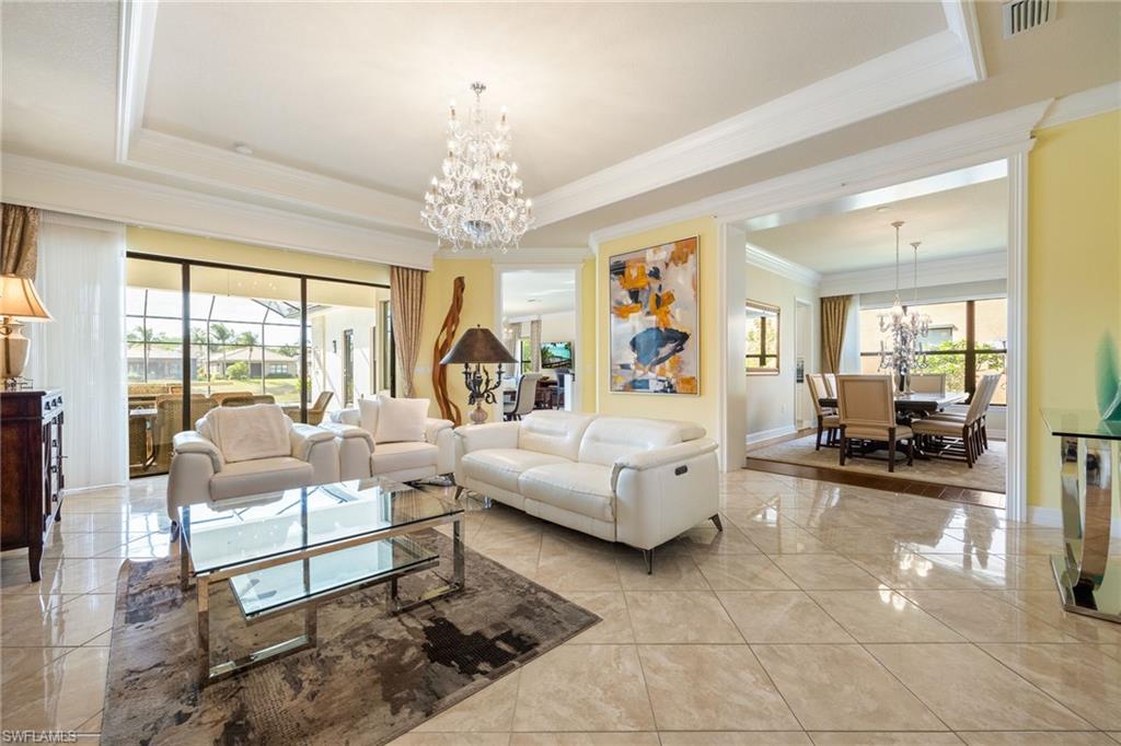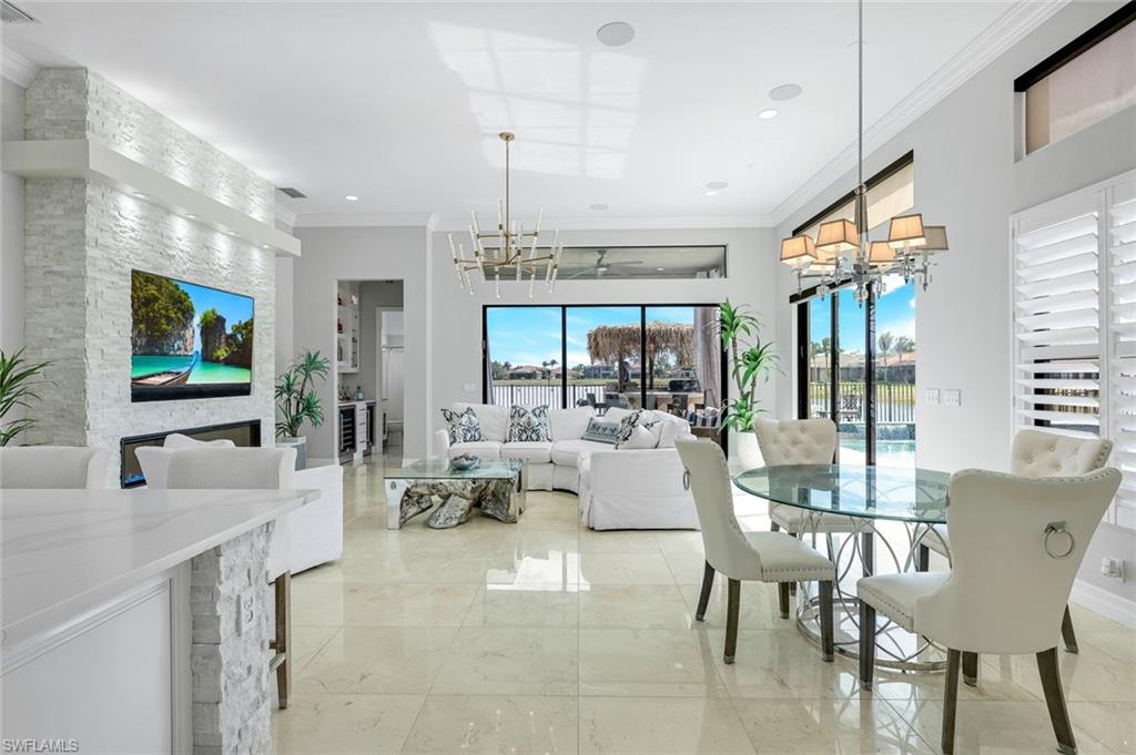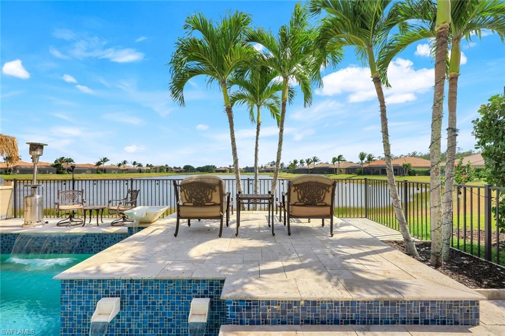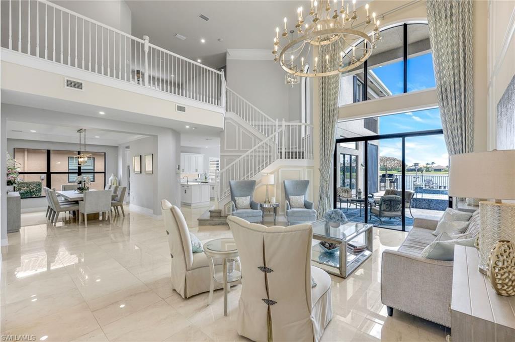 MOTIVATED SELLER...This extraordinary highly sought-after Dubonnet Grande Model located on a premium lakefront lot is a true masterpiece with over $350,000 in upgrades. This sprawling estate home features over 4980 sqft, 2 story entrance foyer and great room, 5 bed, 5.5 BA, loft, game/movie Room. Detailed crown molding. Plantation Shutters. Crema Marfil Marble flooring throughout entire first floor. Entire 2nd floor all new luxury Vinyl flooring. Formal dining room area, beautifully appointed kitchen with transom window, Island, dual sinks, double oven and casual dining space. Expanded "Built out" Family room with custom built fireplace with tv and surround sound. Bar with wine fridge and cigar humidor. Primary bedroom with custom built wall with enclosed tv, spa-like bath with dual sinks, walk in shower with multi shower heads, Roman bath tub, built in hamper/linen. Upstairs 3 BR, loft, game/movie room with reclining seats, custom wet bar and opening to large balcony overlooking the lake. Entertainment paradise resort style backyard travertine, saltwater pool, integrated vanishing edge spa and fountains, Tiki bar with fridge, tv, speakers and grill. 3 car garage with Electric Vehicle Charger. Impact glass, accordion/electric shutters. Located in North Naples, minutes to I-75 & zoned for "A" rated schools. Recreation area includes a fitness center, social hall, resort style pool, lap pool, spa, 5 lighted tennis courts, outdoor basketball/pickleball, full indoor basketball court, tot lot, children's water play area & game room & an activities coordinator. Don’t miss your chance to experience the Southwest Florida lifestyle you’ve been dreaming of. Paradise is waiting for you!