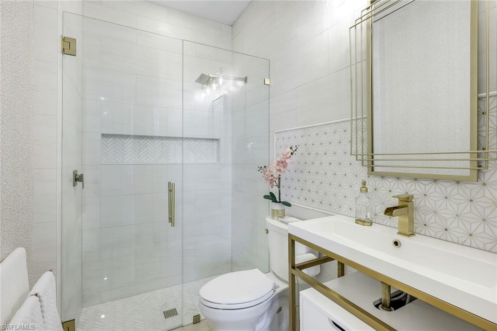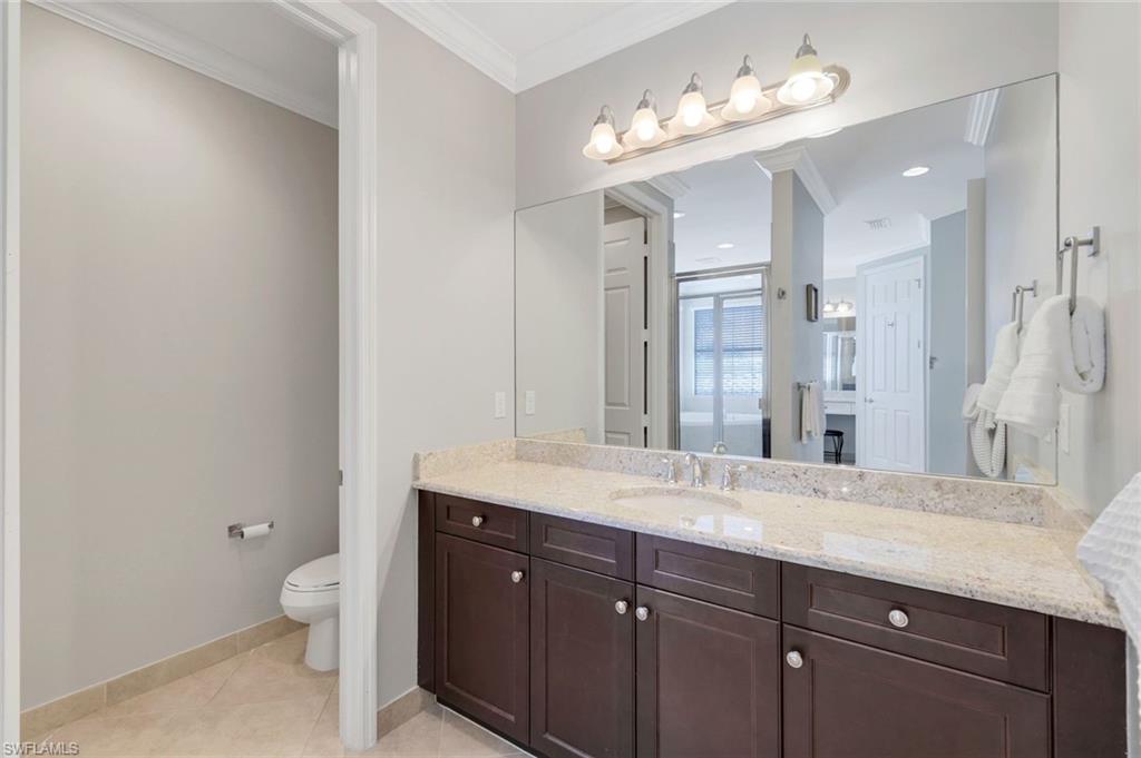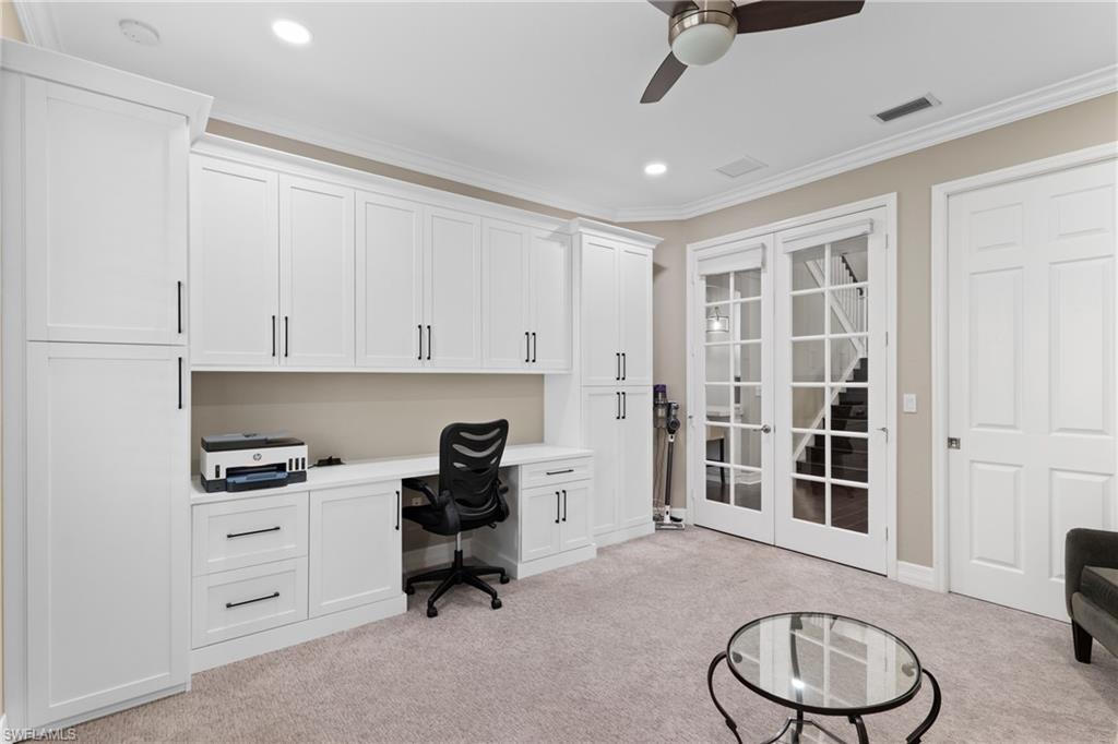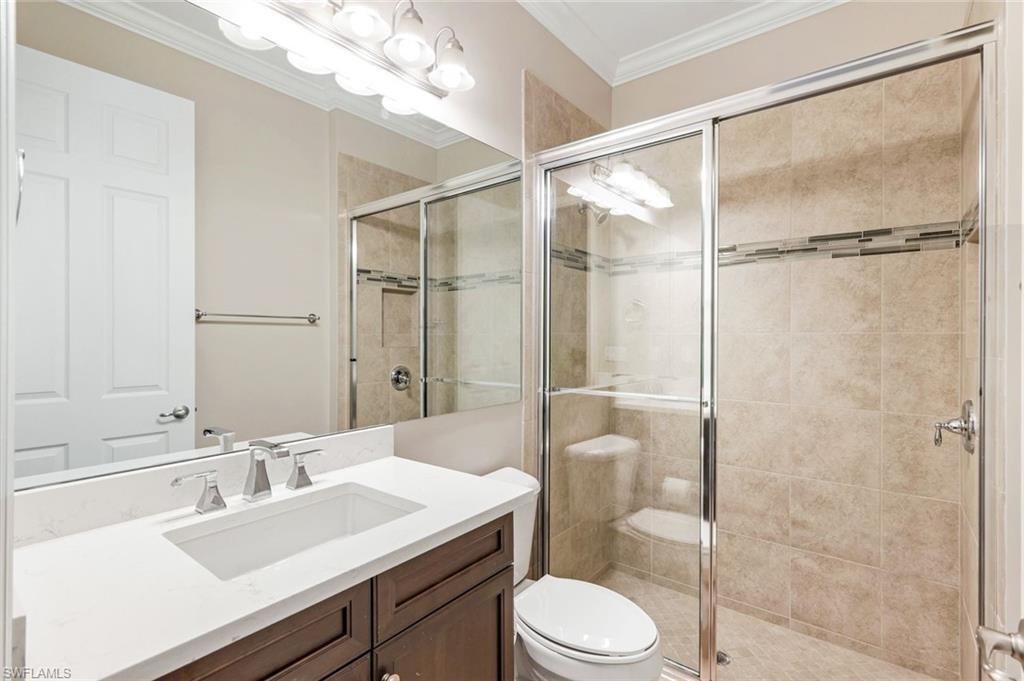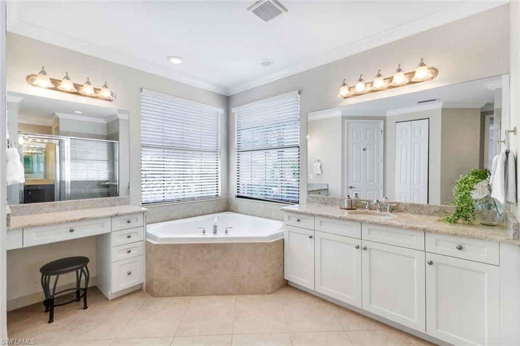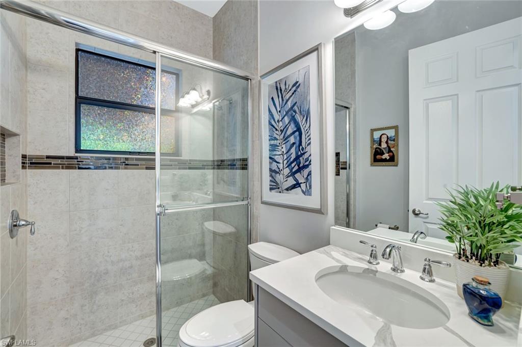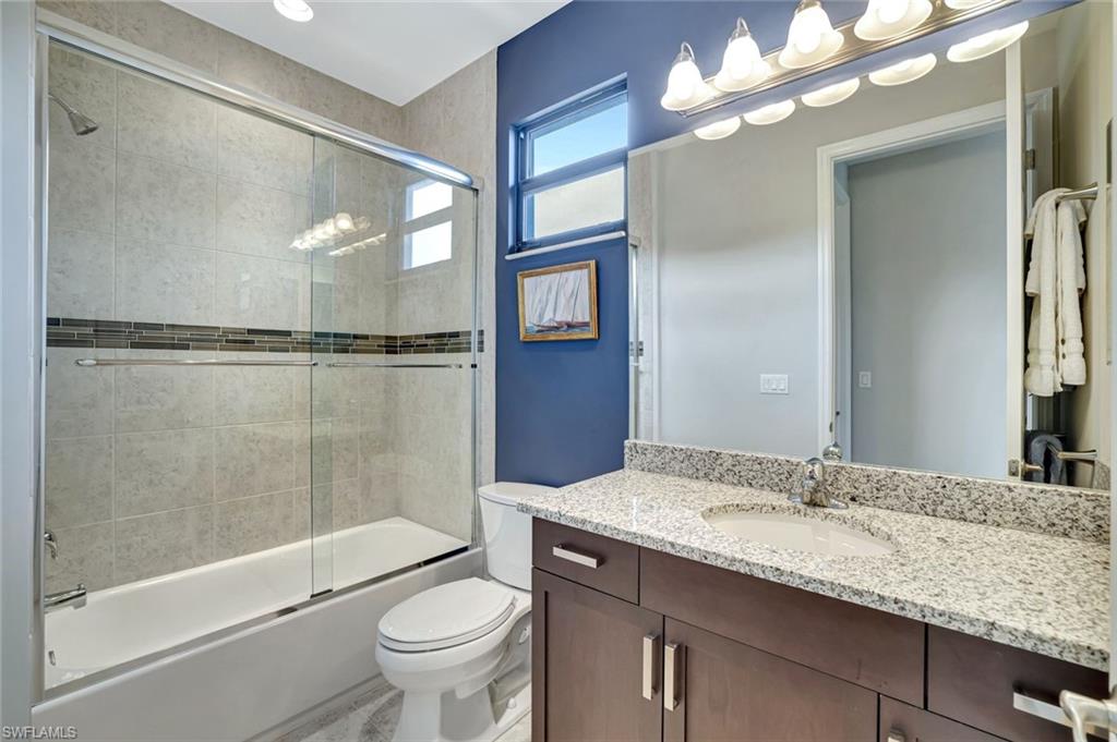 Behind the gated courtyard of this thoughtfully curated Carlyle lies a home designed for effortless living & unforgettable entertaining, where every day feels like a vacation. The interior has just been freshly painted, creating a crisp, inviting backdrop that complements the home’s refined finishes & sunlit spaces. Step through decorative glass entry doors into an expansive, entertainer’s dream layout, where the wet bar, great room, flexible dining area, and gourmet kitchen flow seamlessly to the outdoors. A sparkling lake view beckons you to the screened lanai, which offers ample room to relax or dine alfresco. Spend your days lounging by the saltwater pool, then prepare dinner in the outdoor kitchen—equipped with marine-grade cabinetry, a sink, granite surfaces, dual burners & a 60,000 BTU wok-capable burner, all powered by a buried 120-gallon propane tank. Inside, no detail has been overlooked. The chef’s kitchen features upgraded white cabinetry, granite counters, a new GE Café four-door refrigerator, double wall ovens, newer microwave, range with vented hood, custom pull-out shelves & a professionally painted island. Glass atrium doors with side panels enclose the dining space, adding elegance & allowing for flexible usage. The luxurious primary suite overlooking the lake includes dual custom closets, a serene sitting area & a renovated spa-like bath. The primary bath has been updated with a newly tiled walk-in shower with linear drain and new fixtures. Vanities feature new quartz counters, professionally painted cabinetry, framed mirrors & Rohl sinks. Both guest suites offer private baths & walk-in closets. One ensuite bath includes a remodeled shower with frameless glass doors & new tile. The versatile club room adapts to your needs—ideal as an office, den, or media space. Additional highlights include 18" porcelain tile throughout, plantation shutters, crown molding, Hunter Douglas Luminette sheers & built-in closets. A well-appointed laundry room offers a newer GE Profile washer and dryer, abundant cabinetry, a laundry tub, and a secondary refrigerator. The garage is equally refined with epoxy floors, insulated doors & built-in storage. Peace of mind comes standard with impact glass throughout, a Ring doorbell, fenced yard for pets, and a generator transfer switch. Additional upgrades include a new whole-house water softener system, UV lights on the A/C, & landscape lighting. Riverstone offers a vibrant, vacation-inspired lifestyle for all ages. Located in North Naples, just minutes from I-75 and zoned for "A"-rated schools, the community features a fitness center, social hall, resort-style pool, lap pool, spa, five lighted tennis courts, outdoor basketball and pickleball, a full indoor basketball court, tot lot, children’s water play area, game room, and an activities coordinator; making it easy to meet new friends. Whether hosting, relaxing, or simply enjoying the view, this home delivers the ideal setting for your Naples lifestyle.