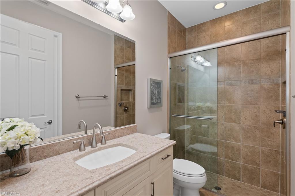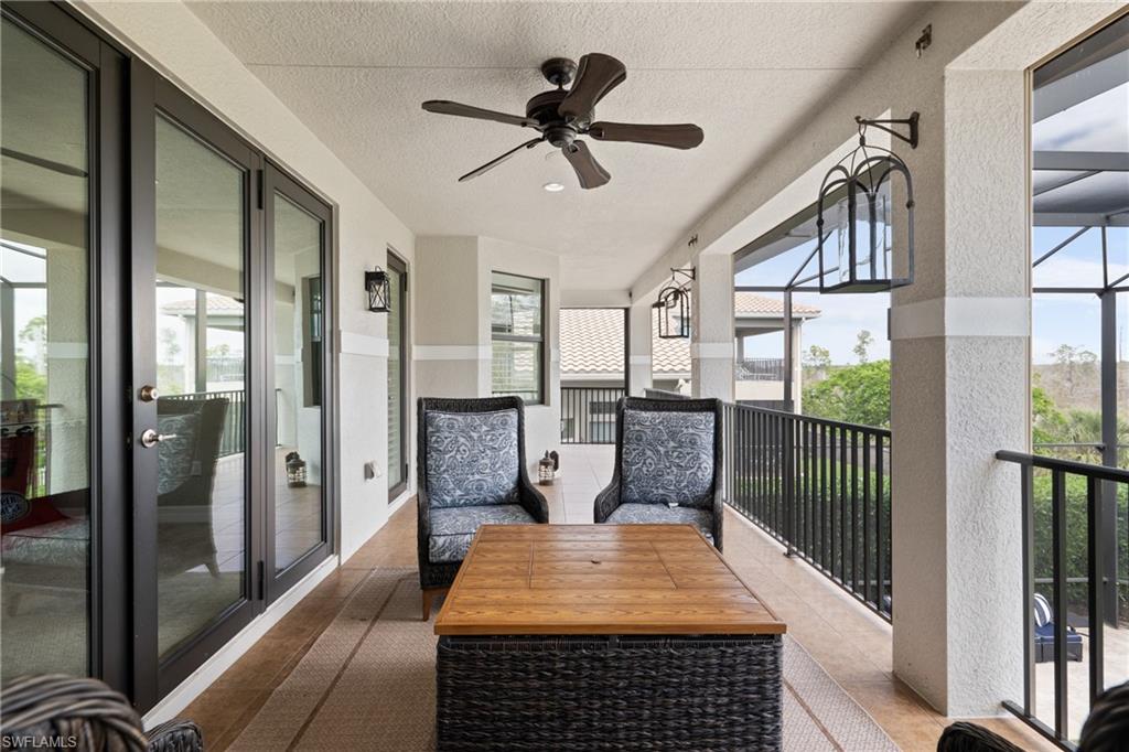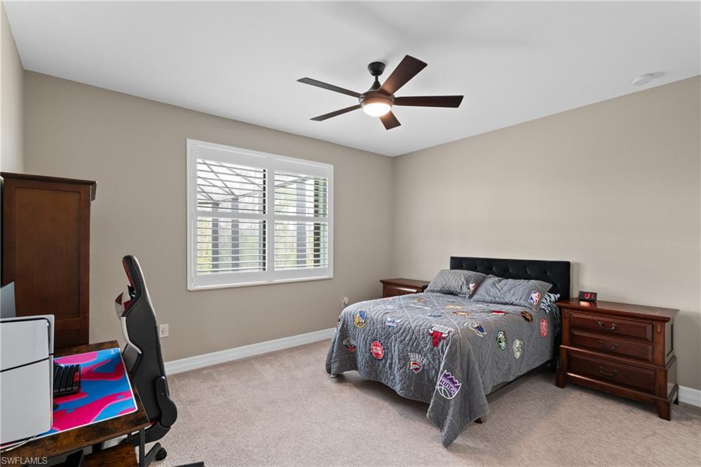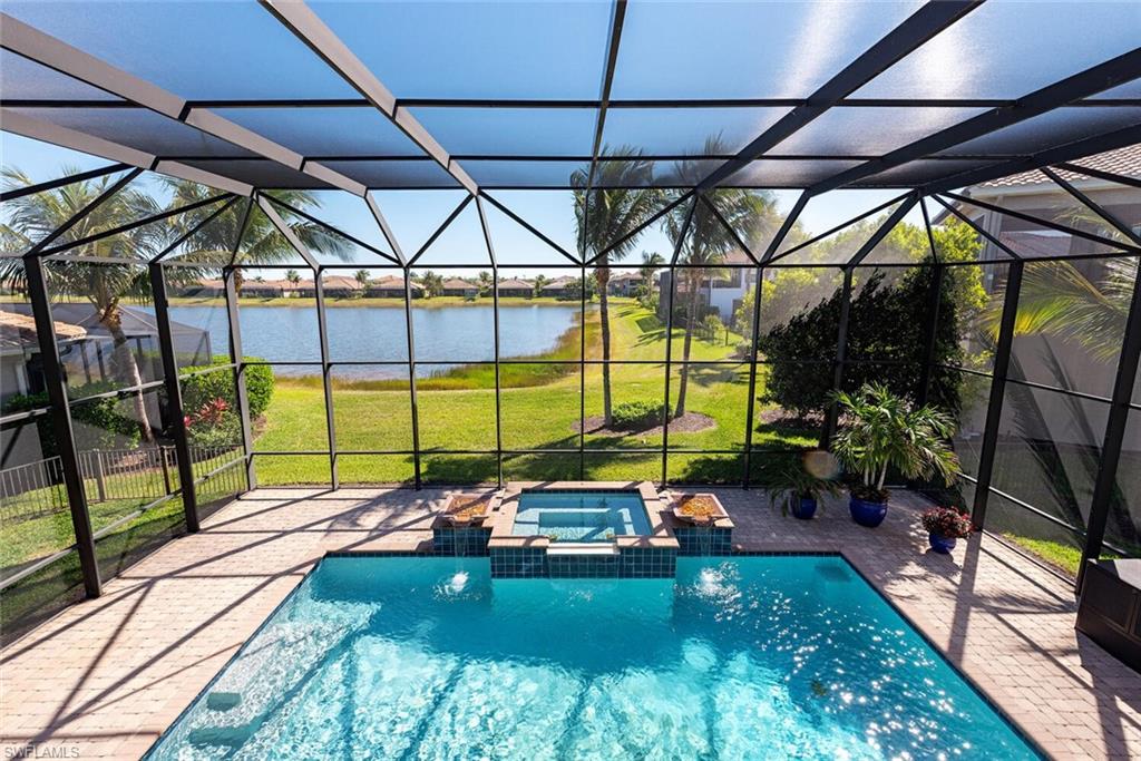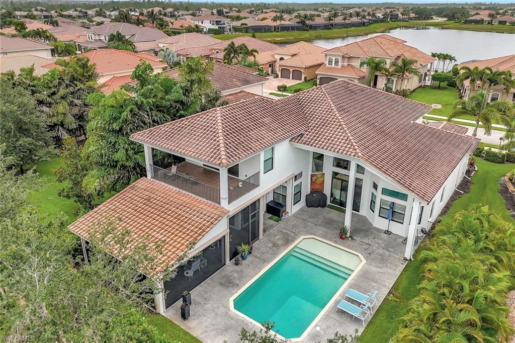 Substantial Price Adjustment=Tremendous Value! Rarely does a home of this caliber become available at such a reduced price. Welcome to this stunning estate home in the highly sought-after Riverstone community in Naples, FL. This Venetian floor plan home is perfect for families seeking both luxury living and a vacation-inspired lifestyle. Offering 6 spacious bedrooms, 5 baths, and a versatile loft, this home provides 4,503 SF of living space. Situated on an oversized .39-acre lot with beautifully landscaped grounds, the property also boasts a serene lake view, creating a peaceful retreat. Step outside to your own private oasis as the entire outdoor space is designed to enhance your vacation-style living. The expansive two-story screened lanai features a sparkling pool with fountain bowls and a relaxing spa. The outdoor kitchen makes it easy to host barbecues and gatherings, while the fenced yard offers plenty of space for kids to play or dogs to run. Inside, the gourmet kitchen is a chef’s dream, equipped with an extended walk-in pantry, new accent lighting, a wall oven, an electric GE cooktop with vented hood, both quartz & granite counters & upgraded cream-colored cabinets. The kitchen is located in the heart of the home and flows seamlessly into the family room, formal living & dining areas. Downstairs you will also find a bedroom with a Murphy bed, which makes for fantastic office space or guest room. Upstairs, the primary suite offers a spacious retreat, complete with dual walk-in closets and an ensuite bath featuring a newer frameless glass shower door and a soaking tub. The upstairs also features a balcony that offers multiple access points, providing an ideal place to relax, enjoy the serene lake view, and experience Florida’s beautiful sunrises. Fine finishes include plantation shutters, an upgraded wood/iron staircase, hardwood floors upstairs, decorator lighting & fans and crown molding. For added convenience and comfort, this home features a finished laundry room with upgraded LG washer & dryer, a sink, folding counter, and cabinetry. The home is freshly painted on the exterior & has new exterior lighting. Two newer A/C units ensure comfort year-round. A whole home generator with 500-gallon propane tank plus impact windows and doors provide convenience & peace of mind during and after a storm. Riverstone offers a social, vacation-inspired lifestyle for all ages. Located in North Naples, minutes to I-75 & zoned for "A" rated schools. Recreation area includes a fitness center, social hall, resort style pool, lap pool, spa, 5 lighted tennis courts, outdoor basketball/pickleball, full indoor basketball court, tot lot, children's water play area & game room & an activities coordinator so it is easy to make new friends. If you’re looking for a home that combines comfortable living with a vacation lifestyle, look no further. This stunning property in Riverstone is the perfect place to create lasting memories with your loved ones!