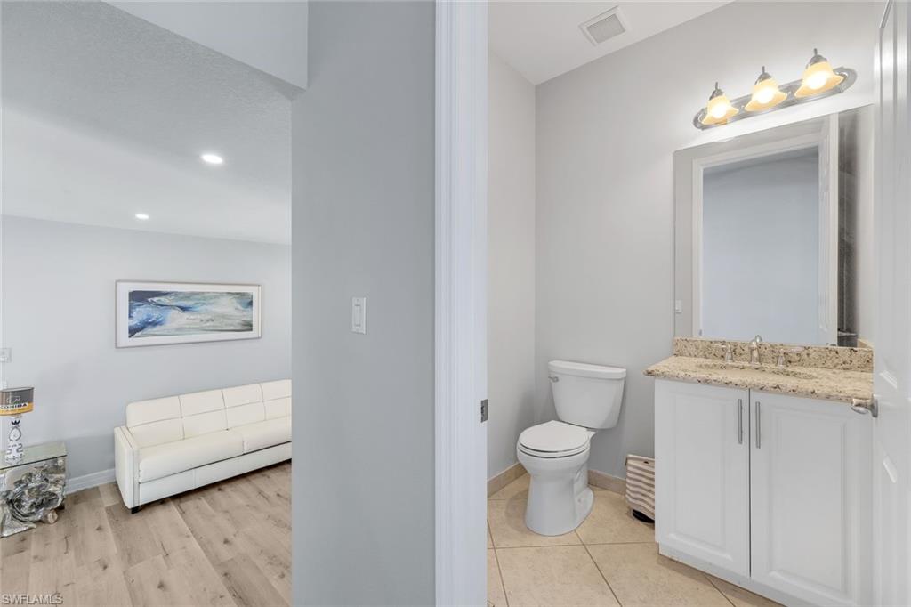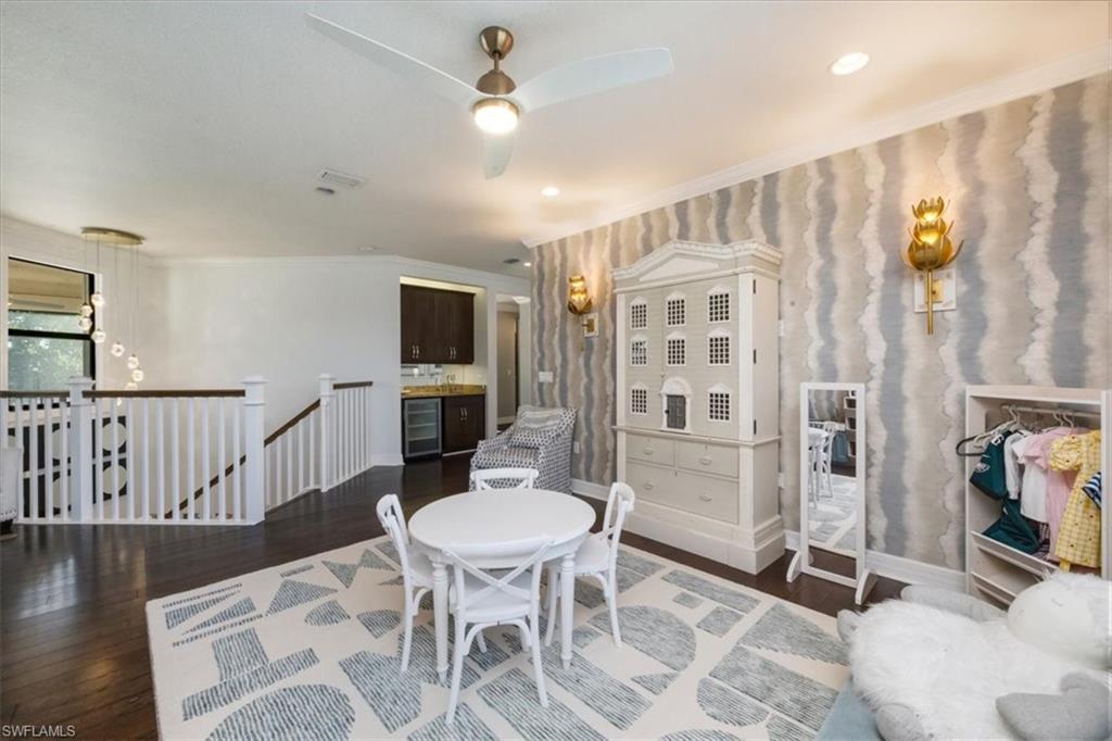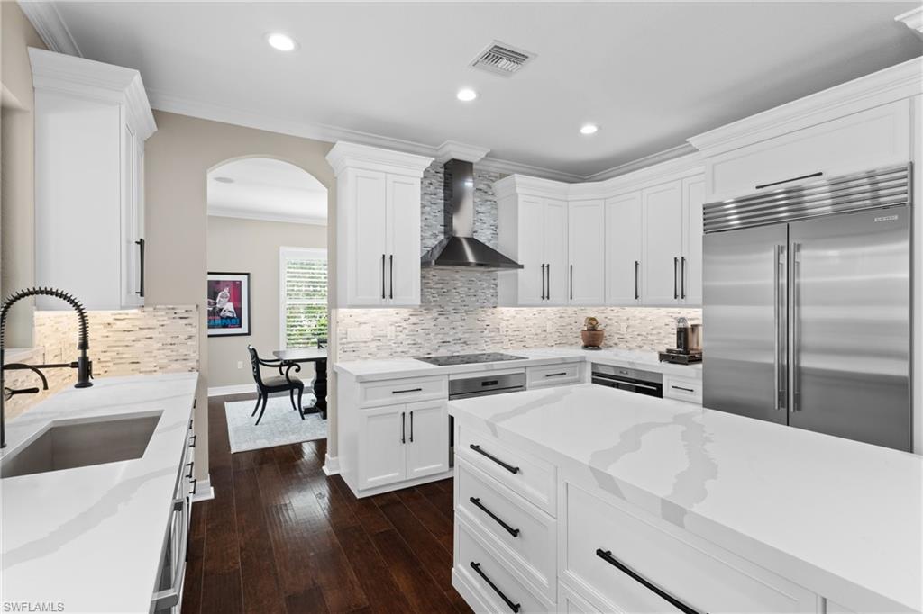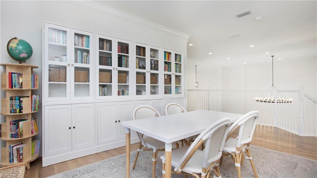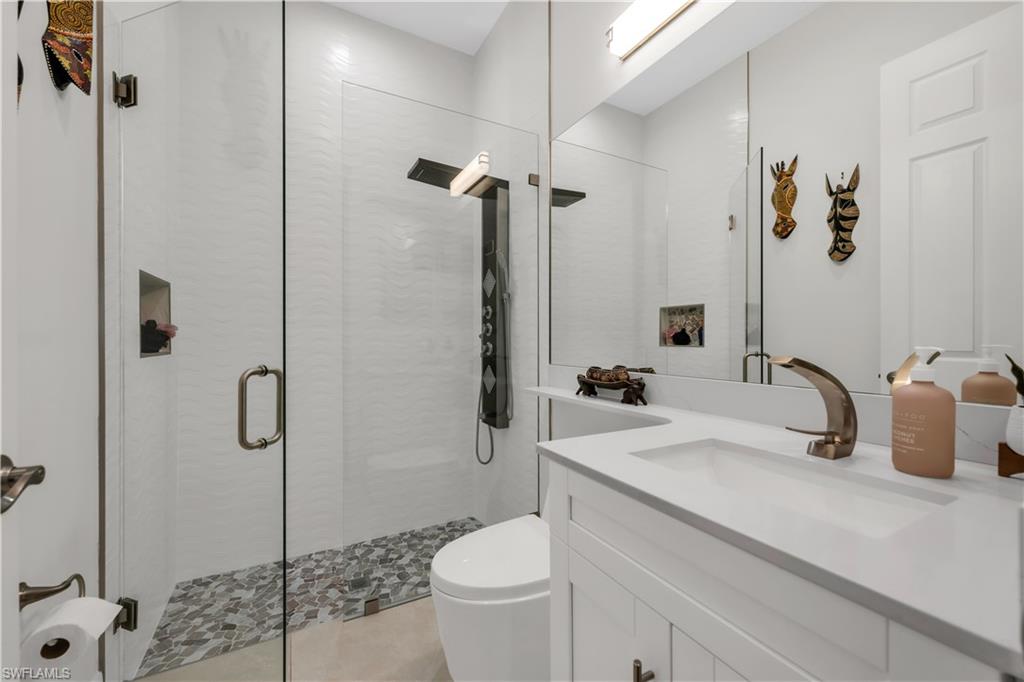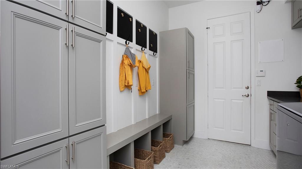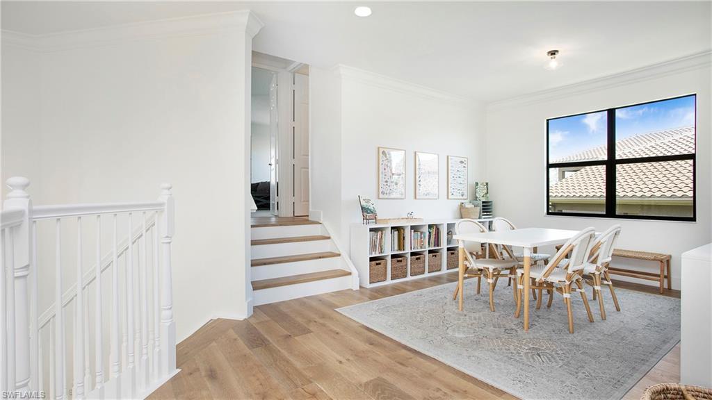 Discover the pinnacle of luxury living with the largest floor plan available in Riverstone of Naples. The Dubonnet Grande model seamlessly blends style, elegance, and functionality, offering a home that has been meticulously remodeled with exceptional attention to detail. As you enter, you are greeted by a grand foyer and soaring volume ceilings, with natural light cascading into the family room through expansive picture windows. The kitchen is a culinary masterpiece, featuring custom cabinetry, a functional island, GE Monogram appliances, glass front cabinets and stunning quartz countertops, all reminiscent of a magazine showroom. The pantry is a marvel, with its glass French door entry, subway tile backsplash, butcher block counters, and custom shelving designed to optimize every nook. The main living areas boast engineered hardwood flooring, enhanced with a thicker veneer for added durability and humidity resistance. The entryway leads to a mud/laundry room equipped with custom gray cabinets and a convenient bench seat. The crown jewel of the ground floor is the primary suite, featuring grand bay windows and a luxuriously remodeled primary bath that promises a spa-like retreat. Step outside to a vast, private outdoor space. Clusia hedges lined with fencing offer seclusion, while the preserve and trellis in the rear create the perfect backdrop for the western exposure. The pool area is a haven, with natural shell inlay pavers that stay cool underfoot, a smartly designed pool with a sun shelf, and a hot tub with a drip edge overlook. Ascend the grand staircase, accentuated with white risers, to reach the open loft/den area, which can be enclosed for an office. A few steps lead to the versatile bonus/media room, complete with built-in cabinets and a mini-fridge. The second floor also includes an open balcony, perfect for crafting your own Southwest Florida paradise, as well as three additional bedrooms and two and a half baths. Further enhancements include crown moldings throughout most of the home, three separate HVAC systems for personalized comfort, a 50-amp breaker for a generator, and a 240-amp breaker for your electric vehicle. This impeccably designed home is ready for you to move in and start living the dream.