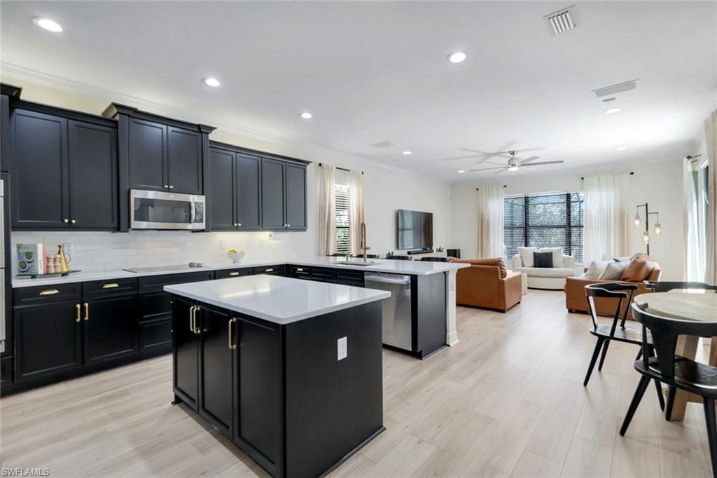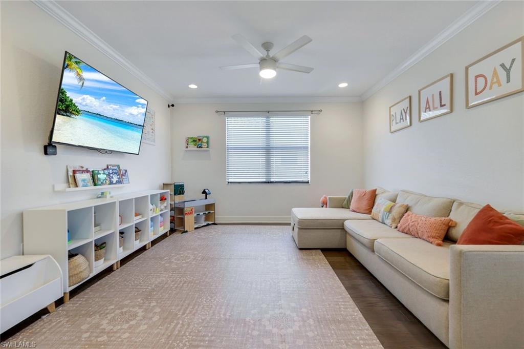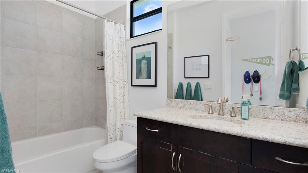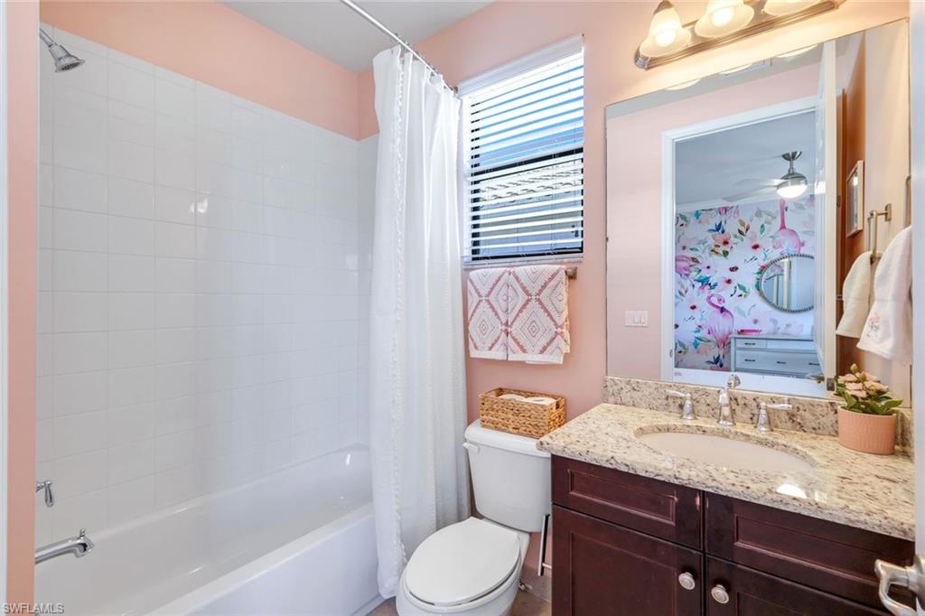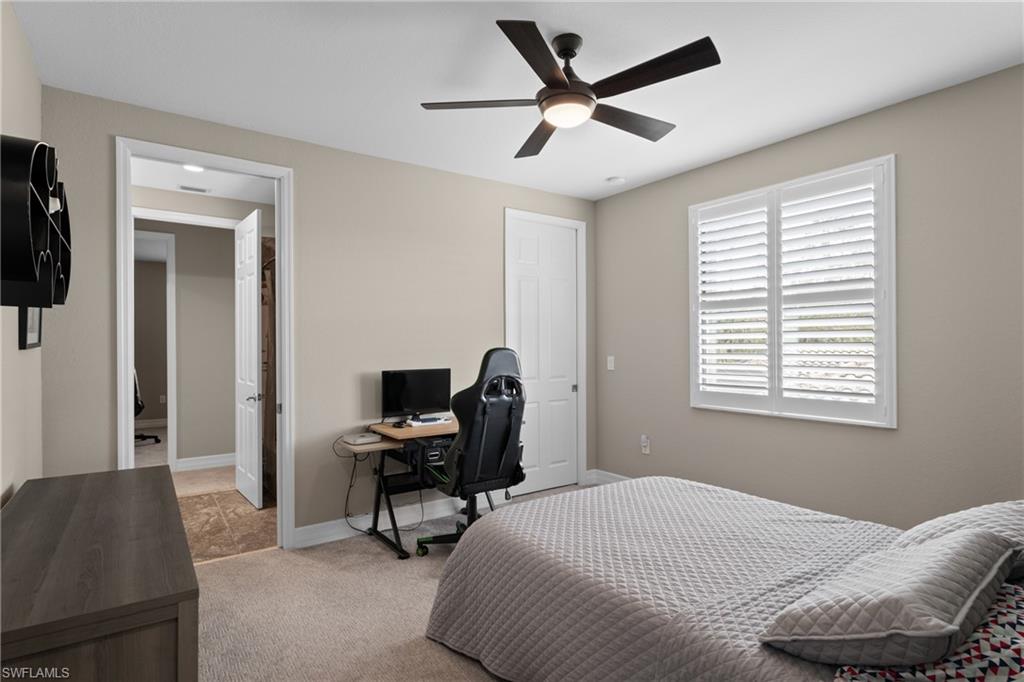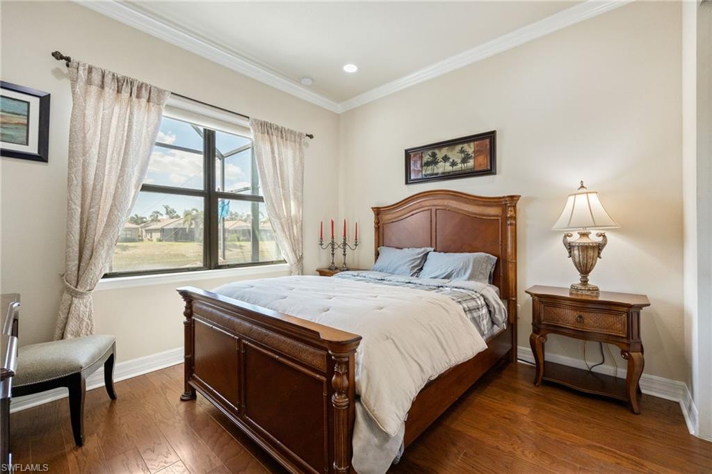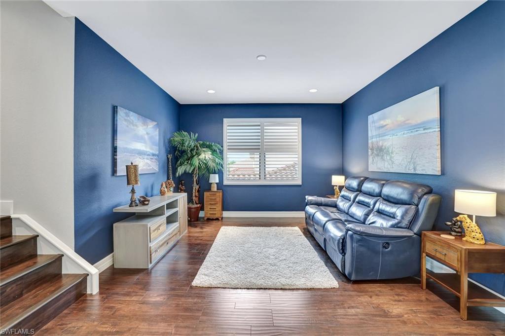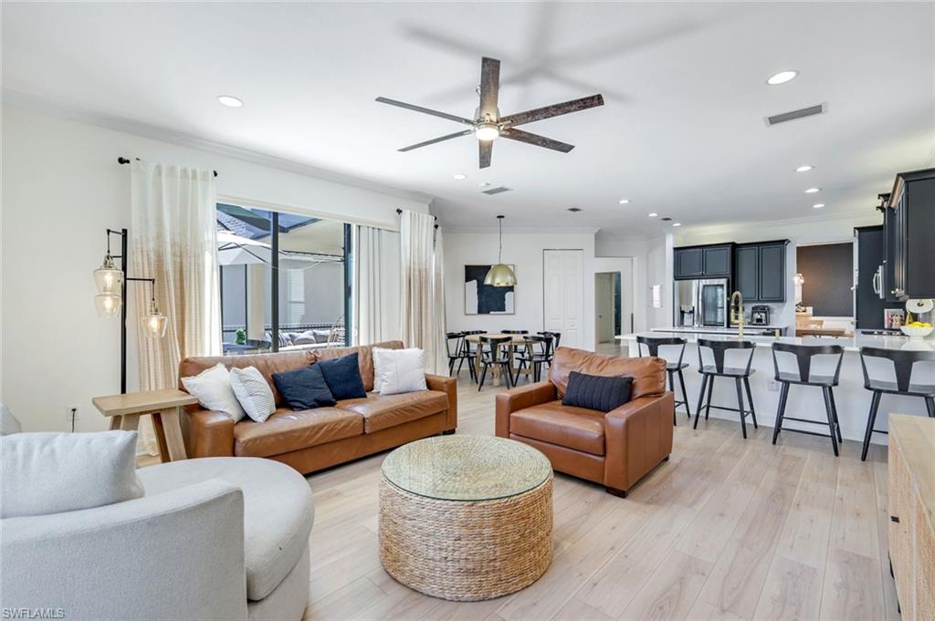 Perfectly positioned on a peaceful cul-de-sac in the sought-after Riverstone community, this expansive and crafted Shiraz home offers 4,100+ sqft. of stylish, well-planned living for today’s modern household. With six bedrooms, five bathrooms, a 3-car garage, covered entry, and an upper-level loft, the home accommodates large households and guests with ease. The floor plan flows beautifully, offering generous gathering spaces, a chef-ready kitchen, and a serene primary suite on the second level. The gourmet kitchen stands out with a double oven, vented hood, custom cabinets, a center island with a wine fridge, a walk-in pantry, and a striking backsplash window framing for additional lighting. Throughout the home, you’ll find designer lighting & fans, custom shades, plantation shutters, and built-ins that elevate both style and functionality. Additional enhancements include a mud room, (2yr) A/C, Leaf-Home water filtration system, a whole-home camera system, a wet-bar on the 2nd floor, and luxury wallpaper. The primary bedroom features a private veranda overlooking the lake, dual vanities, two walk-in closets crafted by Inspired Closets, upgraded hardwood flooring, and a tray ceiling trimmed with crown molding. The upstairs laundry room includes a utility tub for added convenience. The garage features epoxy flooring and custom-built storage closets, complemented by wall and overhead storage for exceptional organization. Outdoor living shines in this home. The paver areas have been restored, lifted, reset, and sealed, creating a fresh, durable foundation for entertainment. The expansive backyard was fully fenced in 2025—features a screened enclosure, outdoor shower, and pre-wiring for a large future pool, offering endless opportunities to personalize your Florida oasis. The neighborhood is zoned for highly rated schools and conveniently located near I-75, offering quick access to regional destinations, RSW Airport, and Naples’ premier shopping and dining. Famous SWFL Beaches are only 9 miles away. Riverstone residents enjoy an impressive array of amenities, including a 13,000 sqft. clubhouse, multiple pools, Har-Tru tennis courts, indoor and outdoor basketball/pickleball facilities, fitness center, yoga studio, game room, social rooms, a covered pavilion, tot lot, splash zone, and an active event calendar. A guarded, 24/7 gated entrance ensures an added level of security and peace of mind.