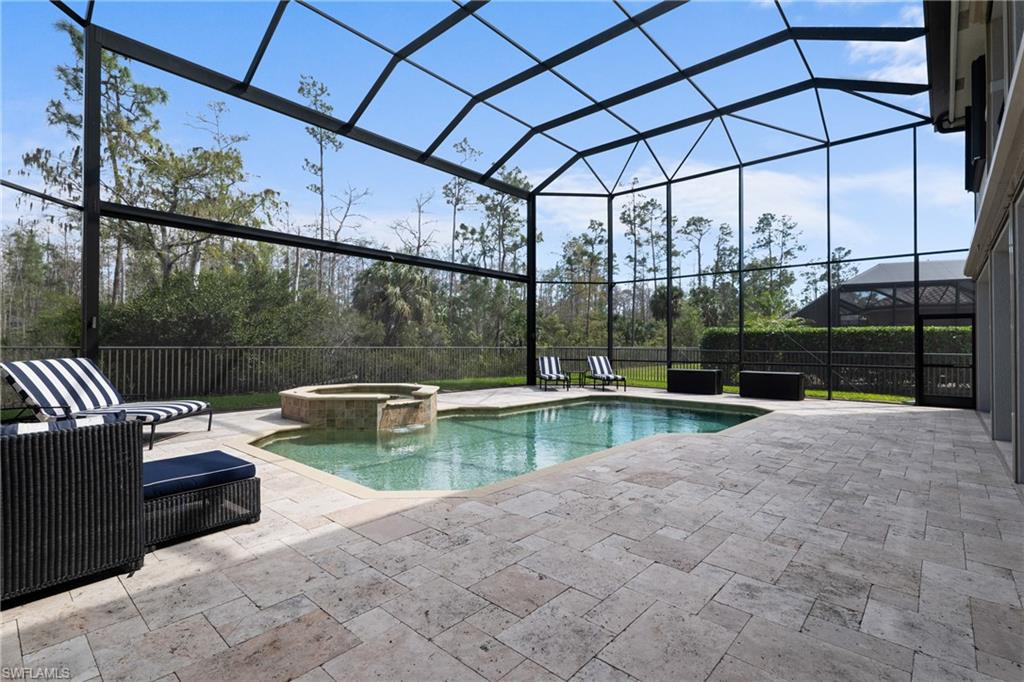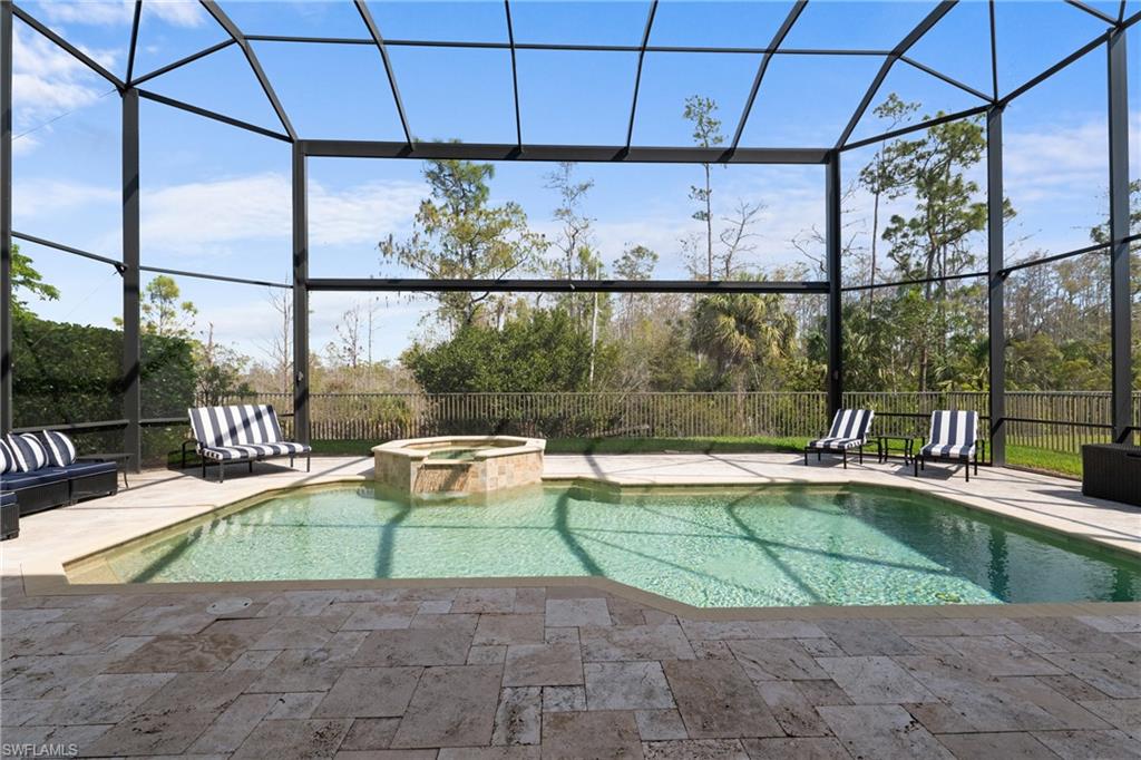 Nestled overlooking a private and protected preserve, this meticulously maintained "Venetian" floorplan home offers just over 4,500 sq. ft. of luxurious living space. With 5 bedrooms, den, loft, 5 full baths, and a 3-car garage, this residence provides ample room for family living and entertaining. The split floorplan includes formal living and dining rooms, an updated chef’s kitchen, a spacious family room, and a den with an ensuite bath that can easily be used as a 6th bedroom all on the ground floor. Upstairs, you’ll find a generously sized loft, 4 guest bedrooms (3 of which have ensuite baths), and a magnificent primary suite featuring a sitting area, his and her walk-in closets with built-ins, and a luxurious bath with oversized vanities, center soaking tub, and walk-in shower. Both the loft and the primary suite open to a 35’x11’ screened balcony, offering serene views of the preserve. The home is designed for both comfort and entertaining, with a stunning outdoor living area complete with a fully-equipped outdoor kitchen, and heated saltwater pool with raised spa. Special features abound, including a recently remodeled kitchen (2023) with custom cabinetry, double-thick quartz countertops, and high-end appliances, including a 48” built-in Sub-Zero refrigerator/freezer, Wolf oven, microwave, and induction cooktop. Additional updates include two newer HVAC systems with all-new ductwork; a two-story screen cage with super screen (installed 2019); freshly painted exterior (2024); whole-house water softener; glued-down engineered wood floors on the first floor and updated sculpted carpeting in the den and second floor; custom built-in in the family room; crown molding throughout the common areas and primary suite; plantation shutters; in-ceiling speakers; fenced rear yard; and more! Storm safety and convenience are top priorities with hurricane impact windows on the front of the home, accordion shutters on side windows, and Stormsmart electric roll-down hurricane screens on the rear of the home, enclosing both covered lanais. Located in Riverstone, North Naples' premier community, this home offers access to incredible amenities, including a clubhouse with a fitness center, indoor/outdoor basketball courts, a resort-style pool, lap pool, kiddie water park, playground, 5 tennis courts, billiards room, social hall, game room, and more. Riverstone’s prime location is just minutes from I-75, the beach, Mercato, RSW, and downtown Naples. Top-rated schools are nearby, including Laurel Oak Elementary, Oakridge Middle School, and Aubrey Rogers High School. Low HOA Fees of just $1450/quarter which includes all clubhouse amenities, gated entry, home landscaping, home irrigation water, and home irrigation system maintenance.