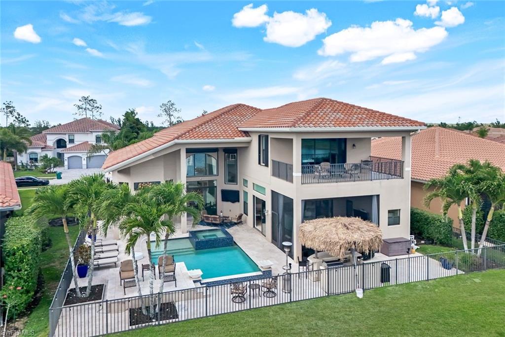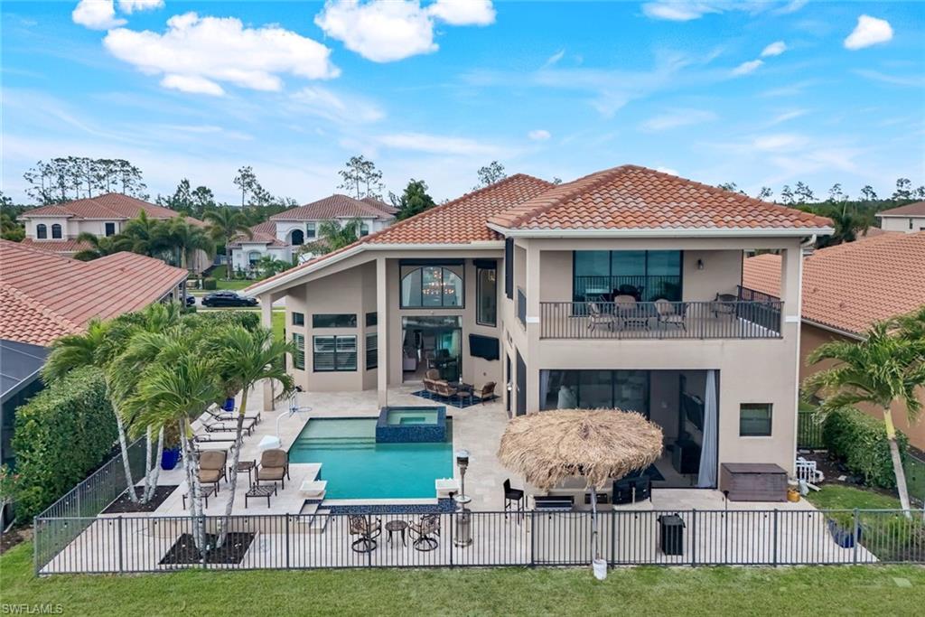 Welcome to this stunning six-bedroom, five-bath stucco home, perfectly situated in the exclusive Riverstone gated community in North Naples! This exquisite residence masterfully blends luxury and comfort, offering spacious living areas designed for relaxation and memorable entertaining experiences. Step inside to discover an expansive layout that provides ample living space for the entire family. The open-concept design creates a warm and inviting atmosphere, perfect for gatherings. The spacious loft area offers a cozy retreat, ideal for family movie nights, game sessions, or simply unwinding with friends. The primary suite serves as a private sanctuary, featuring custom walk-in closets and a luxurious spa-inspired bathroom. Enjoy the elegance of dual vanities, separate "his and hers" spaces, and a stunning double shower, all meticulously designed for your comfort. Step outside onto your private balcony, where you can savor quiet mornings with coffee or unwind in the evening under a starlit sky. Attention to detail is evident throughout the home, from plantation shutters adorning every window to the gourmet kitchen, equipped with premium upgrades, ample counter space, and abundant seating for family gatherings and entertaining guests. This gorgeous GL home features the desirable Shiraz floor plan, thoughtfully designed to provide ample space for everyone in the family. With six generously sized bedrooms, this residence is perfect for accommodating family members, guests, or even creating dedicated home offices. Each bedroom offers a cozy retreat, complete with large windows that fill the rooms with natural light, enhancing the warm and inviting atmosphere. The well-appointed layout ensures that every resident enjoys their own private space while still being part of a cohesive living environment. The open concept living areas flow seamlessly, making it easy to entertain guests or enjoy family time together. Whether it’s hosting gatherings in the spacious living room or enjoying family meals in the dining space, this home is designed for modern living and comfort. The outdoor living space is truly a resort-like oasis, complete with a sparkling heated saltwater pool, a cozy lounge area, and plenty of room for entertaining—perfect for cultivating that “vacation-at-home” lifestyle. As part of this community, you will enjoy incredible amenities, including two expansive pools, a relaxing hot tub, children’s water play area, an indoor gym, and a state-of-the-art workout center and covered playground. For leisure and entertainment, the community also features a game room, providing endless opportunities for family fun and friendly competitions. Don’t miss out on this exceptional opportunity to make this remarkable home your own. Schedule a viewing today, and start envisioning the life you could lead in this unparalleled residence!