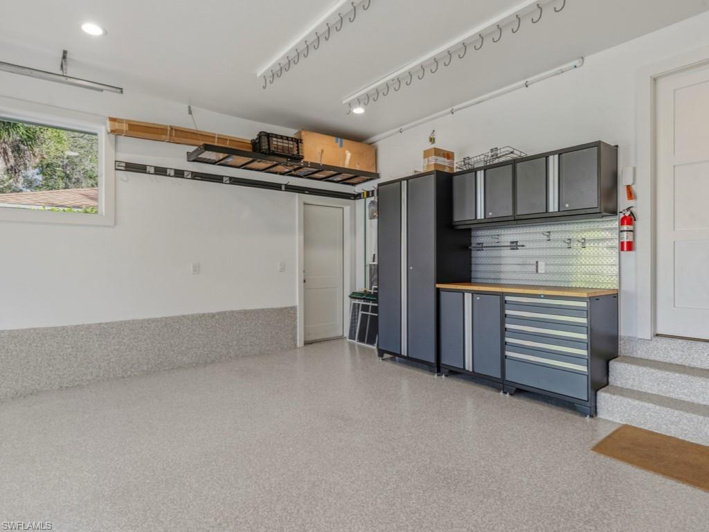 Discover this custom home located minutes from Olde Naples, White sand beaches beaches and shopping dining and entertainment of 5th Ave. South, and 3rd St. South. This distinctive home features a spacious second-floor layout, complete with an oversized screened porch perfect for unwinding and enjoying the peaceful views. Each unique room is designed with special touches, including a gourmet kitchen equipped with a gas and electric cooking options. The expansive living room and dining area boast wall-to-wall sliding doors that open to a generous porch, enhancing the indoor-outdoor living experience. The master bedroom suite includes a well-organized walk-in closet, double vanities, and a tiled walk-in shower. The extra-large second bedroom can easily be adapted into two rooms or utilized as a spacious mother-in-law suite, complete with a full bath. As an added bonus, the first floor features a roomy air-conditioned studio with a private entrance, a separate workshop, and two large carports with roofing. This meticulously maintained home includes impact windows, a new roof, and a new A/C system. Do not miss your opportunity to own a one-of-a-kind home in the heart of Naples!