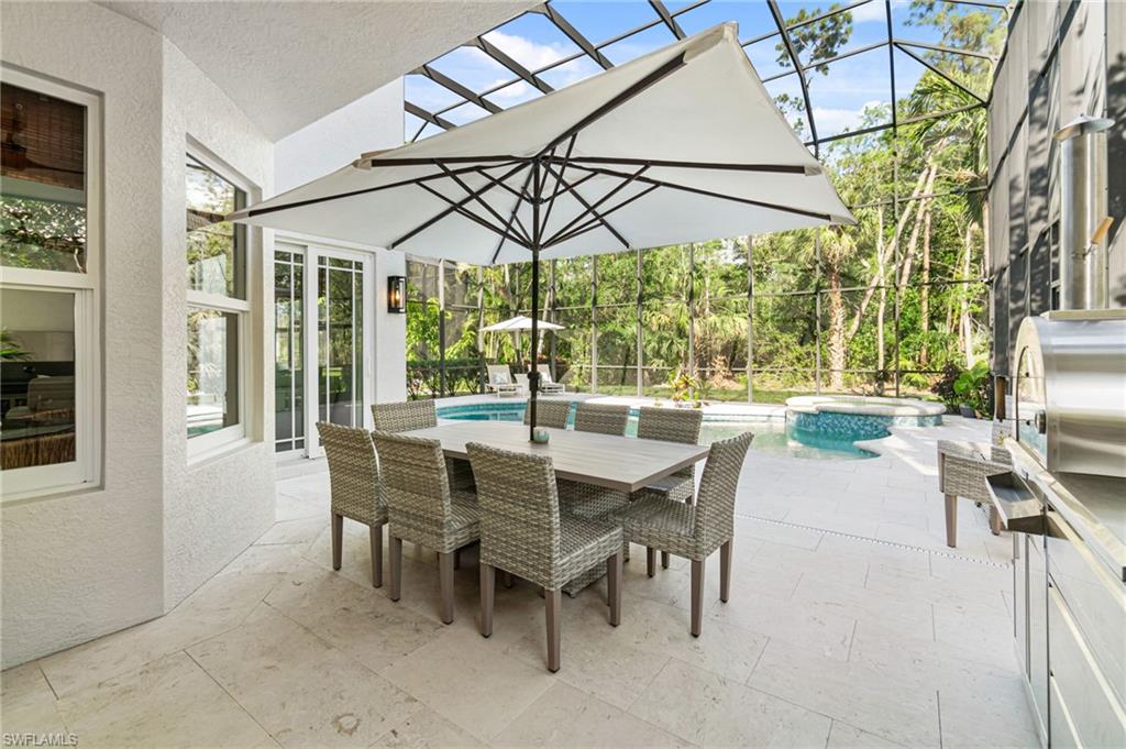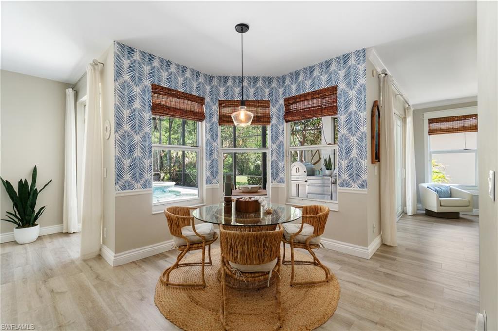 Immaculate Pearl Floor Plan in Saturnia Lakes – Designer Upgrades, Southern Exposure, Move-In Ready! Welcome to this rarely available Pearl model in the highly sought-after, gated community of Saturnia Lakes in Naples, Florida. Meticulously maintained and professionally designed, this 4-bedroom, 2.5-bathroom single-family home offers over 2,678 square feet of elegant living space with premium upgrades throughout including Impact windows. From the moment you arrive, you’ll appreciate the extra-wide paver walkway, curved entry step, and double front doors with impact-resistant glass inserts, perfectly complementing the home's architectural details. ? Interior Features & Designer Finishes 20" diagonal porcelain tile throughout main living areas Upgraded carpet in the spacious primary suite with private sitting area Luxury vinyl or wood-look floors in guest bedrooms Chef-inspired kitchen with deluxe cabinetry, stainless appliances, and oversized pantry Elegant bathrooms with upgraded cabinets and designer fixtures Custom closets, window film, plantation shutters, and motorized blinds Wall finishes and textures curated by a professional interior designer Garage-Tek custom garage storage system included ?? Outdoor Living & Security Resort-style pool with screened lanai Motorized storm shutters around the covered lanai for quick protection Southern rear exposure offers natural light all day Professionally landscaped with tropical curb appeal ?? Community & Location Saturnia Lakes is a gated, amenity-rich community offering a clubhouse, fitness center, resort pool, tennis, and more—all just minutes from dining, shopping, top-rated schools, and Gulf beaches. ?? Don’t Miss This Opportunity This move-in-ready home with luxury upgrades and a high-demand southern exposure lot won’t last long. Perfect for full-time residents or seasonal buyers looking for security, style, and comfort.