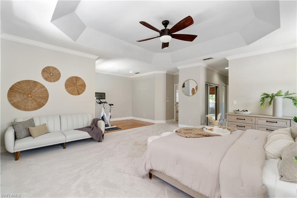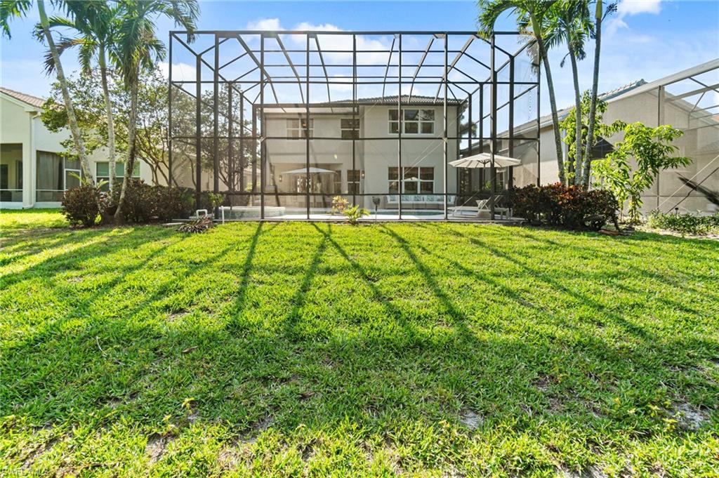 The view you’ve been dreaming of! This rare “Pink Diamond” model—one of the largest homes in Saturnia Lakes—sits on a premier cul-de-sac lot with 160 feet of lake frontage and breathtaking water views from three sides. Step through the leaded glass doors and immediately take in the wow-factor: an open, elegant layout that leads straight to those endless lake views. With 4,083 sq. ft., this home offers 5 bedrooms, 4 full baths, and 5 large walk-in closets, giving everyone space to relax. The expansive kitchen features wood cabinets, granite countertops, a center island, walk-in pantry, and a new 80-bottle wine fridge. The great room is perfect for movie nights, while the formal dining room easily seats ten. Outside, your private oasis awaits—picture-window lanai, lush palms, and a sparkling pool (with new heater) overlooking the lake, fountain, and bridge. Upstairs, the spacious primary suite includes an attached den/exercise room and French doors to a huge private veranda—the ideal spot for sunrise, sunset, and watching wildlife. Additional features include plantation shutters, crown molding, tray ceilings, updated fixtures, and a 3-car garage. Saturnia Lakes offers resort-style living with 3 pools, fitness center, yoga/dance studio, billiards, tennis, playground, and a vibrant clubhouse—plus top-rated schools and a short drive to Naples white sand beaches, world-class dining, and great shopping. A truly stunning home—don’t miss your chance to make it yours!