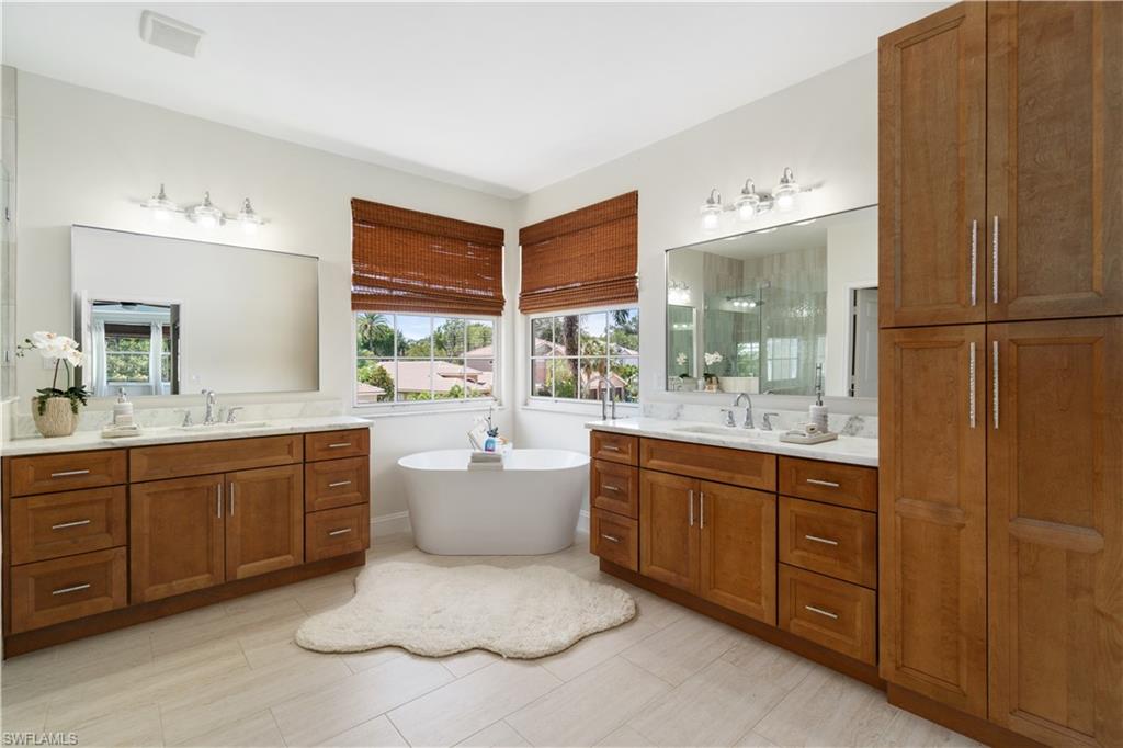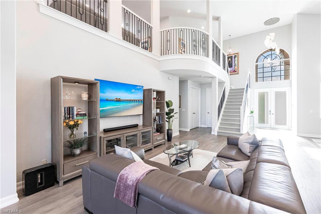 INCREDIBLE NEW PRICE IMPROVEMENT ::: you will be hard pressed to find a better OPPORTUNITY for a resort style, family home in NORTH NAPLES! Motivated Seller. A RARE chance to purchase a large, meticulously updated & well maintained N. Naples home w/nearly 3000 ft.² of interior air conditioned living space, 4 bedrooms + upstairs den/loft, 3 car garage and a 2 story caged “Miami Chic” pool/spa area w/almost 1,000 sq.ft. All in an exclusive N. naples gated community! Sought after Flamingo model. Can you hear the birds? The buttonwood tree lined street and protected tropical PRESERVE backyard delivers quiet, private solitude w/close proximity to the main gate AND steps to the sports center & resort amenities. Extensive designer improvements & favorable features include a RARE 1st AND 2nd floor concrete construction. The expansive rear entertainers dream is enveloped in a STUNNING 30’ high pool cage w/elegant shell stone white pavers and NEW Modern pool tile. NEW Impact windows & doors, NEW impact garage doors and motors (‘25), NEW roof & gutters (‘24), fresh exterior paint (‘25) provide value & peace of mind. HVAC systems replaced in ‘22 & ‘23. Additional luxury features include a smart water filtration & softener system (‘24), smart water softener, reverse osmosis system, central vacuum, instant hot water heater (‘23), NEW upstairs carpeting (‘25), & NEW washer/dryer. Designer remodeling finishes are throughout: NEW light toned LVP, CUSTOM pantry closet system & NEW designer bath remodels highlighted by the reimagined spa primary (‘25) w/freestanding soaking tub. Other custom details: NEW shiplap, coastal wallpaper, NEW baseboards, & interior trim (‘25), along w/a cozy custom electric fireplace adding warmth & character. *** SATURNIA LAKES is hidden behind cascading waterfalls & sparkling fountains on 6 acres. Have the “vacation” feel all year long w/extensive amenities: 12,000 square-foot clubhouse, resort style Olympic, lap & kiddie pool, hot tub, sandy beach, saunas, massage & card rooms, ballroom, billiards room, dance studio, Internet café & arts/crafts room. For WELLNESS enthusiasts: state of the art fitness center, Clay & Har-Tru tennis courts, playground, basketball court, lakeside putting green,& miles of walking/jogging paths. Walk to Gulf Coast HS thru ‘Passive Park.” Included in the $616 monthly HOA fee: high speed fiber optic Internet, HD/DVR cable service w/2 boxes, monitored alarm security, gate guard w/private side gate on Logan Blvd for residence only, irrigation, lawn, landscape, trimming & pest. Just minutes to highway 75, shopping & restaurants galore @ the NEW Founders Square & Logan Landing. A short 15 min to the Gulf of Mexico & 20 min to the airport. We challenge you to find a home with the square footage, in this condition, with these amenities and upgrades – for this price – in a gated A+ rated school district. We invite you to see in person what a REAL OPPORTUNITY this is for your family’s next DREAM COME TRUE!