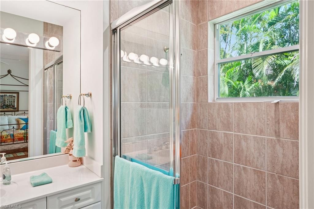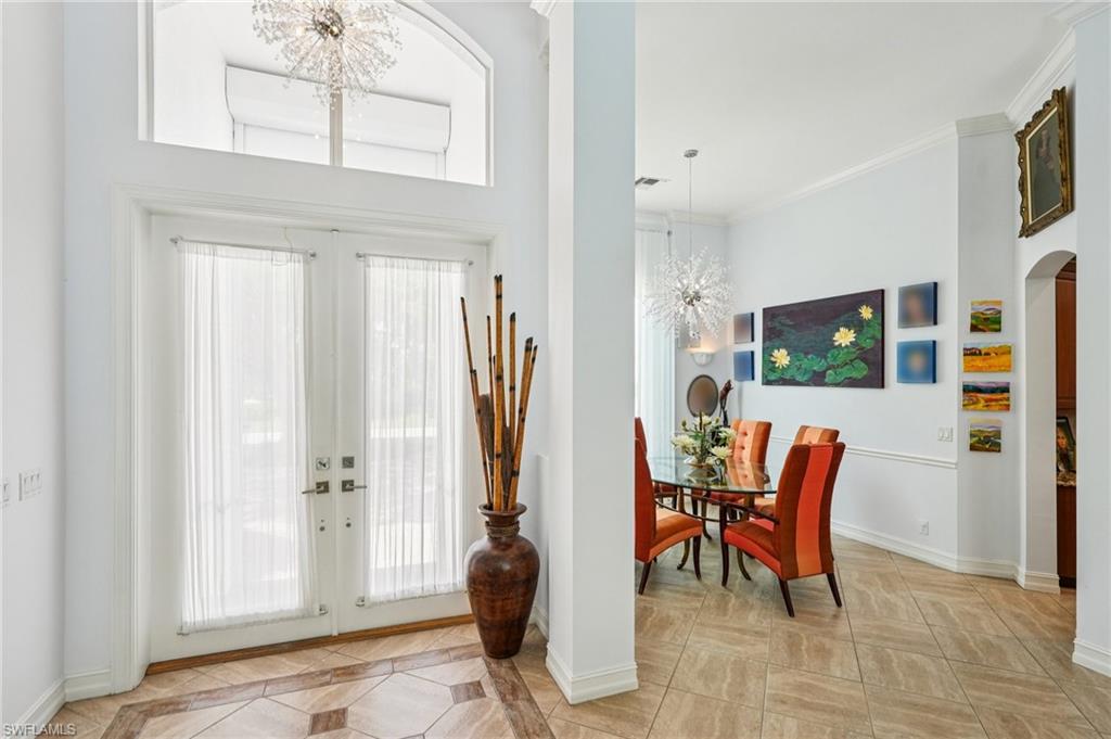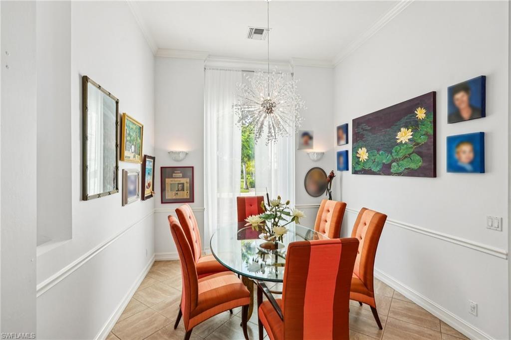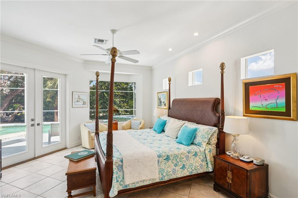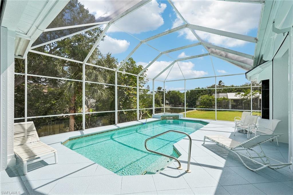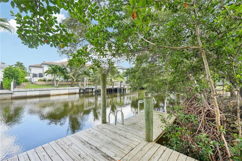 Waterfront Seagate home with tranquil mangrove views and a private dock on a navigable canal (indirect Gulf access; bridge/tidal—well-suited to kayaks, paddleboards, and smaller craft). Everyday living extends outdoors to a deep covered lanai and a screened, heated pool with a water feature and dedicated planting bed. A private, carriage-style studio suite sits above the three-car garage—currently configured as an art studio—with a kitchenette and full bath; its separation from the main house makes it ideal for visiting guests, creative work, or quiet retreat. Inside the main residence, four en-suite bedrooms include a first-floor primary retreat opening by French doors to the lanai, plus a nearby guest en-suite. A light-filled den with built-ins, a formal living room, and a separate family room support both entertaining and downtime, while the island kitchen and a breakfast nook overlook the pool. Peace-of-mind features include impact-rated windows and electric roll-down shutters; practical updates include newer A/C, water heater, and pool pump, fresh exterior paint, and a 2025 roof. The attached three-car garage adds a storage room and interior stairs to the studio. Seagate is a small West-of-41 waterfront pocket in central Naples with no mandatory HOA and easy beach access. Residents may apply for the optional Seagate Beach Club membership, which offers on-site beach parking and pavilion facilities (buyer to verify availability and terms). Minutes to Waterside Shops, Artis–Naples, and Clam Pass, with low-traffic streets and sidewalks that make biking simple. A coveted coast-close location delivering privacy and everyday convenience.
