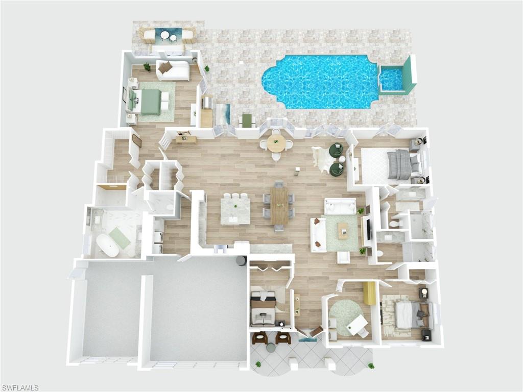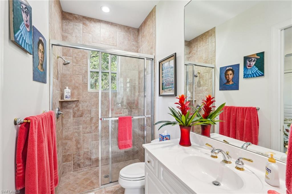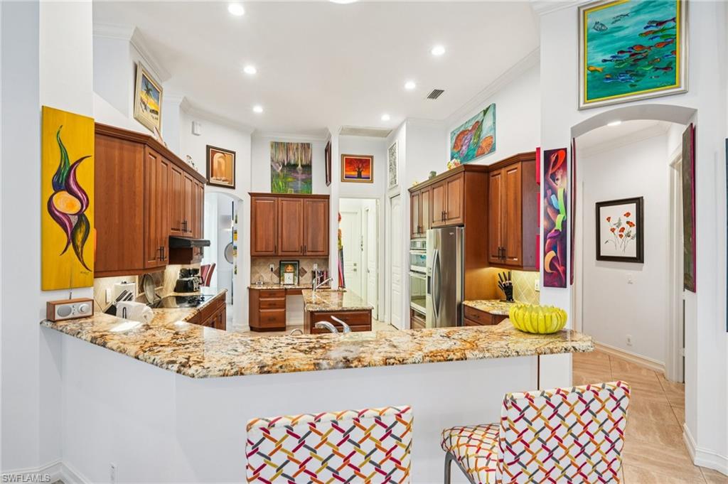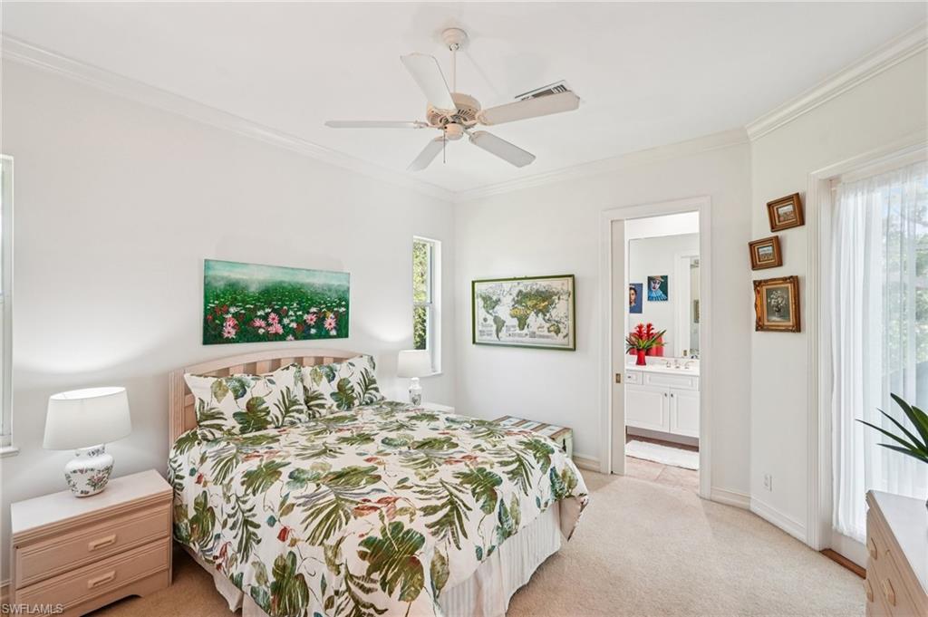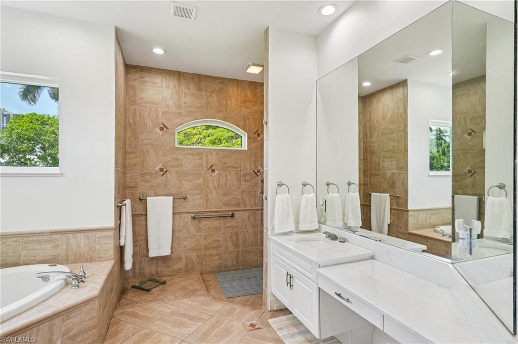 Waterfront Seagate home with tranquil mangrove views and a private dock on a navigable canal (indirect Gulf access; bridge/tidal—well-suited to kayaks, paddleboards, and smaller craft). Everyday living extends outdoors to a deep covered lanai and a screened, heated pool with a water feature and dedicated planting bed. A private, carriage-style studio suite sits above the three-car garage—currently configured as an art studio—with a kitchenette and full bath; its separation from the main house makes it ideal for visiting guests, creative work, or quiet retreat. Inside the main residence, four en-suite bedrooms include a first-floor primary retreat opening by French doors to the lanai, plus a nearby guest en-suite. A light-filled den with built-ins, a formal living room, and a separate family room support both entertaining and downtime, while the island kitchen and a breakfast nook overlook the pool. Peace-of-mind features include impact-rated windows and electric roll-down shutters; practical updates include newer A/C, water heater, and pool pump, fresh exterior paint, and a 2025 roof. The attached three-car garage adds a storage room and interior stairs to the studio. Seagate is a small West-of-41 waterfront pocket in central Naples with no mandatory HOA and easy beach access. Residents may apply for the optional Seagate Beach Club membership, which offers on-site beach parking and pavilion facilities (buyer to verify availability and terms). Minutes to Waterside Shops, Artis–Naples, and Clam Pass, with low-traffic streets and sidewalks that make biking simple. A coveted coast-close location delivering privacy and everyday convenience.
