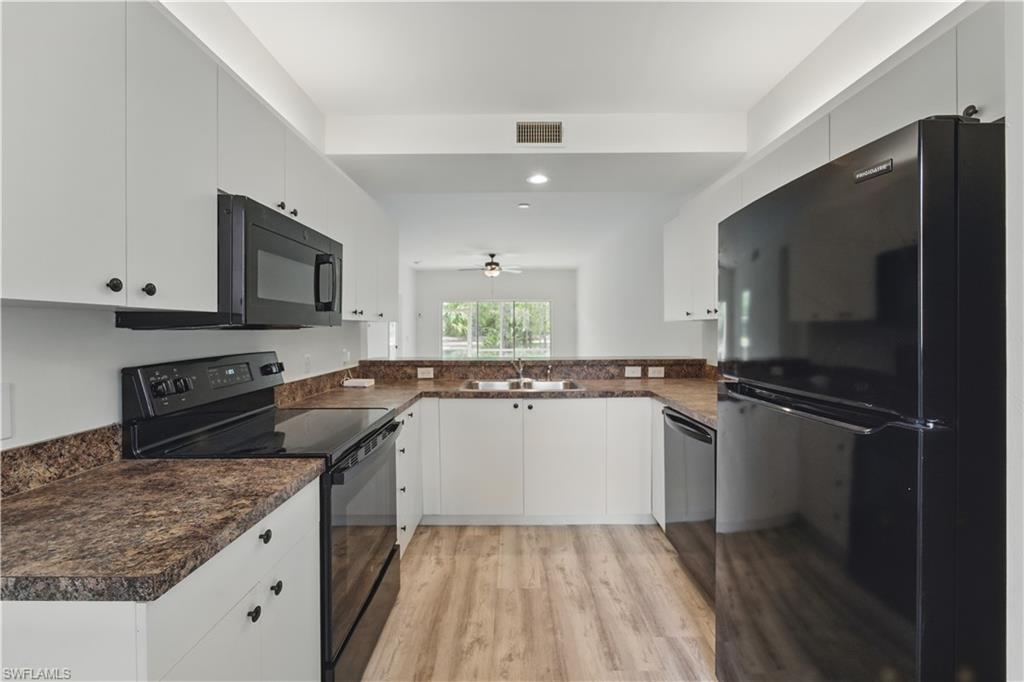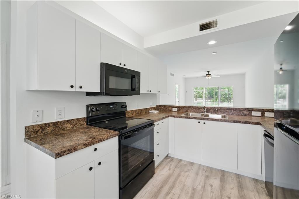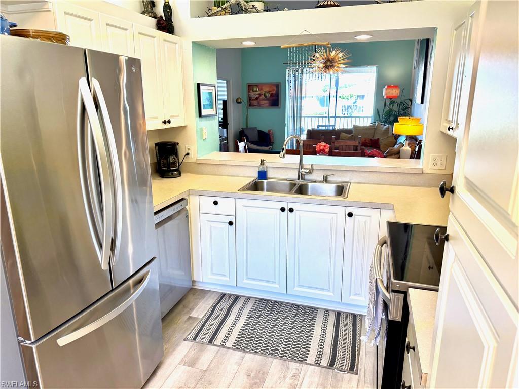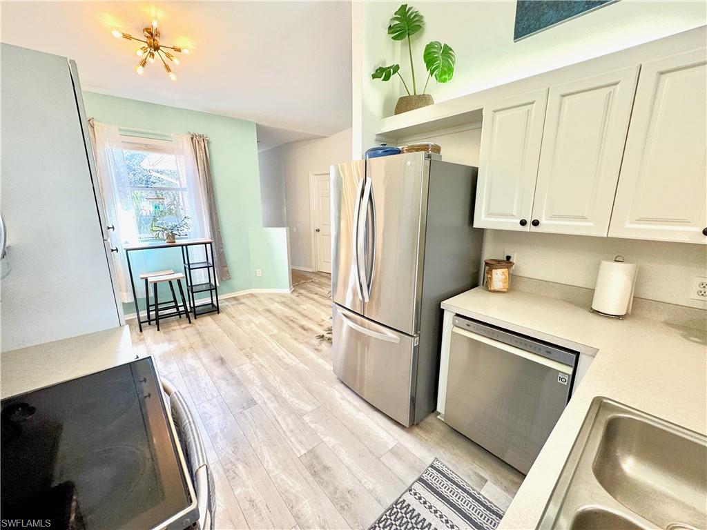 Enjoy a beautiful LAKE VIEW from this TRUE 3 BEDROOM 1ST FLOOR coach home with ATTACHED GARAGE under $340K. This END UNIT allows for abundant natural light and features light bright kitchen cabinets, new stainless steel appliances, laundry tub inside, and upgraded luxury vinyl plank flooring. Sherwood community features REASONABLE HOA FEES which includes cable, WIFI, water, pest control, etc. The amenities include 4 PICKLEBALL COURTS, tennis, community pools, exercise room and more. Perfect for seasonal or year-round living. Location, Location: 5 minutes to shopping , restaurants and all of your conveniences. Just a short drive to Naples’ sandy beaches, and the 5th Avenue/3rd Street dining and shopping districts.