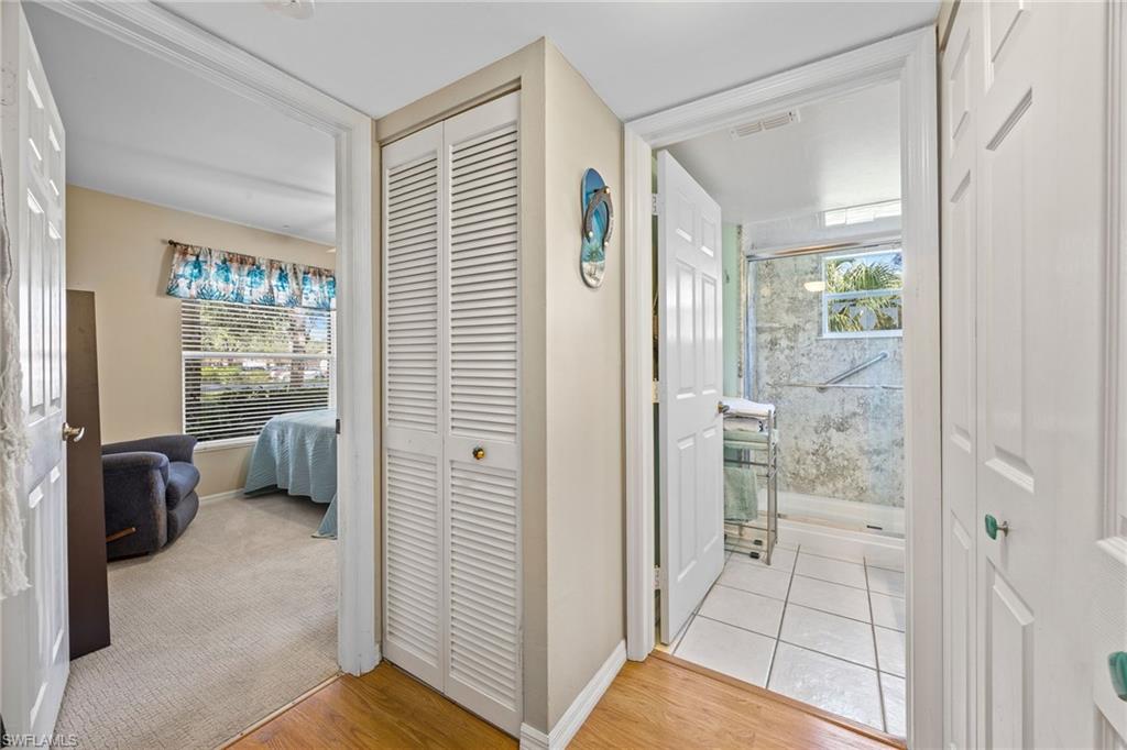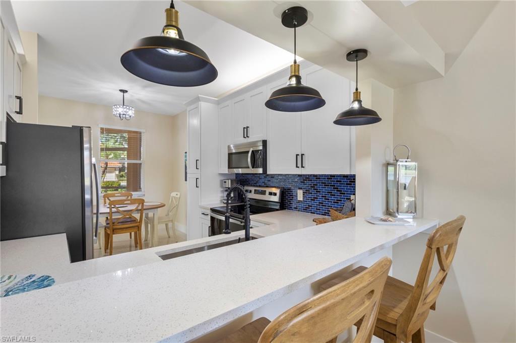 Light, Bright & Beautiful—Your Naples Oasis Awaits in Sherwood! Discover sunshine, serenity, and scenic lake views in this inviting first-floor condo (no steps) located in the highly desirable Sherwood community of East Naples. Offering partially furnished 3 bedrooms and 2 bathrooms (one of the bedroom has double doors and could make the perfect den), this residence is perfectly positioned in a non-flood zone with sunny southern rear exposure. Step inside and feel instantly at home. The open-concept living area features breezy coastal décor and flows seamlessly to a screened lanai where peaceful lake and preserve views set the tone for tranquil mornings and picture-perfect sunsets. Whether you’re sipping coffee, birdwatching, or winding down at the end of the day, this backdrop is nothing short of exceptional. The spacious kitchen blends style and functionality with updated cabinetry, stainless steel appliances, a kitchen bar with plenty of seating, and a cozy breakfast nook—ideal for relaxed meals or entertaining friends. The primary suite offers comfort and privacy with an ensuite bath with a walk-in closet and tiled shower. Two guest bedrooms share a full bath, giving everyone their own comfortable retreat. Additional perks include in-residence laundry, a dedicated one-car garage, an assigned parking space, roll-down hurricane shutter on the lanai and upcoming new hurricane-impact windows scheduled for installation this spring, ensuring peace of mind for years to come. Recent upgrades include a new HVAC system (2023), a newer roof (2019) and new washer/dryer (2024). This home has been meticulously maintained, offering a move-in-ready opportunity to enjoy one of Sherwood’s best views. Sherwood is beloved for its lush landscaping, expansive lakes, and warm, welcoming atmosphere. Residents enjoy an active resort-style amenities including two sparkling community pools, a clubhouse, fitness center, tennis and pickleball courts, and scenic walking paths. With just 336 coach homes and condos, the community strikes the perfect balance between peaceful living and vibrant social opportunities. The location couldn’t be better—just minutes to downtown Naples, 5th Avenue shopping, the Naples Pier, pristine Gulf beaches, Marco Island, Tin City, and world-class dining. Quick access to I-75 ensures convenient travel to RSW Airport, the Paradise Coast Sports Complex, Great Wolf Lodge, and countless local attractions. Zoned for an excellent school district and offering low quarterly fees that include cable and internet, Sherwood delivers both value and lifestyle. If you’ve been dreaming of a bright, peaceful, move-in-ready home with postcard-worthy views, this Sherwood gem is your chance to make it reality.