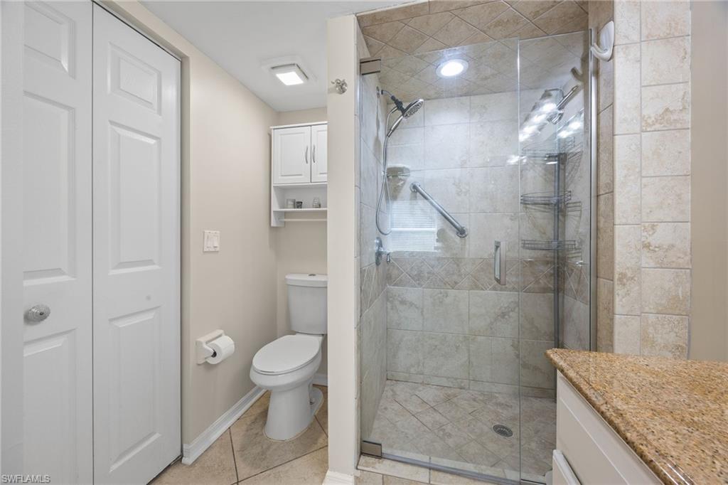 Welcome home to this first-floor end unit condo in the sought-after community of Sherwood, Naples. From the moment you walk in, you’re greeted by an expansive long lake view—one of the most beautiful in the neighborhood. Whether you’re enjoying your morning coffee while bird watching or winding down on your screened lanai as the sun sets over the water, this home was designed to bring the outdoors in. The interior is bright and open, with extra windows only an end unit can offer. The two-bedroom plus den floor plan provides flexibility, with French glass doors making the den perfect for a home office, guest space, or third bedroom. The updated kitchen is a central gathering place, featuring wood cabinetry with crown trim, granite countertops, stainless steel appliances, and a tumbled stone backsplash. It opens to the living and dining areas, creating a seamless flow for entertaining. Tile floors run throughout the home, with no carpet, and updated details give the condo a refreshed, move-in-ready feel. Both bathrooms have been beautifully renovated with granite counters and modern finishes. The primary suite offers a walk-in closet, plantation shutters, dual sinks, and a frameless glass shower. A custom laundry area with extra storage, along with a one-car garage and attic space, provide everyday convenience. Set on a quiet street, Sherwood offers resort-style amenities including two community pools, a fitness center, tennis, and pickleball. The location is just as appealing, with quick access to I-75, downtown Naples, world-class dining and shopping, pristine Gulf beaches, and attractions like the Paradise Coast Sports Complex and Great Wolf Lodge. This condo is being sold unfurnished and meticulously maintained, offering a rare opportunity to enjoy a move-in-ready home with one of the best views in the community.