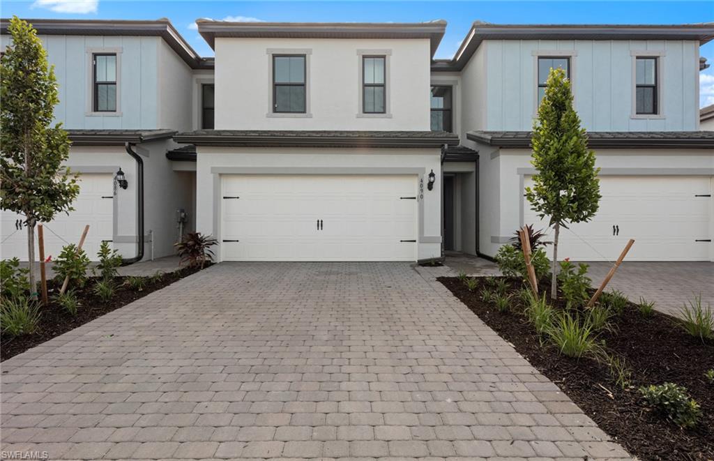 SPECIAL FINANCING AVAILABLE! NEW CONSTRUCTION TOWNHOUSE AVAILABLE NOW! Limited opportunities remaining! This 3-bedroom, 2.5 bath is just over 2,000 square feet and has a LAKE view with western exposure! With natural light pouring through the windows, this beautifully built 3 bedroom, 2.5 bath townhouse is a testament to modern elegance and comfort right here in SWFL. The heart of this home is the beautiul kitchen featuring white cabinetry, stylish backsplash, group 4 quartz countertops, a large, curve shaped kitchen island, stainless steel appliances, pendant pre-wiring, and opens up to the bright and airy gathering room and cafe. Sip on your morning coffee at your cafe, or right off your cafe area on your covered lanai. Feel at ease with tile flooring in the main living areas, while enjoying the coziness of the carpet in the bedrooms. This home also comes with a full laundry upgrade as well. With modern elegance and style of this townhome, combined with the location, this gem truly has it all!