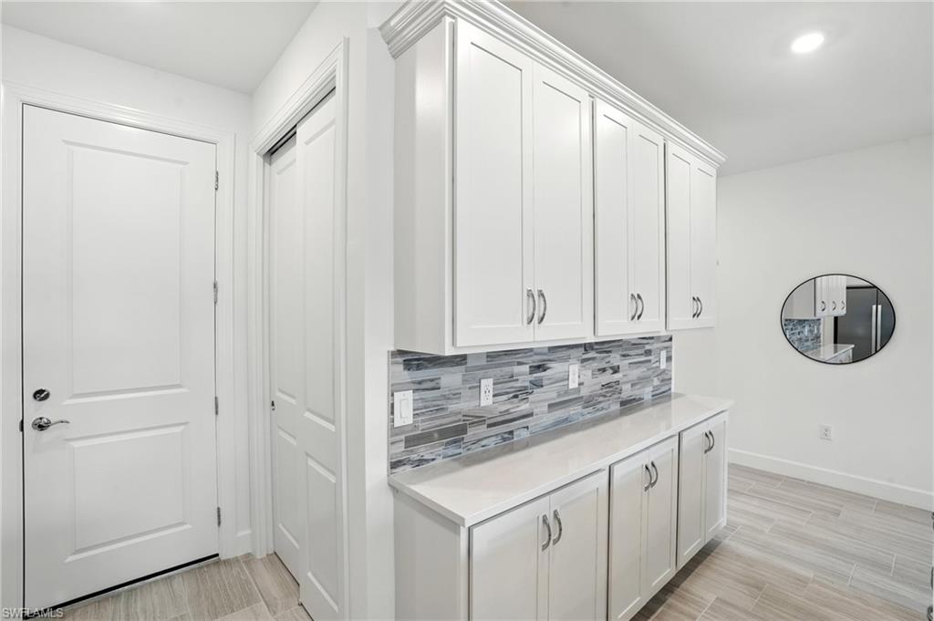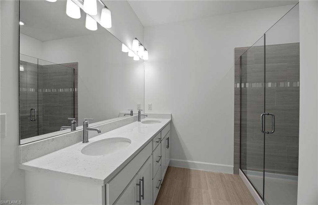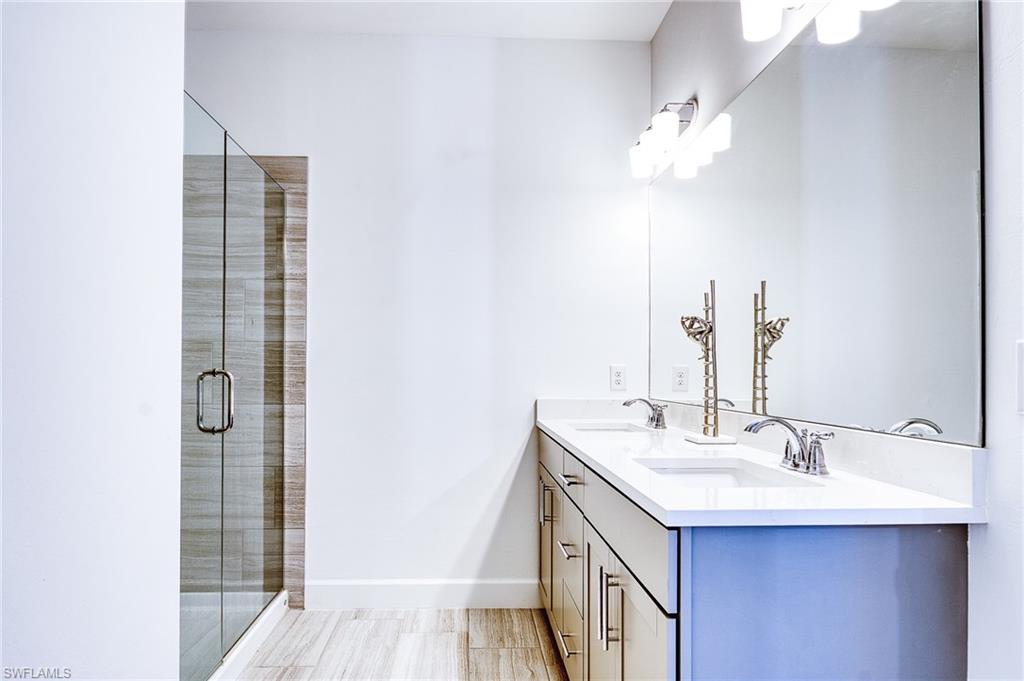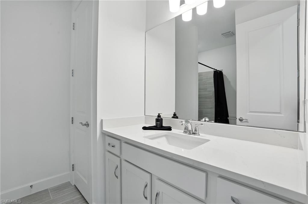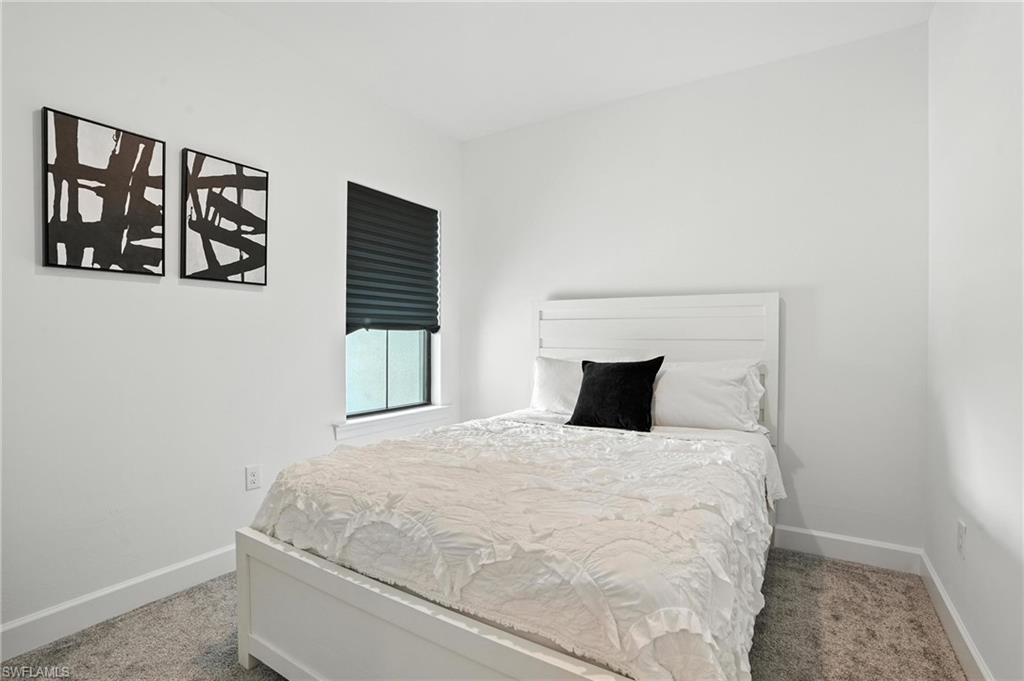 Located directly within the gates to this North Naples community, this corner-end unit home is located perfectly. It's only a short walk to the community pool, cabanas, and mail boxes. This home offers a spacious open floor plan, with a large eat-in kitchen. The kitchen is equipped with stainless steel Whirlpool appliances, white cabinetry, and a stunning quartz countertop. The cabinetry provides a ton of storage, along with a full pantry closet. Upstairs, the master bedroom provides two large walk in closets, an on-suite, double vanity, walk in shower, and a private toilet. Two additional bedrooms allow for more even more space, and an additional walk in closet. There is also a laundry space, equipped with a countertop and sink. This community is located close to many great restaurants and beaches!