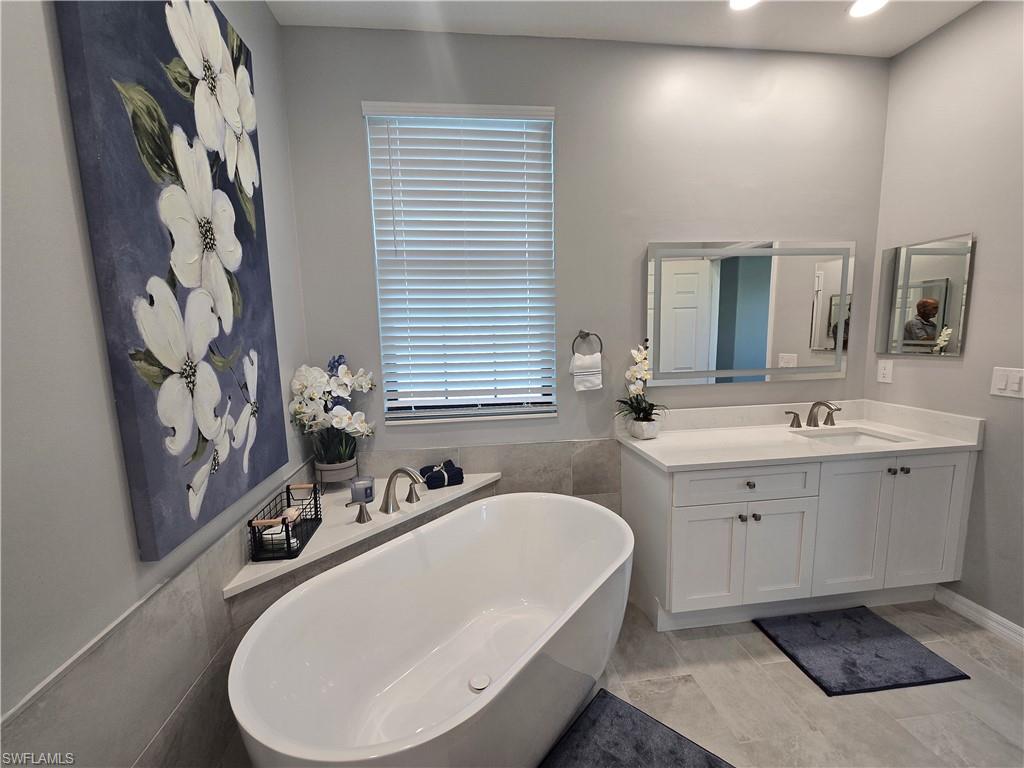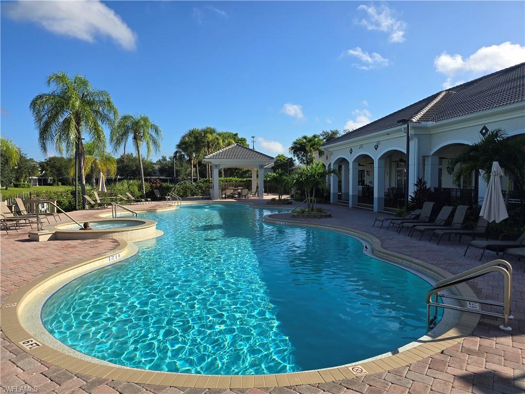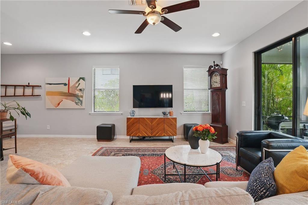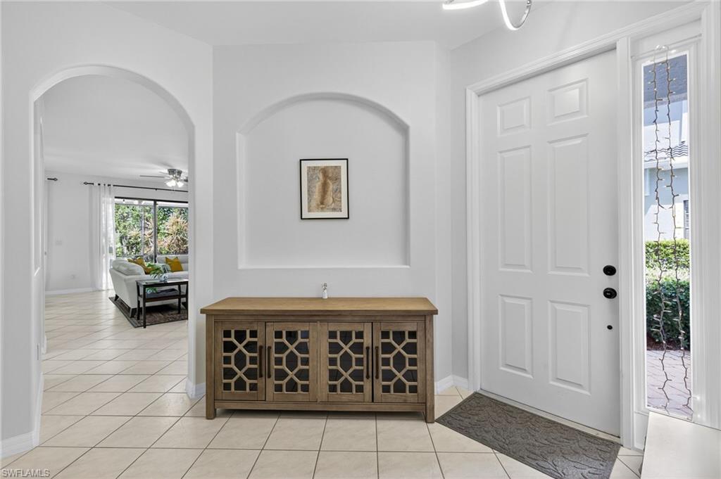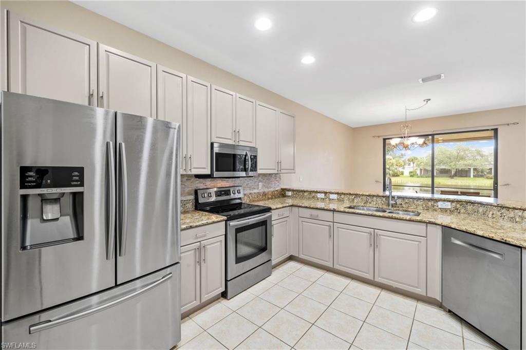 Skip the updates—this home is already done for you. Every detail has been thoughtfully finished, blending modern comfort with a touch of luxury. This spacious end unit offers three bedrooms plus a versatile den, ideal for a home office or guest suite. The kitchen immediately stands out with quartzite countertops and a premium appliance package, combining beauty and function in one sleek space. You’ll also find LVT flooring throughout and a whole-home Sonos sound system that set the tone for relaxed, modern living. The south-facing exposure fills the home with natural light, while the primary suite invites you to unwind, with a Jacuzzi soaking tub and relaxing, high-end finishes that create a peaceful retreat. The home also offers a 2-car garage for added convenience. This gated community features peaceful water views and resort-style amenities including a pool, tennis and basketball courts, and a fitness center. Located near Founders Square, beaches, dining, and I-75, this home has all the updates, location, and ease you’ve been searching for.