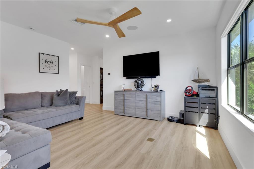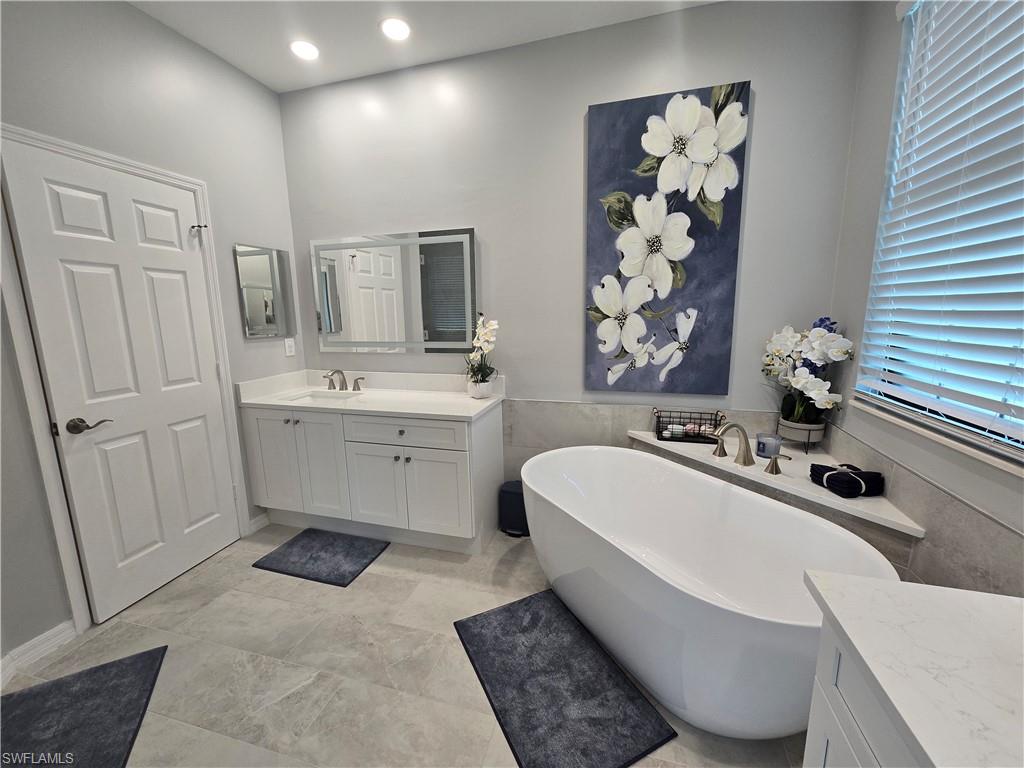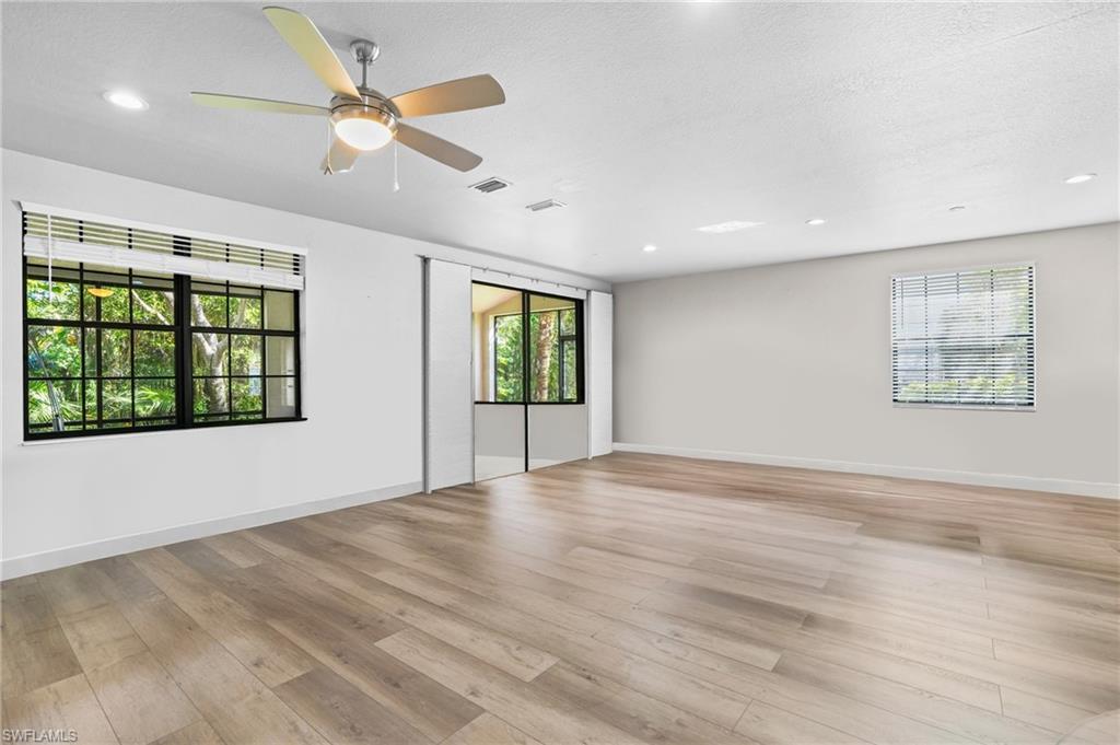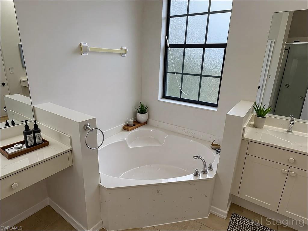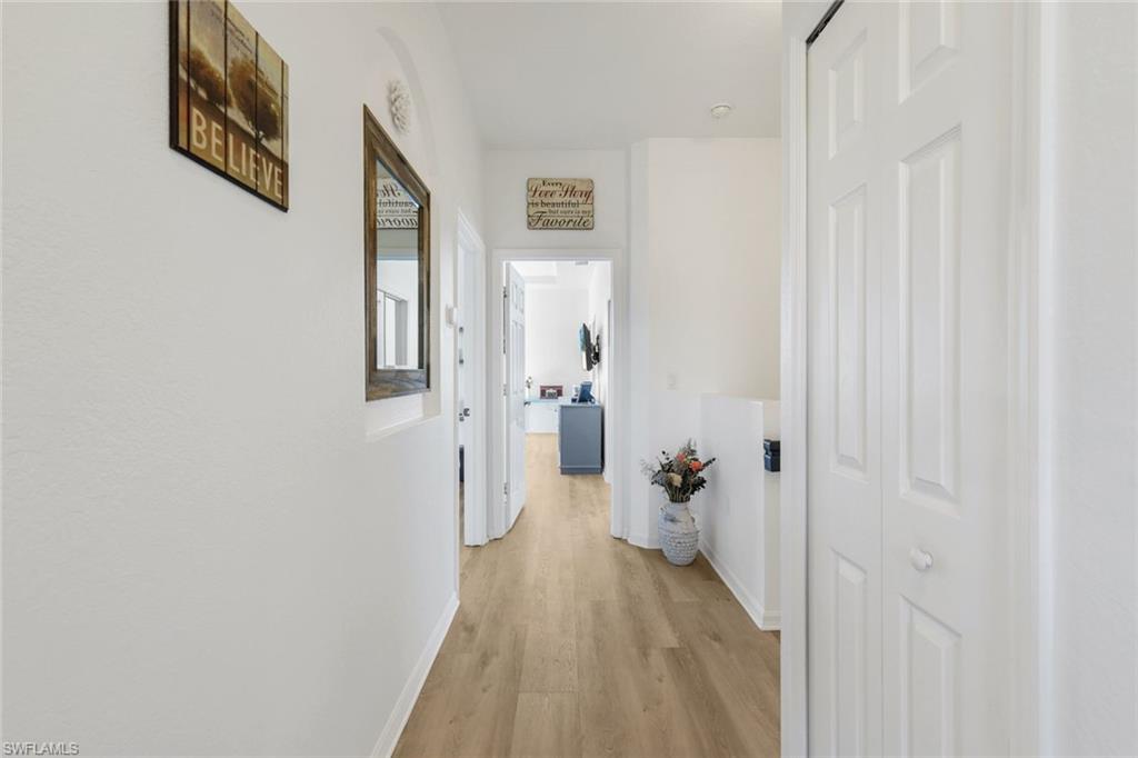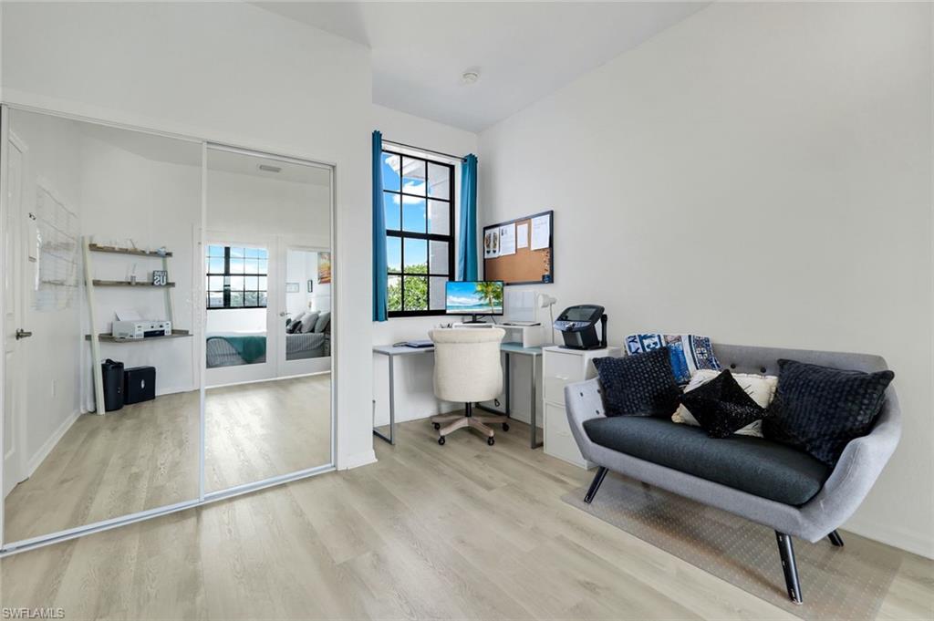 Skip the updates—this home is already done for you. Every detail has been thoughtfully finished, blending modern comfort with a touch of luxury. This spacious end unit offers three bedrooms plus a versatile den, ideal for a home office or guest suite. The kitchen immediately stands out with quartzite countertops and a premium appliance package, combining beauty and function in one sleek space. You’ll also find LVT flooring throughout and a whole-home Sonos sound system that set the tone for relaxed, modern living. The south-facing exposure fills the home with natural light, while the primary suite invites you to unwind, with a Jacuzzi soaking tub and relaxing, high-end finishes that create a peaceful retreat. The home also offers a 2-car garage for added convenience. This gated community features peaceful water views and resort-style amenities including a pool, tennis and basketball courts, and a fitness center. Located near Founders Square, beaches, dining, and I-75, this home has all the updates, location, and ease you’ve been searching for.