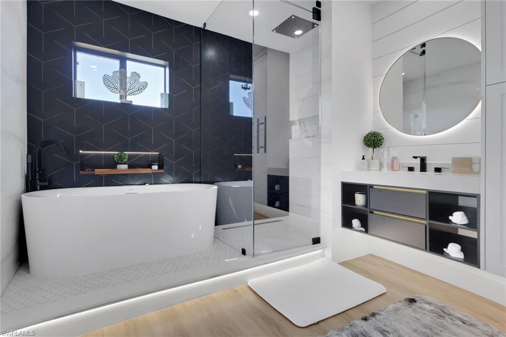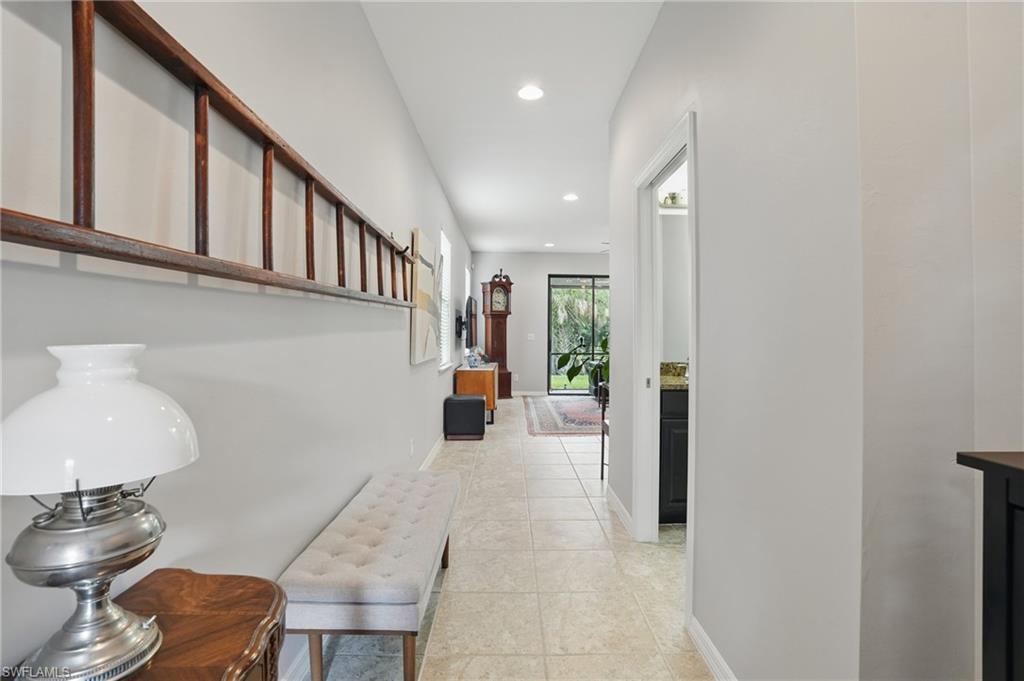 Welcome to a modern sanctuary in the heart of Naples—this beautifully updated 3-bedroom, 2-bath + half-bath home, built in 2013, offers 1,800 sq ft of interior living space and sits on a peaceful preserve-backed lot. Step inside and you’ll find hardwood-finish luxury flooring throughout (no carpet!), freshly painted interior walls, and an open-concept living/dining area that flows seamlessly to a covered, screened lanai—where you’ll enjoy your morning coffee or unwind in the evening while overlooking the tranquil green preserve. The kitchen is bright and welcoming with premium cabinetry, generous prep and storage space, and all-new major appliances. Large windows and efficient lighting lend a cheerful, polished feel. Oversized closets and a spacious two-car garage complete the interior offering. And for the tech-savvy homeowner: the property is configured as a smart home, with controls for lighting, locks, cameras and garage available via phone, compatible with voice assistants. In the garage you’ll also find a 50-amp EV charger—fully equipped for your electric vehicle, whether it’s a Tesla or another pickup. This residence is located in a guard-gated community offering resort-style amenities: pool with hot tub, fitness room, saunas, tennis/pickleball courts, clubhouse, BBQ picnic areas and more. The setting is relaxed yet convenient: just minutes to Gulf-coast beaches, upscale shopping and dining at Mercato and Waterside Shops, plus easy access to I-75. Families will appreciate the excellent school zone: the local elementary school, middle school and high school all hold strong ratings (including 10/10 for the nearby middle school). If you’re seeking a move-in ready home that blends technology, comfort, community and natural preservation views—this is a very compelling opportunity. The property comes with a FREE One Year American HomeShield Warranty.