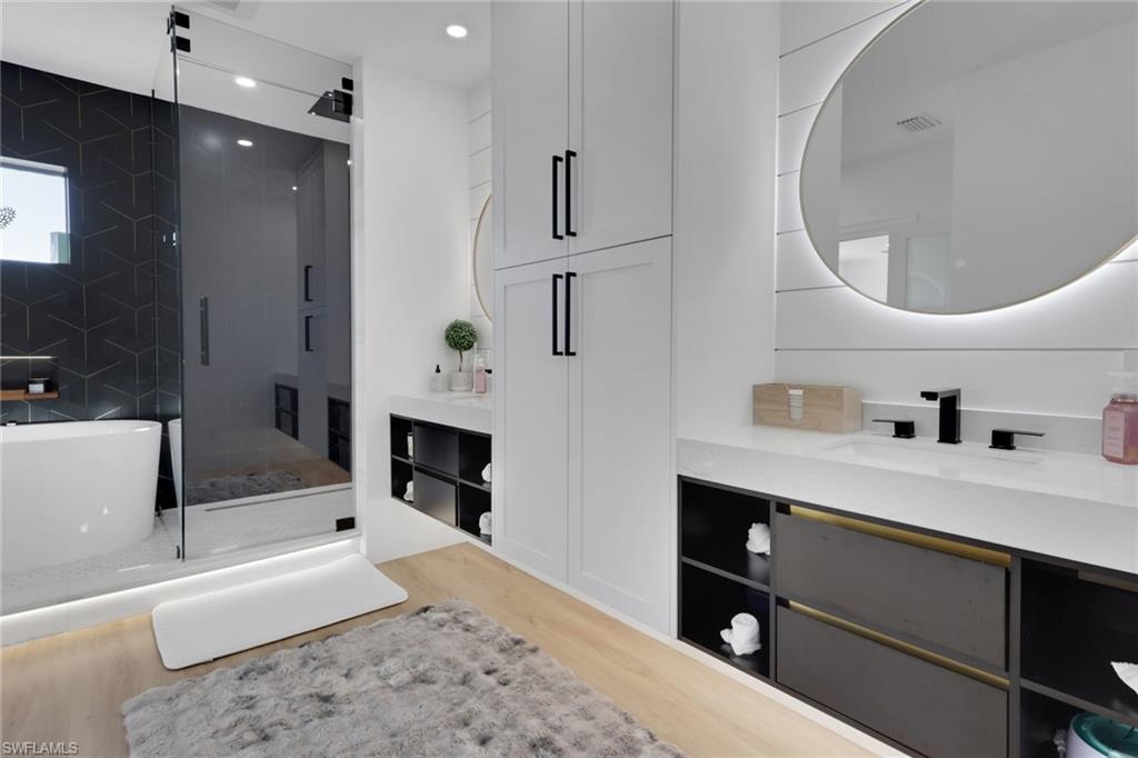 Motivated Seller - willing to make a deal! Stunning Modern Home with Over $100K in Upgrades! Step into luxury with this beautifully upgraded end unit home, featuring over $100,000 in high-end enhancements. Every detail has been thoughtfully designed, from the custom solid wood cabinetry with dovetail construction to the sleek quartz countertops that add a touch of elegance throughout. The kitchen counter also features a waterfall edge for added luxurious living. This amazing home features custom California Closets that ensure both style and functionality, while the spa-like main bathroom offers a true retreat with dual vanities, a rain showerhead, and a freestanding tub. Enjoy the warmth and durability of new LVP flooring throughout and the added comfort of custom window coverings. The home also includes a reverse osmosis in the kitchen for the purest drinking water. Finally enjoy an extended paver patio that overlooks a pond and large preserve while enjoying the beautiful sunsets that Southwest Florida is famous for. All of this plus the wonderful amenities that Summit Place offers including a large resort like pool, sauna and fitness center. Move-in ready and designed to impress—schedule your showing today!