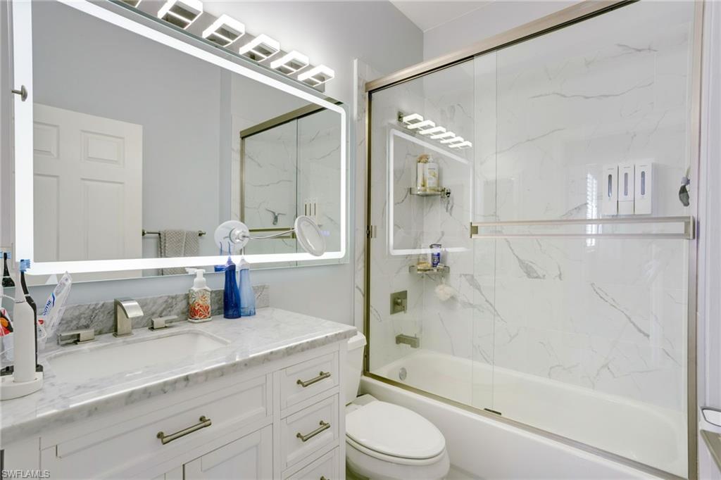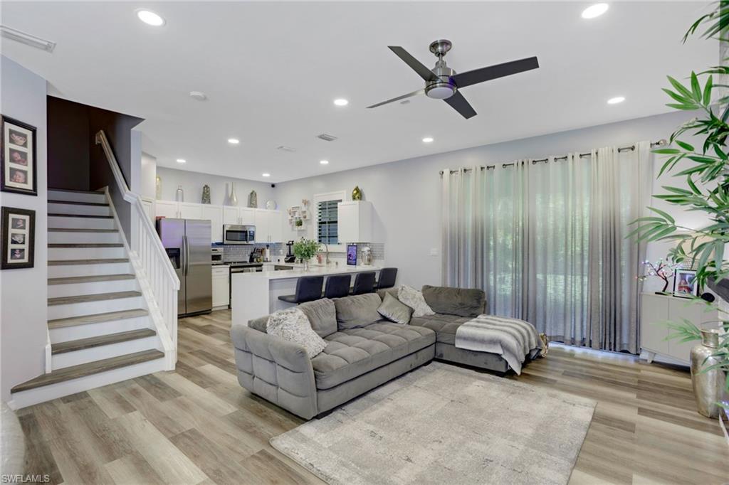 Welcome to this impeccably maintained 3-bedroom, 2.5-bath townhome in desirable North Naples, offering upgrades in every part of the home and priced to sell! Enjoy breathtaking sunsets with Western exposure from your private screened lanai. Inside, luxurious updates include a gorgeous stone-surround fireplace, plantation shutters throughout, showroom-inspired tile master shower enclosure, stylish updated vanities, and no carpet for a clean, modern look. The practical layout features a well-equipped kitchen including stainless steel appliances (+ beverage fridge), quartz countertops with a waterfall edge (+ample space to sit), walk-in pantry and flows nicely with the inviting living room and spacious dining area for hosting memorable gatherings. The primary suite offers dual sinks, walk-in closet complete with custom shoe rack and built in storage solutions (plus a separate 2nd closet), private water closet, and spa-like finishes, while a guest bedroom also features a walk-in closet for added storage. Additional highlights include a 2022 water heater, attached one-car garage with expanded driveway for side-by-side two-vehicle parking (or 4 all together), and a brand-new roof installed in 2024 (paid in full). HOA dues cover high speed (fiber) internet & cable, trash, pest control, lawn care, exterior paint/roof and access to resort-style amenities including a 6,000 sq ft clubhouse, fitness center, Lagoon style lakefront pool and spa, tennis and pickle-ball courts, fishing pier, basketball courts, BBQ and picnic areas. Summit Place is a pet-friendly community, zoned for top A-rated schools—Vineyards Elementary, Oakridge Middle School, and Barron Collier High School—and ideally located minutes from Founders Square, Aldi's, Chic-Fil-A, Chipotle, various medical offices, and Naples’ beautiful award winning beaches.
