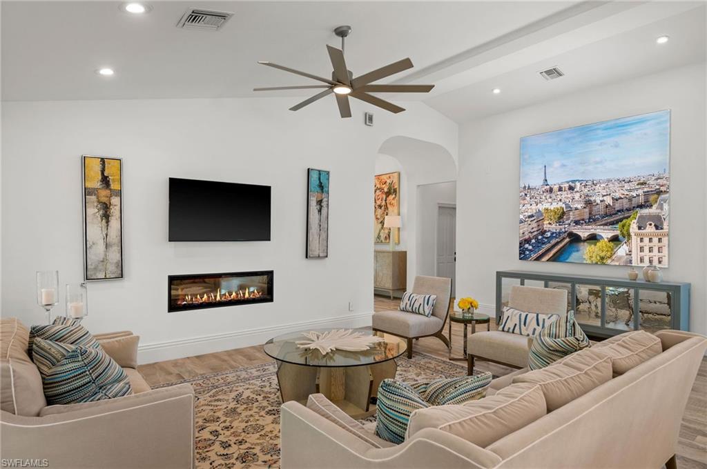 Centrally located in the City of Naples and minutes to historic 5th Avenue !This fully fenced spacious 3 bed and 3 bath residence was completely rebuilt and remastered in 2005. The open great room plan with soaring ceilings and custom kitchen cabinetry is every entertainer's delight. Kitchen equipped with high-end appliances, wine cooler, wine rack, and built-in reverse osmosis. Water softening system throughout the house .Elegant touches in every part of the entire home: Legrand system, custom window coverings, Robb & Stucky custom furniture, ample storage w/custom closets in all bedrooms: built-ins and epoxy floor in the air-conditioned garage. A retractable insect screen installed over the garage door keeps the space impenetrable to the critters. Property is located in the X -flood zone
