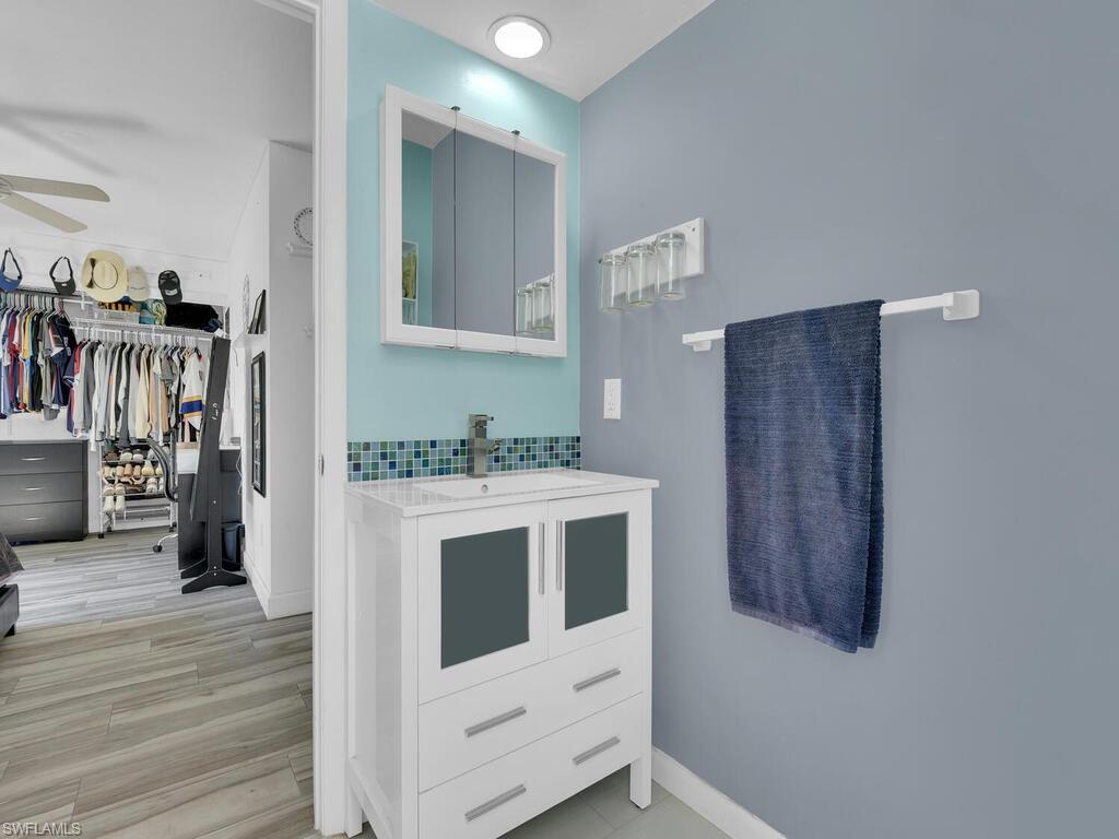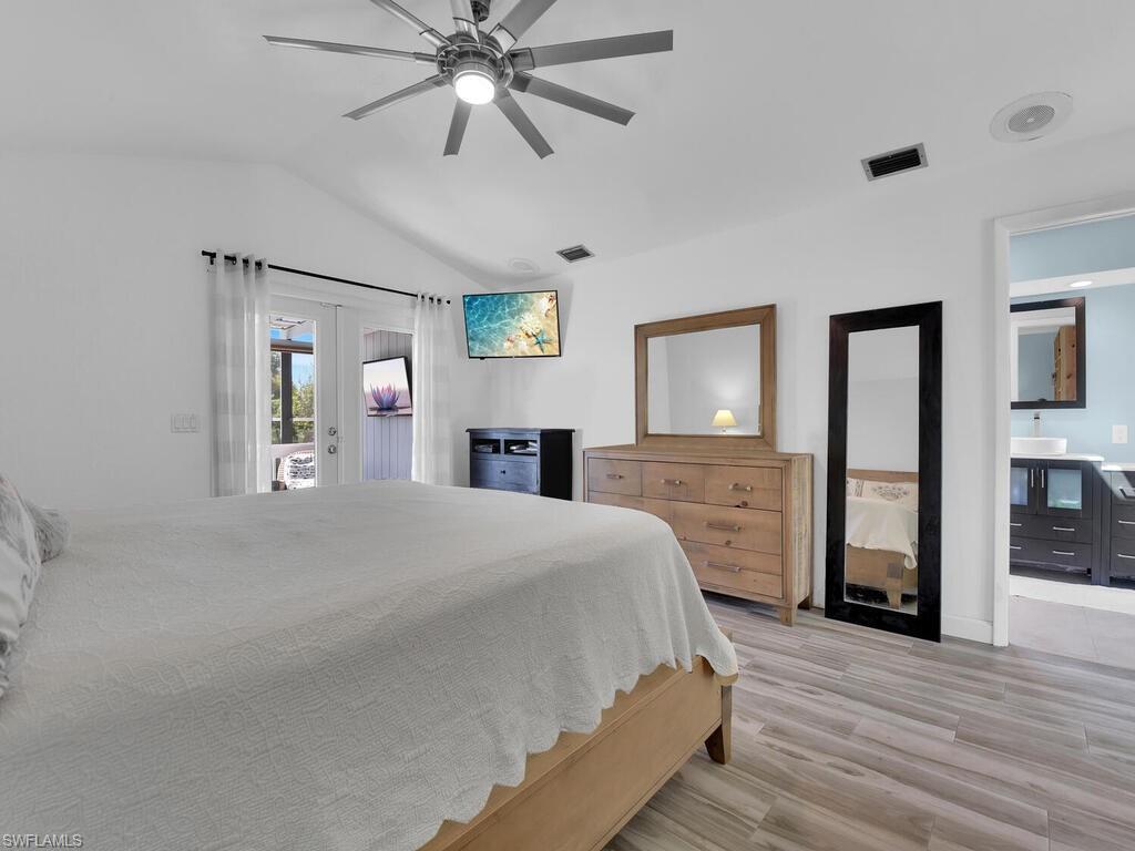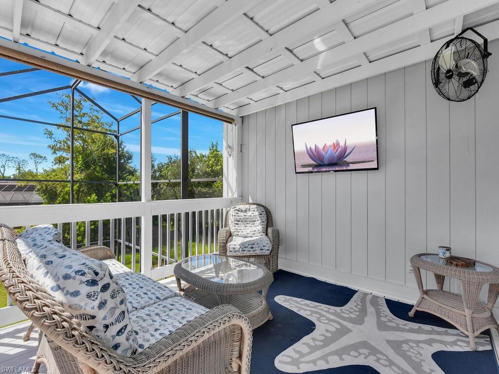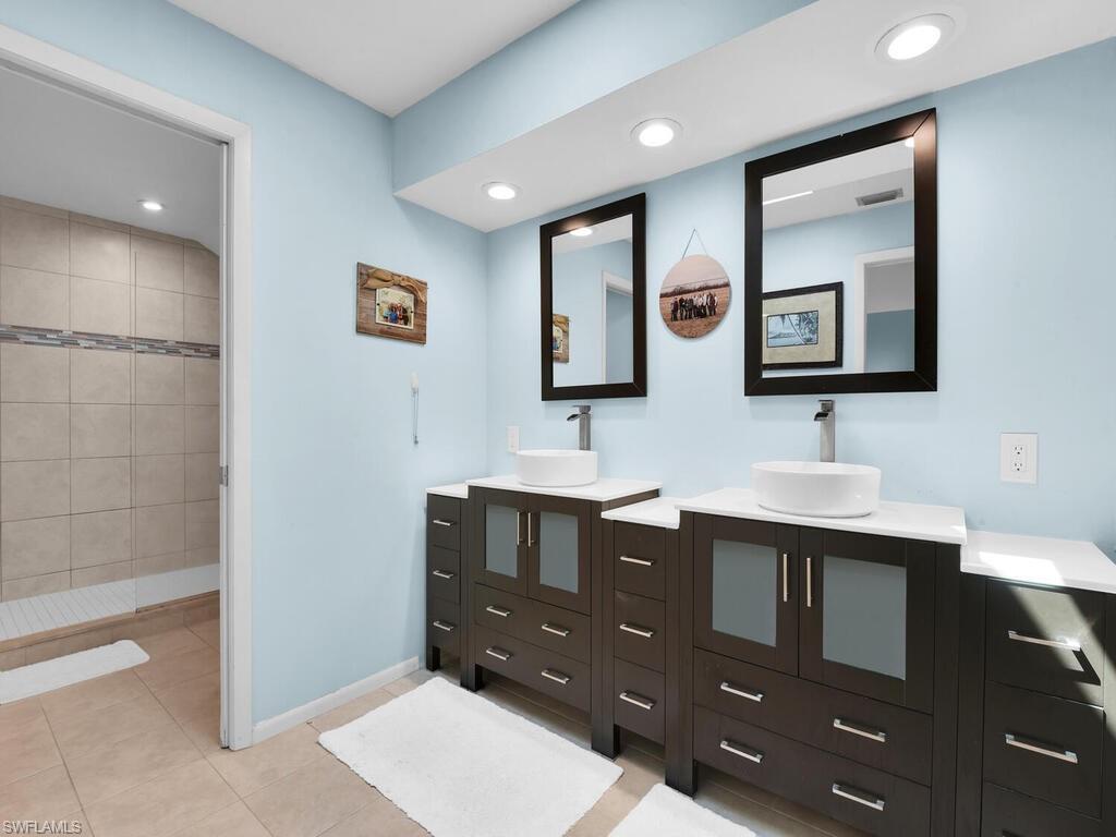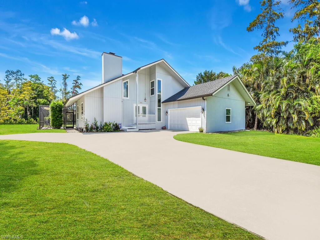 Beautifully renovated and set on an oversized 0.52-acre cul-de-sac lot with your very own private pickleball/basketball court, this fully furnished two-story estate blends high-end finishes, generous indoor-outdoor living, and an unbeatable central location. Inside, the open layout is filled with natural light and anchored by a coastal-inspired kitchen with teal shaker cabinetry, brass hardware, white quartz countertops, a farmhouse sink, and a rustic center island. Wide-plank, white oak floors flow throughout the living and dining areas, creating a warm, cohesive feel. The flexible floor plan includes two primary suites—one on each level. The first-floor suite offers a private exterior entrance ideal for guests or multigenerational living, while the upstairs suite enjoys a seating area and a balcony overlooking the peaceful, tropical yard. Outdoor living is a major highlight, with a full-length covered back porch, multiple seating and dining zones, and a hot tub overlooking the expansive backyard retreat. With its rare combination of privacy, location, and turnkey readiness, this home offers an exceptional lifestyle in one of Naples’ most coveted neighborhoods.