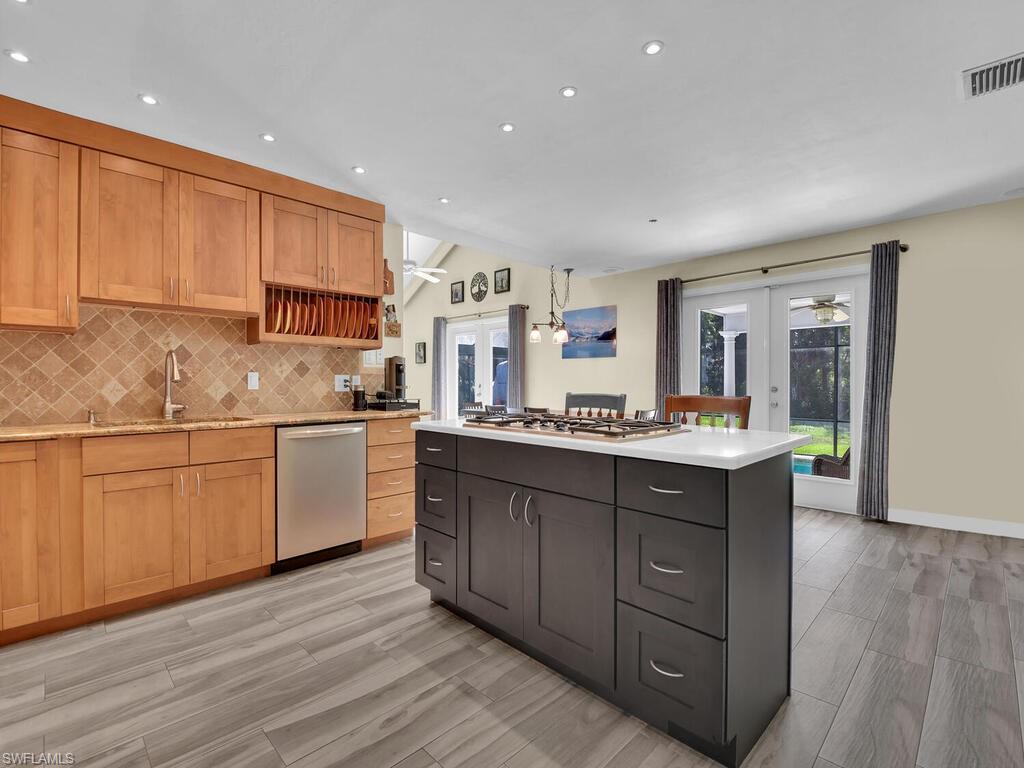 Welcome to 2761 Ardisia Lane, an exquisite lakefront sanctuary nestled in the charming and centrally located neighborhood of Tall Pines, Naples, FL. This stunning 4-bedroom, 3.5-bathroom residence, rebuilt from the ground up in 2014, offers modern luxury and comfort on an oversized private lot. Step inside this custom-designed home and be captivated by its elegant features and thoughtful layout. The living and formal dining room are artfully separated by a custom gas double-sided stone fireplace, creating warmth and ambiance. Your chef's kitchen is a masterpiece with a gas cooktop, double oven, and gleaming granite countertops, complemented by high-end stainless steel appliances. The main floor boasts a spacious master suite with dual walk-in closets, providing a serene retreat while the adjoining master bath offers luxury and relaxation. A mud room and expansive laundry room add to the home's functionality and charm. Ascend to the second floor to find a large suite with an en-suite bath, along with two additional bedrooms featuring a Jack and Jill bathroom. The airy game room/loft area invites a space for entertainment. A unique walk-in attic offers an additional 431 square feet of accessible storage space. As you make your way outside, you'll be delighted with the lakefront view complete with a refreshing pool and a relaxing hot tub. Sit outside on cool nights by your outdoor firepit. Whether you're hosting a weekend barbecue or enjoying a quiet evening under the stars, this outdoor oasis is sure to be a favorite gathering spot.