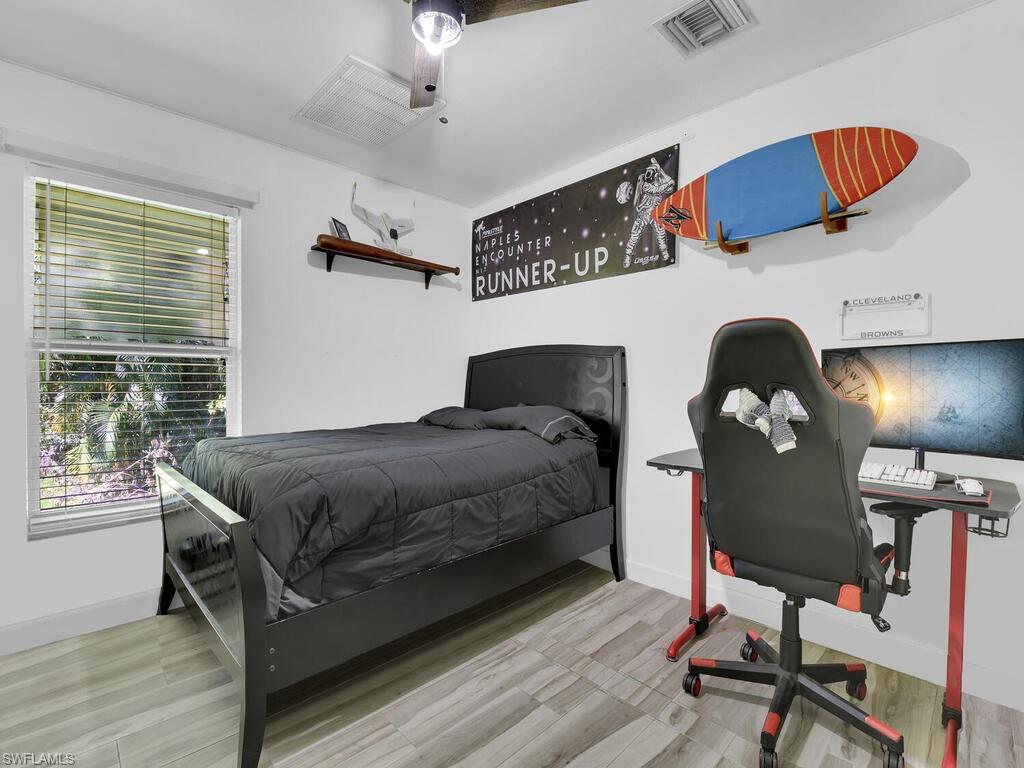 Welcome to 6161 Waxmyrtle Way—a beautifully refreshed pool home in one of Naples’ most sought-after neighborhoods. Freshly painted inside and out, this residence offers impact-resistant windows and doors, combining style with storm-ready peace of mind. The home features a spacious, light-filled layout centered around a private courtyard-style pool, providing the perfect backdrop for entertaining or relaxing in total privacy. High ceilings, oversized windows, and skylights invite natural light into every corner of the living space. This open floor plan includes generous guest rooms, a versatile den, and a large laundry room. The primary suite is its own retreat, complete with custom walk-in closets, dual vanities, a walk-in shower, and a freestanding soaking tub. An oversized garage offers extra space for storage or hobbies. Enjoy a fenced backyard ideal for pets, a newer roof and A/C system, and a low HOA of just $72/month. Perfectly situated just minutes from top-rated schools, Naples’ world-class beaches, fine dining, and shopping, this home is ideal for families, seasonal residents, or investors seeking long- or short-term rental potential. Homes in this quiet, centrally located community rarely hit the market—don’t miss your opportunity to own a move-in-ready home in the heart of Naples. No history of hurricane damage.