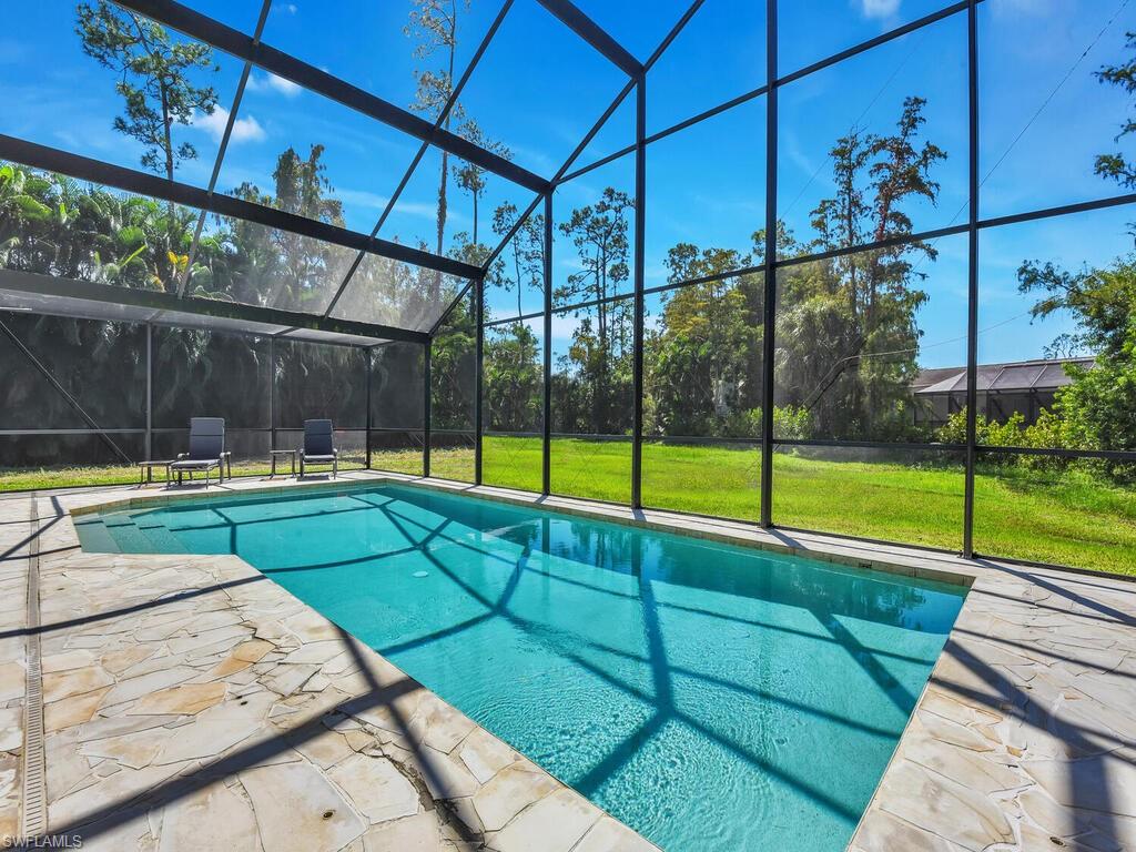 Welcome to this charming two-story pool home nestled in the sought-after community of Tall Pines. Featuring a newer roof (2017), tile flooring (2017), air conditioning units (2017), and hot water heater (2025). This home boasts a bright open living space with high ceilings creating a warm and inviting atmosphere as well as generous bedrooms for the whole family. Enjoy beautiful views of the sunset from the private lanai and large pool- ideal for relaxing or hosting gatherings year-round. Located on a quiet cul-de-sac in a community with low HOA dues, this home combines privacy-with convenience-just minutes away from top-rated schools, shopping, dining, and Naples' pristine beaches.