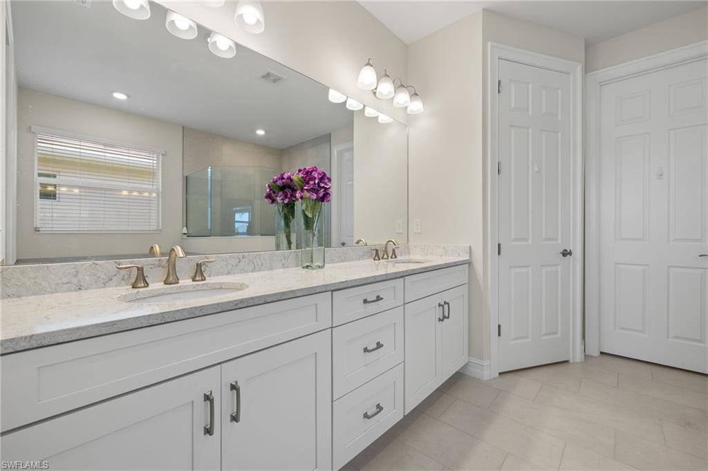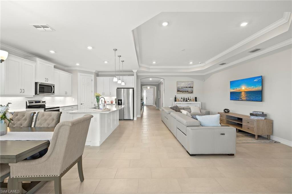 Oversized lot and fenced in backyard! This brand-new, move in ready 2024 designer home boasts 4 bedrooms, 2 baths offering a sophisticated blend of high-end finishes and modern elegance throughout. Below market financing available, see remarks. The light and bright open floor plan is adorned with chic designer furnishings, board and batten carpentry accents, and exquisite lighting fixtures throughout. The spacious kitchen is a showstopper, featuring an expansive quartz island, Whirlpool appliance suite, a walk-in pantry, and upgraded faucets and hardware. For optimal privacy, the primary suite is tucked away in its own serene retreat, complete with a spa-like ensuite bath featuring dual vanities, a walk-in shower, and refined finishes. Meanwhile, the guest bedrooms are thoughtfully positioned in their own wing, offering a private sanctuary for family and visitors. The fourth bedroom serves as a versatile space, perfect for a home office, media room, or additional guest accommodations. Beyond your stunning interior, this home is part of a vibrant community where you can indulge in resort-style amenities, including a clubhouse with a Social & Game Room, a state-of-the-art fitness center, a sparkling pool with lap lanes, and pickleball & bocce courts. Perfectly situated just minutes from shopping, dining, and the sun-drenched Gulf beaches of downtown Olde Naples and Marco Island, this is truly Naples living at its finest.