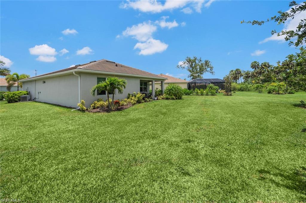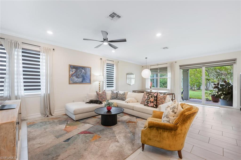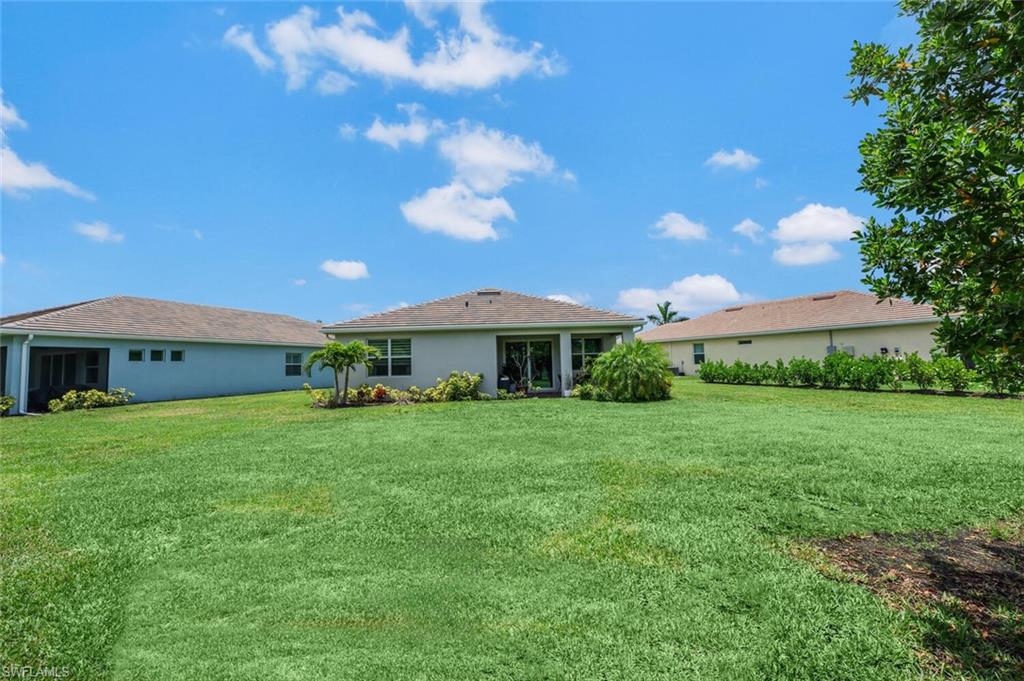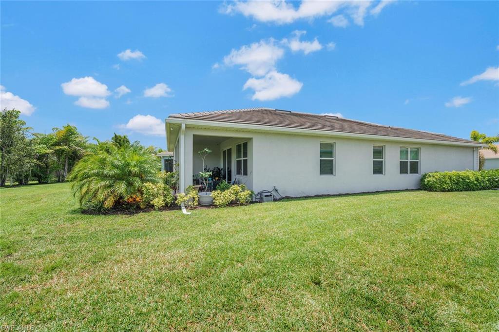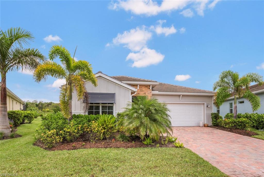 Stunning single family home with Upgrades, Resort-Style Amenities, Room for a Pool, and Prime Location. Discover this gorgeous, light-filled home in Tamarindo, ideally situated in one of the community’s most peaceful and desirable locations. Perfectly positioned just 15 minutes from the beautiful beaches, world-class shopping, dining, boating, and entertainment of both Naples and Marco Island, this residence offers exceptional value and an effortless Florida lifestyle. Thoughtfully designed with coveted southern rear exposure, the home is bathed in natural light throughout the day and enjoys warm breezes and glowing sunsets. Inside, the owners have added more than $17,000 in custom enhancements that elevate both style and functionality. Features include a sophisticated built-in bar, designer-selected lighting fixtures, custom window treatments, a bespoke barn door, epoxy-coated garage flooring, and additional refined touches that set this home apart. Premium builder upgrades further enhance the living experience with quartz countertops, impact-resistant windows and doors, crown moulding, wood-look tile flooring, stainless steel appliances, a frameless glass shower, and integrated smart-home technology for added convenience and peace of mind. The spacious backyard provides ample room to design your own custom pool and spa, allowing you to create the private outdoor oasis you’ve always envisioned. Located in the preferred “X” flood zone, this home offers lower insurance considerations and added security. Tamarindo residents enjoy an impressive suite of resort-style amenities with low HOA fees, including a beautiful clubhouse, sparkling community pool, modern fitness center, pickleball and bocce courts, a social room, game room, and more. The neighborhood’s convenient location near Collier Boulevard provides quick access to parks, golf, dining, shopping, boat ramps, and the airport, making everyday living effortless. For buyers seeking convenience, an optional furniture and décor package is available for a truly turnkey move-in. Beautifully maintained, stylishly upgraded, and ideally located—this exceptional home invites you to start living the Southwest Florida lifestyle you deserve!
