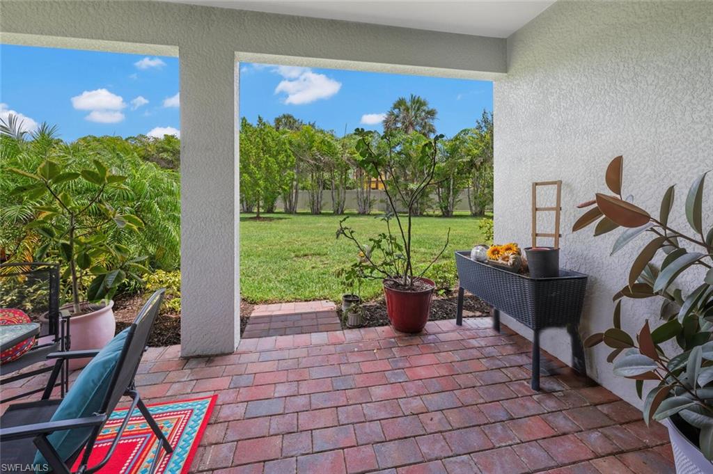 PRICE REDUCED BY $46K FROM ORIGINAL ASKING PRICE!!!!NEWLY FURNISHED AND INCLUDED!! This top selling Delray floor plan offers an open concept great room/ kitchen/dining area that is perfect for entertaining as well as your daily lifestyle. This home has 3 bedrooms plus den/flex room and 2 full baths, porcelain tile flooring throughout the main living area, freshly shampooed carpeted bedrooms and CROWN MOULDING in the main living areas and master bedroom. Stainless steel appliances and quartz counters with large island adorn the spacious and bright kitchen. A serene WESTERN landscape view from your dining area onto an outdoor covered lanai make for the perfect spot to enjoy your morning coffee or nightly glass of wine. Although this home is STEPS from the community pool and amenity center, the large backyard has ample room for a pool to be built. IMPACT RESISTANT WINDOWS and doors and 2 CAR GARAGE are added bonuses in this spectacular property. Tamarindo is a gated community with LOW HOA fees, and a wide variety of amenities including 4 pickleball courts, fitness center, 3 bocce ball courts, club house with social/game room, and resort style pool. LOCATED WITHIN AN "X" FLOOD ZONE, no flood insurance is required! Come and visit this LIKE NEW property today! Minutes from I75, shopping, dining and the renowned beaches of Marco Island and Naples, Tamarindo offers the ultimate in Florida living.