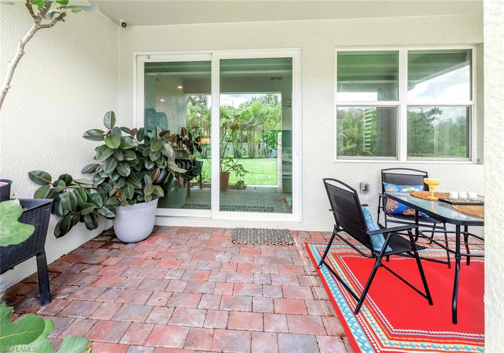 Perfect location for you and your guests, diagonally across from the clubhouse and pool, tennis and mailboxes. This immaculate furnished, four-bedroom home, upgraded with plantation shutters, screened lanai, and front door area, and all tile flooring throughout located in the exclusive gated community of Tamarindo. Enjoy the serenity of a screened, paved lanai and a cozy screened front porch, The open-concept layout features a generous great room that seamlessly connects to the kitchen and dining area. The kitchen is a chef's dream, boasting quartz countertops, stainless steel appliances, a chic white subway tile backsplash, and stylish white cabinetry. Retreat to the primary suite, which includes a luxurious walk-in shower, and a double vanity. Go outside to the expansive screened lanai, ideal for entertaining or relaxing. This is a smart home, control your air conditioner and doors from your phone. Community amenities are second to none, featuring an exceptional clubhouse, resort-style pool, lap lanes, a fitness center, four pickleball courts, and three bocce ball courts. With picturesque lakes and convenient access to the shopping, dining, and pristine beaches of Naples and Marco Island, this home offers the best of Florida living. Move in and start enjoying your new lifestyle today!