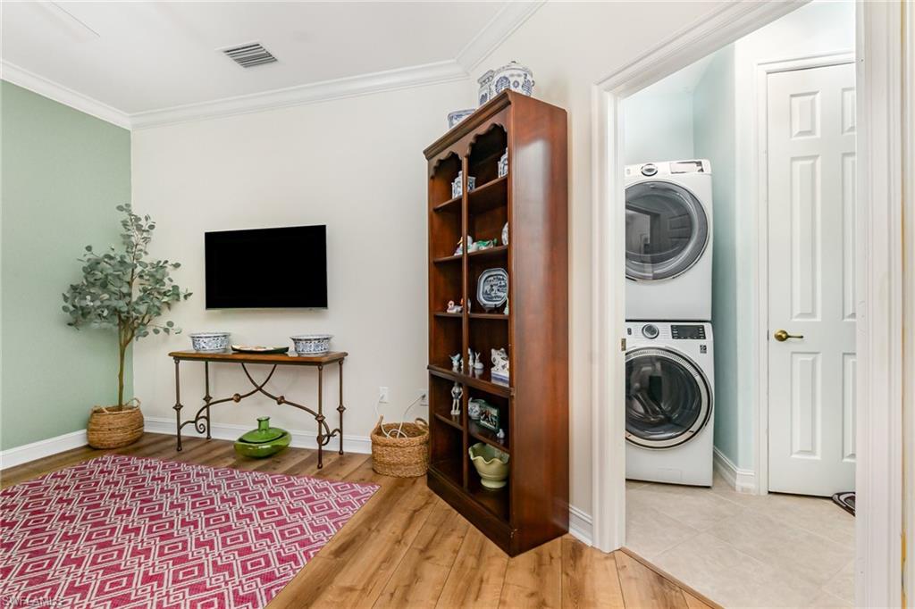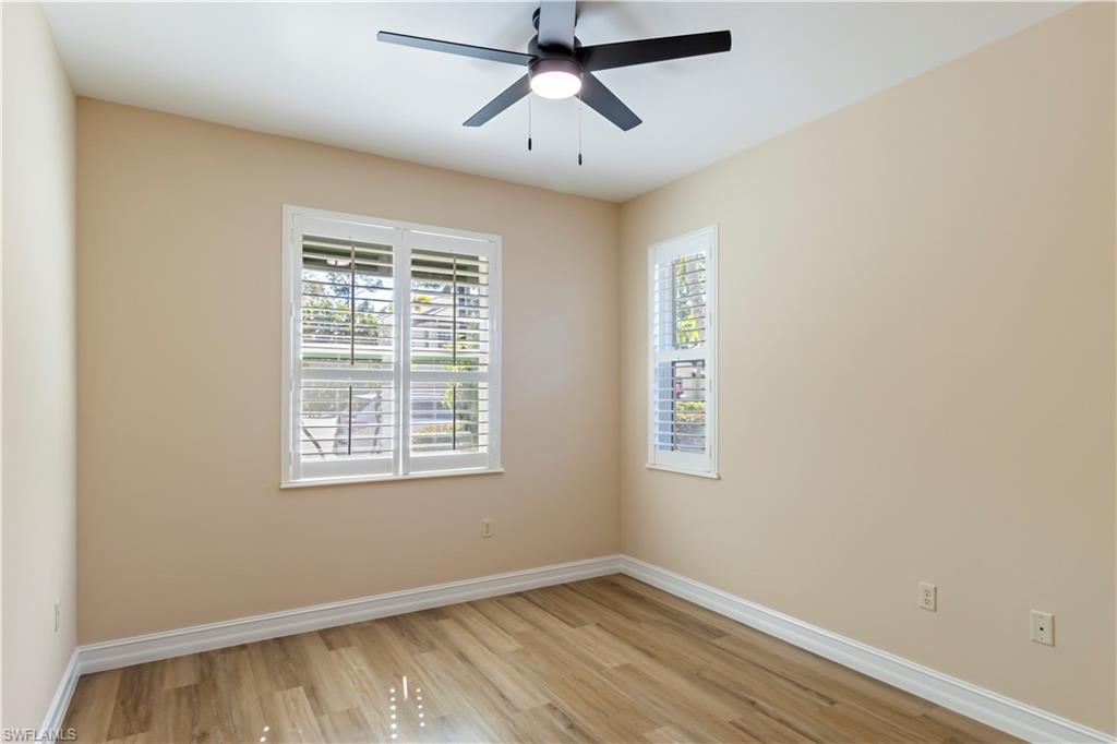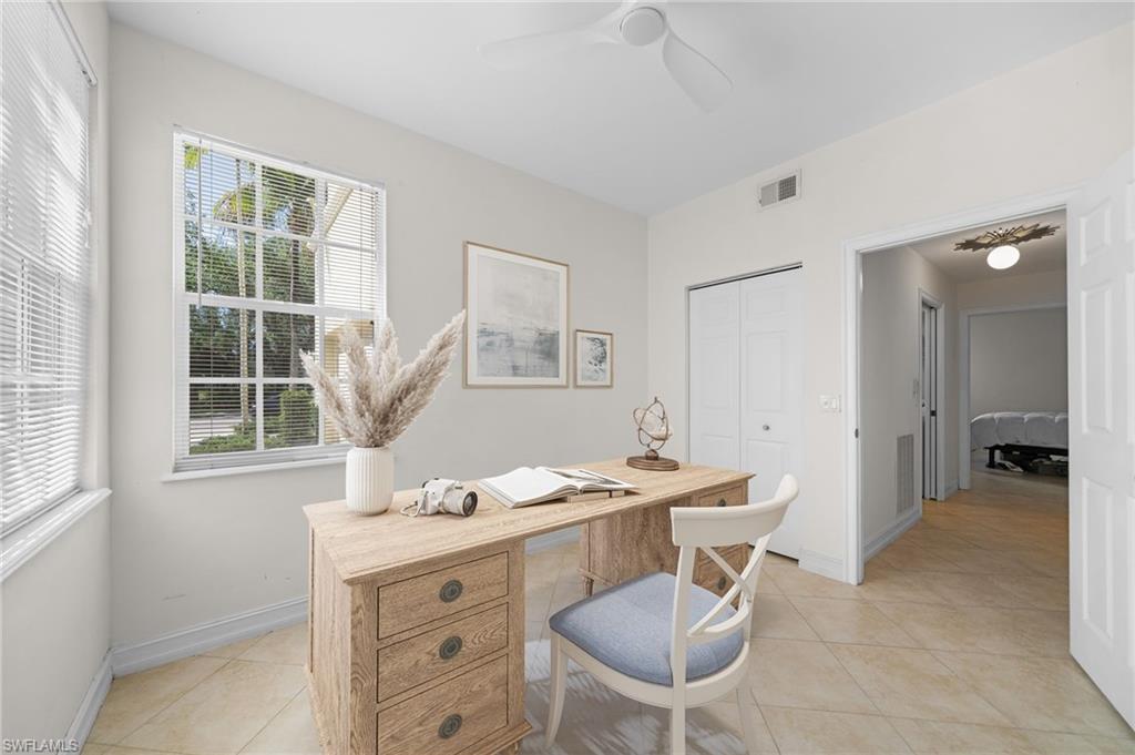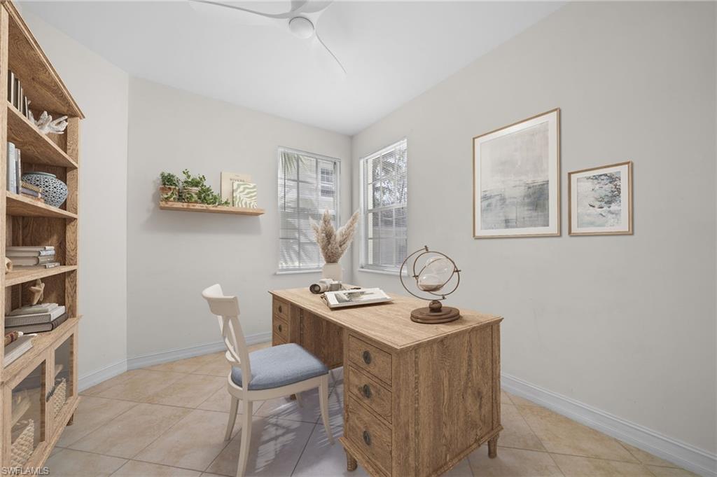 Perfectly placed within Tarpon Bay, this spacious 2nd-floor residence boasts the community’s largest open split floor plan. Offering 3 bedrooms plus a den and a 2-car garage, this home blends comfort, style, and functionality. Inside, you’ll find granite countertops in both the kitchen and baths, crown molding, plantation shutters, and diagonal tile flooring. The kitchen is a chef’s delight with GE slate gray appliances, double oven and a natural gas range, oversized double composite sink, upgraded pantry door, and glass backsplash. Recent updates include a 2024 refrigerator, 2014 AC but 2024 compressor, and tankless water heater, and upgraded bathroom fixtures with a frameless glass shower and pebble tile floor in the primary bath. Added conveniences include an Ecobee Wi-Fi thermostat and a monitored alarm system. The screened lanai overlooks a serene preserve and offers plenty of room for both dining and lounging. Accordion hurricane shutters provide peace of mind. Tarpon Bay is a gated, resort-style community with world-class amenities, including clay tennis courts, pickleball, basketball, volleyball, billiards, gas grills, infinity-edge pool, spa, and fishing pier. Ideally located near I-75 and just minutes to Naples’ pristine beaches, shopping, and dining, this community offers the ultimate Naples lifestyle. NEW ROOF coming this year! Assessment of 18k paid in full!