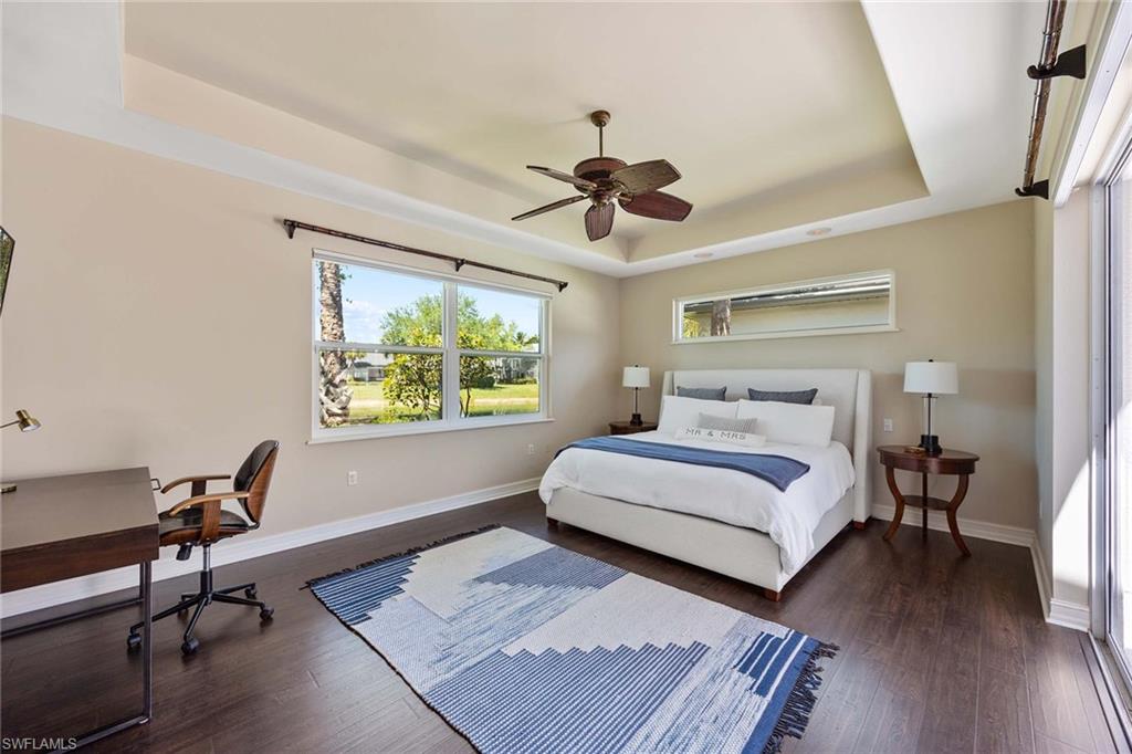 This beautiful luxury villa checks all the boxes, new roof, new impact glass and much more. Massive ceilings, towering doors, and an open courtyard layout that brings in tons of natural light. The covered lanai disappearing doors open to an eight-person in-ground pool spa, ideal for relaxing or entertaining. Enjoy southwest-facing long lake and fountain views right from your main bedroom. Inside, the home features tray ceilings throughout, high-end kitchen, tankless hot water, an integrated sound system, and designer fans throughout—every inch is thoughtfully upgraded. In Tarpon Bay, residents have access to the Castaway Club, which includes a full clubhouse, weight and cardio gym, yoga studio, Har-Tru clay tennis courts, a lakefront infinity pool, hot tub, kayak dock with boat storage, gazebo pier, barbecue grill area, and more. Whether you're looking for a full-time home or a seasonal getaway, this villa offers easy living in a resort-style setting.