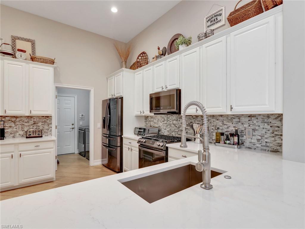 Impeccably Renovated Coach Home in Tarpon Bay – North Naples Living at Its Finest! Welcome to this beautifully updated 3-bedroom, 2-bathroom Coach Home located in the highly sought-after, amenity-rich community of Tarpon Bay. Thoughtfully renovated throughout, this home offers a spacious and elegant layout featuring 20-inch tile flooring that provides both style and ease of maintenance. The chef’s kitchen is sure to impress with premium KitchenAid appliances, sleek finishes, and ample space for preparing meals and entertaining. The Primary Suite offers a relaxing retreat with two generous walk-in closets and a spa-like bathroom featuring a tile-and-glass enclosed walk-in shower. Perfectly positioned in North Naples, this home provides convenient access to I-75, RSW Airport, top-rated schools, shopping, dining, and Naples' stunning Gulf beaches. Showings are by appointment only—don’t miss your opportunity to experience this exceptional home in person.