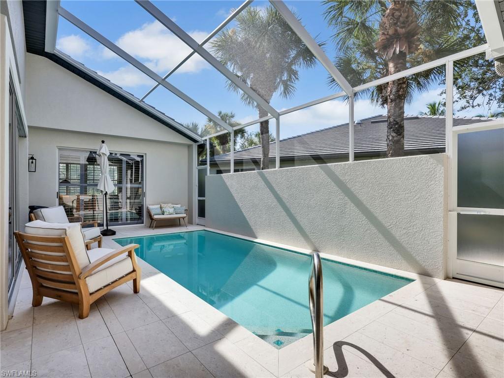 New roof, impact windows and all new exterior features. Also includes a private pool spa and a tranquil courtyard, this exceptional home offers an unparalleled pool retreat area and privacy like no other. Designed for seamless indoor-outdoor living, this villa boasts massive pocketed sliding glass doors that open to a completely private plunge pool spa lanai. The spacious deck is ideal for lounging, grilling or soaking up the sun, all while enjoying serene views of the cascading waterfall. Luxury features include a tankless water heater, newer appliances, light and bright Corian countertops, and rare direct natural gas cooking for a chefs kitchen. Inside, you'll find a spacious rooms, cedar closets, updated baths, laundry room with built-in cabinetry, elegant diagonal tile flooring, decorator shelf accents, upgraded lighting, custom motorized window treatments and more. Volume and tray ceilings add to the home's sophisticated appeal and sense of space. Tarpon Bay Resort offers exceptional resort-style amenities, including an infinity-edge pool, spa, fitness center, barbecue grills, fishing pier, pickleball and tennis courts, billiards and a community kitchen. Ideally in North Naples, this villa is just minutes from top-tier dining, shopping and the area's best beaches. With all major updates completed, this move-in-ready home is a rare opportunity to experience luxury, privacy and the ultimate Florida lifestyle.