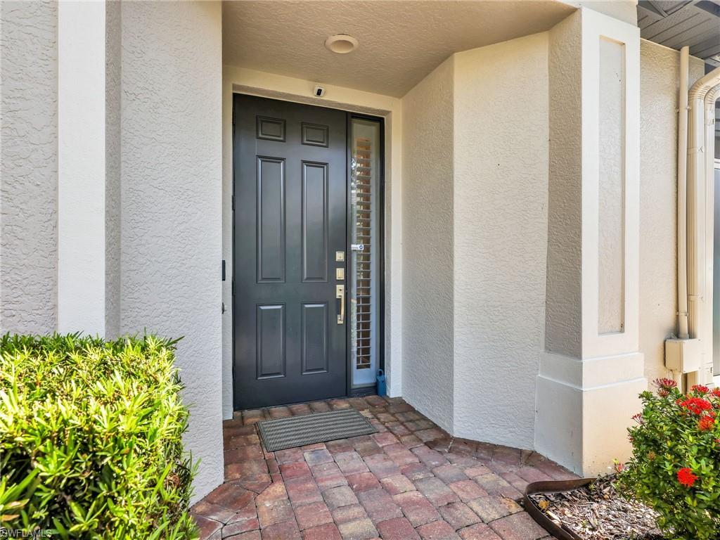 Light south facing and bright! Discover the perfect blend of luxury, style, and tranquility in this beautifully appointed 3-bedroom, 2-bath home, located in the highly sought-after gated community of Tarpon Bay. This residence boasts a private setting, thoughtfully designed to offer peace and seclusion with no road noise, ensuring a serene living environment. Step inside to an open and modern floor plan featuring professional designer finishes throughout. The living spaces are illuminated by striking designer lighting, while custom window treatments add an extra layer of sophistication. The kitchen is a chef's dream, adorned with granite countertops, natural gas cooking and outfitted with top-of-the-line appliances. Tarpon Bay is renowned for its incredible amenities, elevating the standard of resort-style living. Residents enjoy access to a breathtaking infinity pool, ideal for relaxing on sunny afternoons. For the active lifestyle, the community features clay tennis courts and a vibrant pickleball community, perfect for socializing and staying fit. Nature lovers will appreciate the three sparkling lakes that dot the landscape, adding to the beauty and tranquility. The home's location is unbeatable-just moments from world-famous beached and the convenience of RSW airport, making both leisure and travel effortless. Experience the best in modern Florida living: a sophisticated home in Tarpon Bay, surrounded by luxury amenities, natural beauty, and a welcoming, active community. NEW Roof. NEW Exterior Paint. NEW interior upgrades. The amenities, Clubhouse, Cable, Wi-Fi, Water, etc. are included. No special assessments.