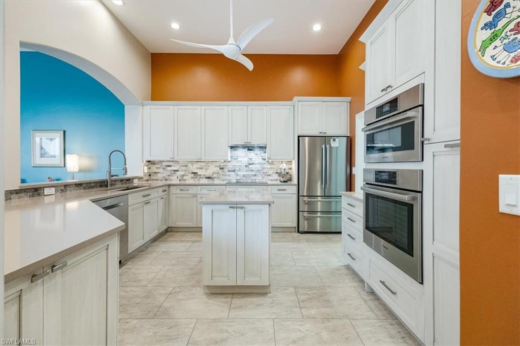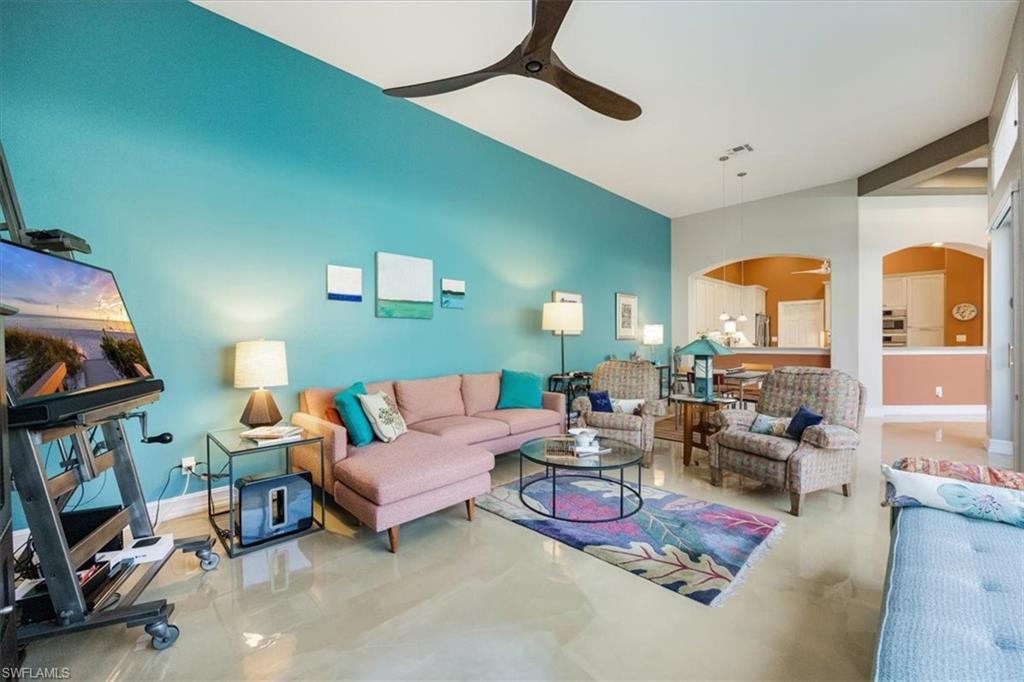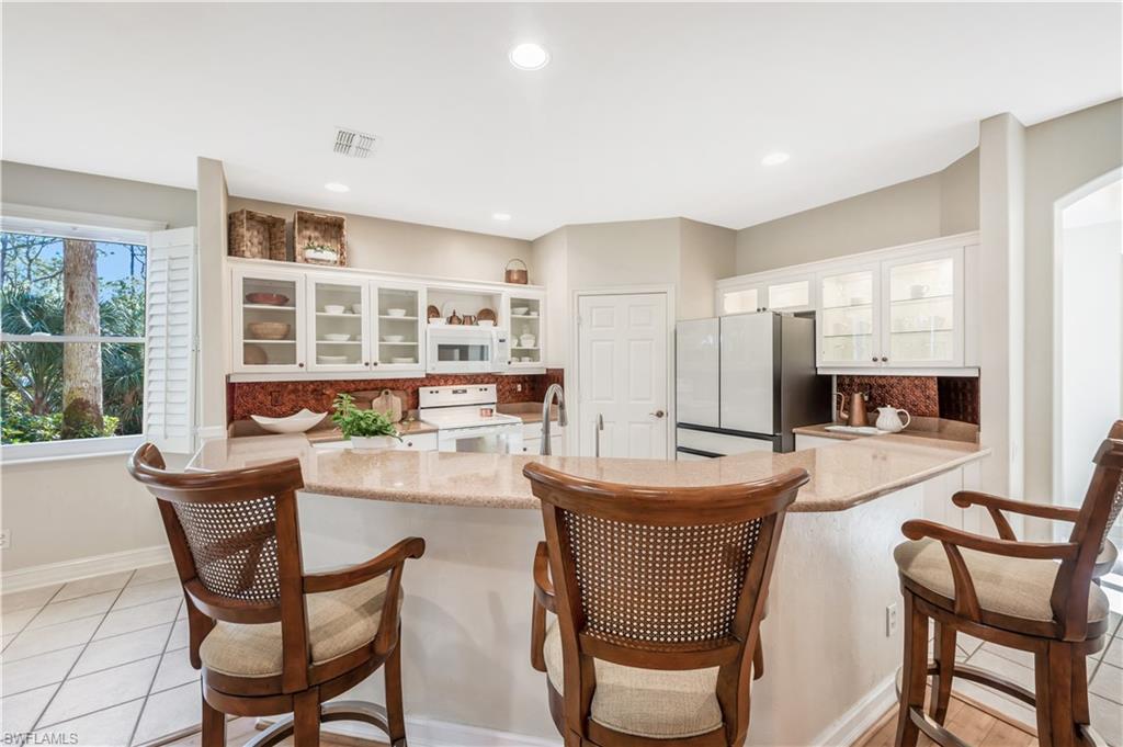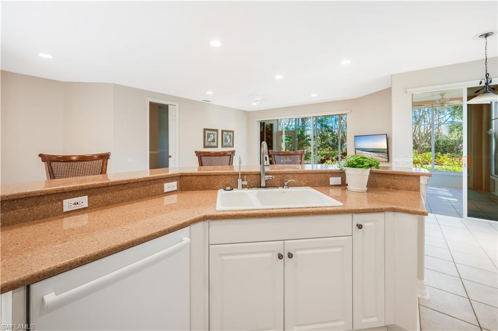 A Villa with private pool priced to sell this June under $600,000 in Tarpon Cove! Rarely available, beautifully renovated Tarpon Cove Villa with private pool, 2 car garage and tropical views is ready for you to Live Your Dream Naples! Tarpon Cove is one of Naples most desirable neighborhoods West of 41! This beautiful one floor living Villa welcomes you with an entertainers dream in upgrades including quartz composite counters in kitchen, under cabinet outlets, custom neutral backsplash, Bosch stainless steel appliances, an induction cooktop, KraftMaid woodframe high end cabinets and a large island with ample room for more than one cook in the kitchen! Beautiful wide open views of pool, tropical landscape and open airspace from your kitchen and living area bring everything we love about Naples and open concept entertaining together in this lovely home. Custom concrete painted flooring and a paint scheme inspired by coastal Naples sets this Villa apart and lends a sophisticated touch for the discerning buyer. Owners have paid attention to every detail when upgrading this home for the buyer down to custom cut out tile niche in the master bathroom shower to hold toiletries out of sight and allow the eyes to be drawn to the neutral tile and custom glass shower door. Your private personal pool (with views and sliders from master and living room) has a new pool heater (2024), new deck drain and new pool light with bulb that will light up the evening sky while you sit on the lanai, take an evening dip or float candles for your enjoyment. Upgrades galore include a new garage door opener and keypad, new electrical panel, washer and dryer, hot water heater, 5 cubic foot chest freezer in the garage and new rollers on sliders to the lanai/pool and HVAC with blue lights. Everything is done for you so you can just walk in the door and enjoy your piece of paradise. Trade your snow shovel for a sand shovel and make this your dream home in this lovely gated community. Tarpon Cove has 3 pools, a jacuzzi, clubhouse and tree lined streets If you love shopping and culinary delights, the Mercato and Whole Foods are minutes away. Grab your bike or walking shoes and be at the beach in no time! Purchase a Tarpon Cove Yacht and Raquet Club membership with boat shuttle to Wiggins Pass beach makes the gulf waters even closer. Vanderbilt Beach sunsets are waiting so bring your charcuterie, blanket and look no further! Come Live Your Dream Naples!
