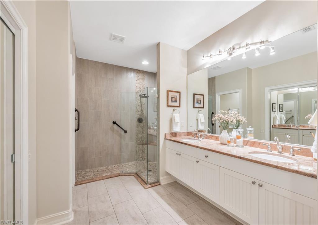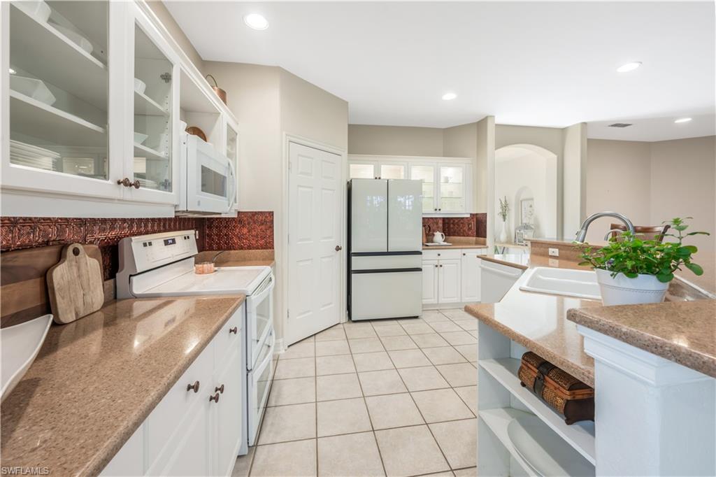Beautifully maintained COMMODORE model ATTACHED VILLA in desirable TARPON COVE. This spacious 3BR/2BA home features an open floor plan with CATHEDRAL ceilings, abundant natural light, and neutral finishes. The SPACIOUS kitchen offers white cabinetry, white Corean countertops, a breakfast bar, and a cozy eat-in nook. PLANTATION SHUTTERS throughout and manual storm shutters for peace of mind. Recent updates include a NEWER TILE ROOF (2021), and A/C and water heater (both just 2 years old).The primary suite includes TWO walk-in closets and an ensuite bath with DUAL vanities, soaking tub, and SEPARATE shower. Enjoy relaxing on the screened lanai with a peaceful garden view. Two-car garage for convenience. Tarpon Cove offers resort-style amenities with 3 pools, tennis, fitness center, and OPTIONAL Yacht & Racquet Club membership with boat shuttle to the beach. Minutes to Gulf beaches, dining, and shopping in beautiful NAPLES.