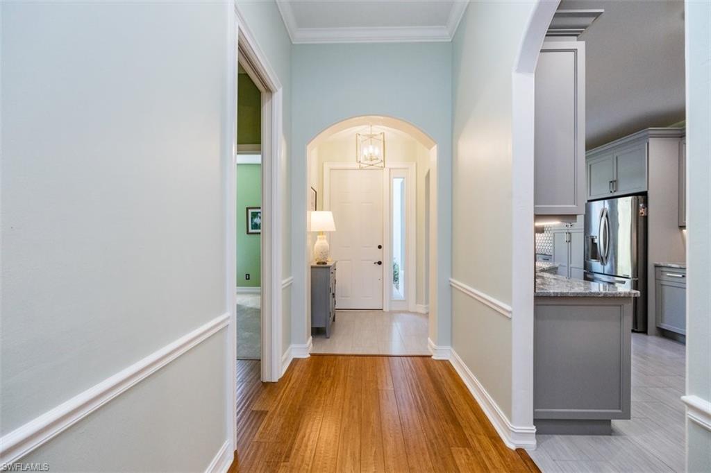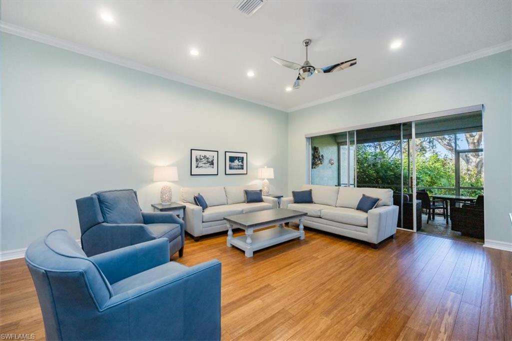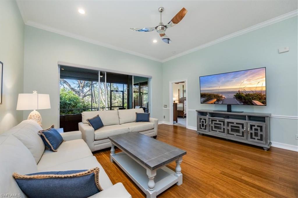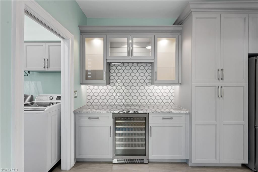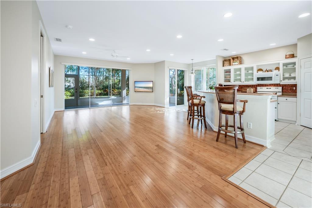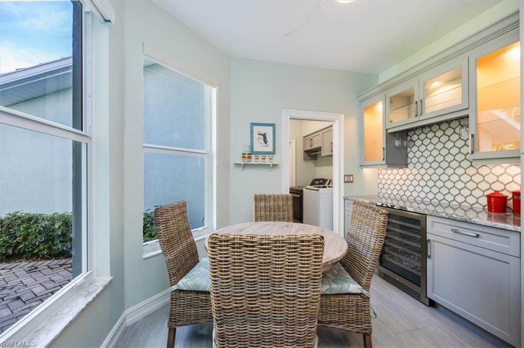 Welcome to this impeccably renovated carriage home tucked inside the highly sought-after Tarpon Cove community. This elegant residence lives like a single-family home and showcases high-end finishes throughout- including a custom designer kitchen with luxury cabinetry, premium appliances, and built-in bar with wine fridge and a dedicated coffee station. Beautiful wood flooring flows through the main living areas, complemented by plantation shutters, electric window shades and impact resistant windows for year round peace of mind. The spacious screened lanai features an electric hurricane shutter allowing you to secure the space with ease. Set on a private cul-de-sac this home offers serene setting and an expansive backyard- perfect for evening relaxation and taking in the west-facing sunset exposure. Just minutes from Wiggins Pass and Vanderbilt Beach, the location is ideal for coastal living. Residents also have the opportunity to join Tarpon Cove's highly coveted membership, which includes a private boat shuttle to Delnor-Wiggins Beach, state of the art fitness center, fine dining restaurant, social events, resort-style pool with poolside service, tennis and bocce courts. Experience luxury, convenience and coastal charm; make this move-in ready home yours, today!