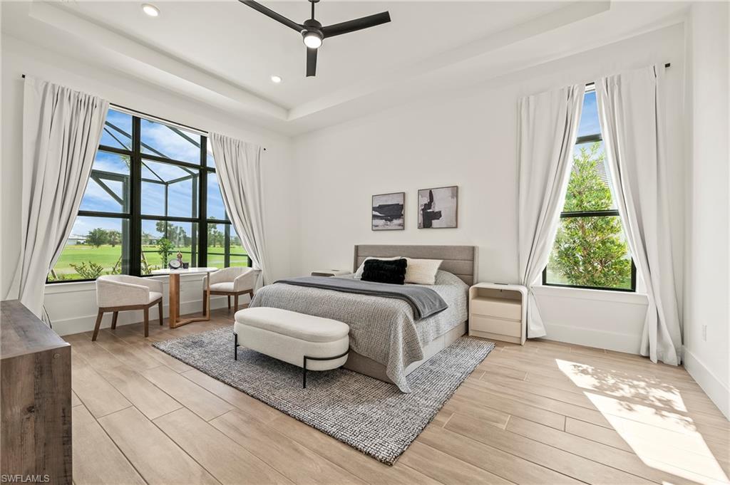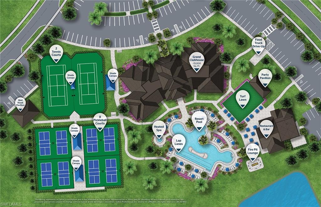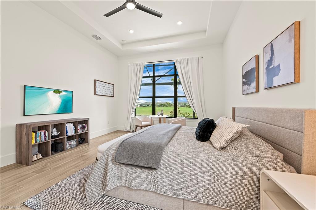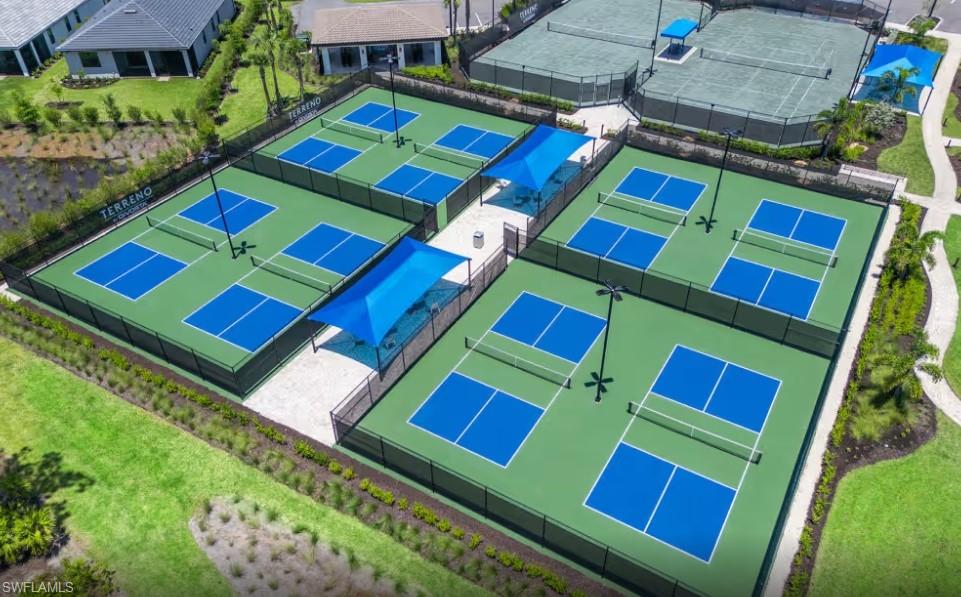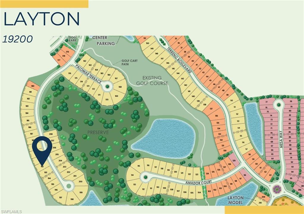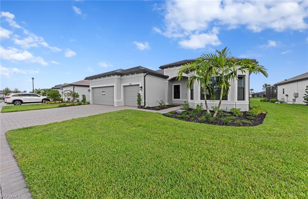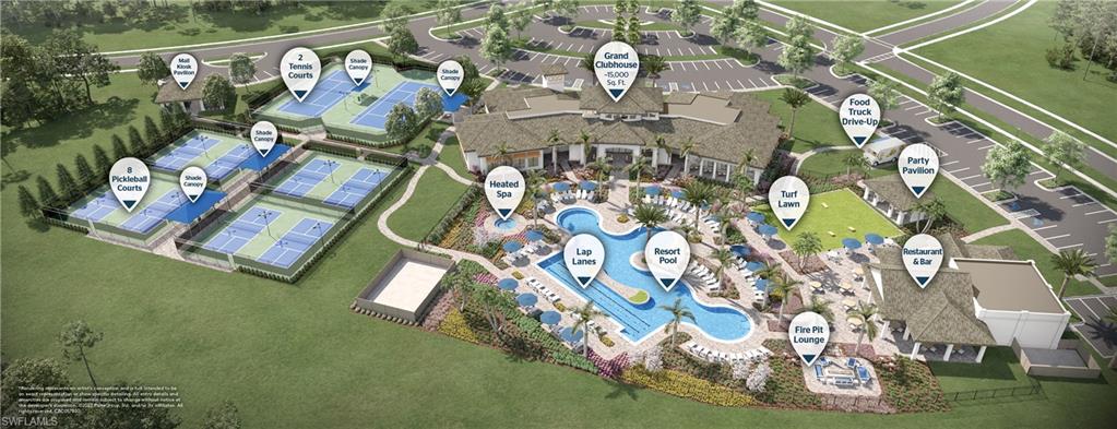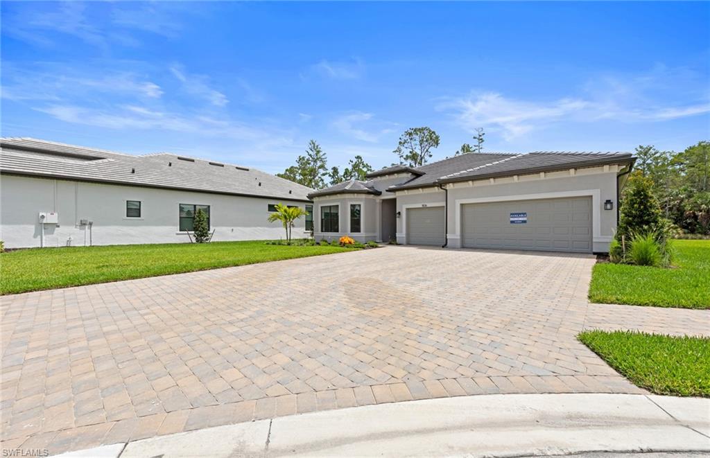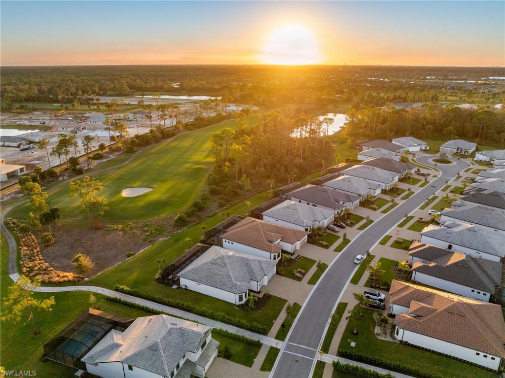 New construction home available now! This Layton 3-car garage, 3 bath+den, screened stunning custom pool and spa home is on one of, if not thee best lots in Terreno. This gem sits within a cul-de-sac and has south facing views of the golf course and lake. Must see in person! This home has been built with a ton of upgrades including: enlarged owner's shower with dual showerheads, separate entry to the screened in lanai from owner's suite, full laundry upgrade including cabinets/countertops with a utility sink, tray ceiling in the enclosed flex room, group 4 countertops, group 5 cabinets, stainless steel appliances including KA 48" built-in refrigerator, floor outlets, under cabinet lighting, pendant pre-wiring, epoxy flooring finish and stucco on walls in garage & more. Terreno by DiVosta is a gated community offering a resort lifestyle with open floor plans, gourmet kitchens, and large outdoor living spaces. For those looking for resort lifestyle communities with private amenities and modern houses, or luxury homes for sale in Naples, FL, Terreno should be your top choice. Neighborhood features include 15,000 sq. ft. grand clubhouse with large community room for events, catering kitchen, state-of-the-art fitness center, exercise studio, 8 pickleball courts, 2 tennis courts, dog park, playground, firepit lounge, dog park, resort style pool, lap lanes, heated spa, full-service restaurant bar & grill, food truck drive-up, 18-hole public golf-course with golf-cart path next door & more!