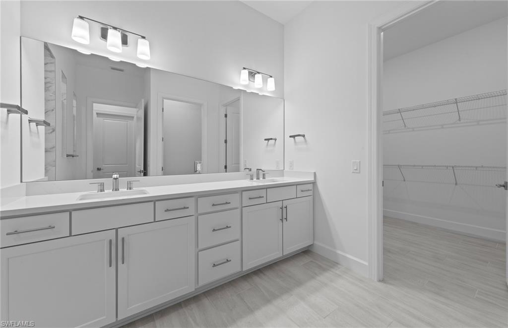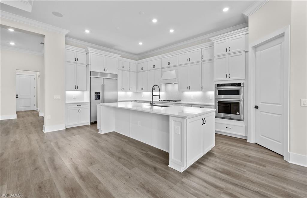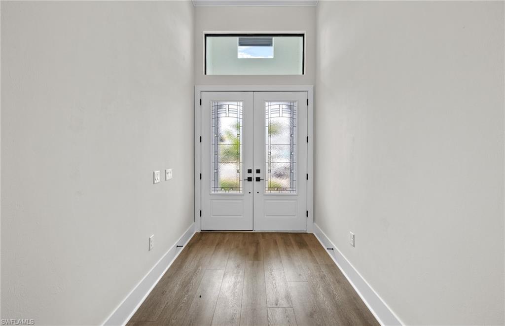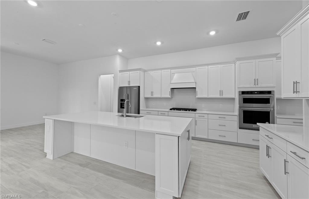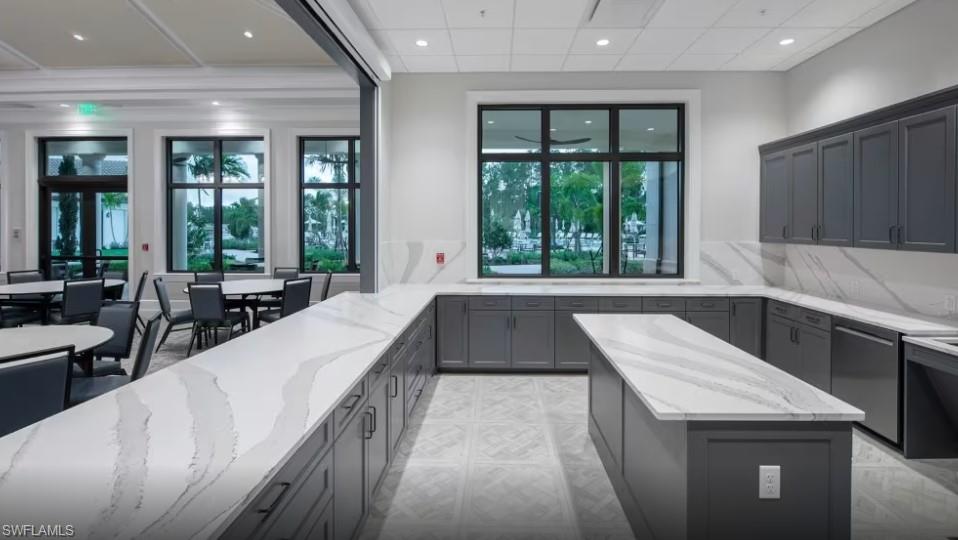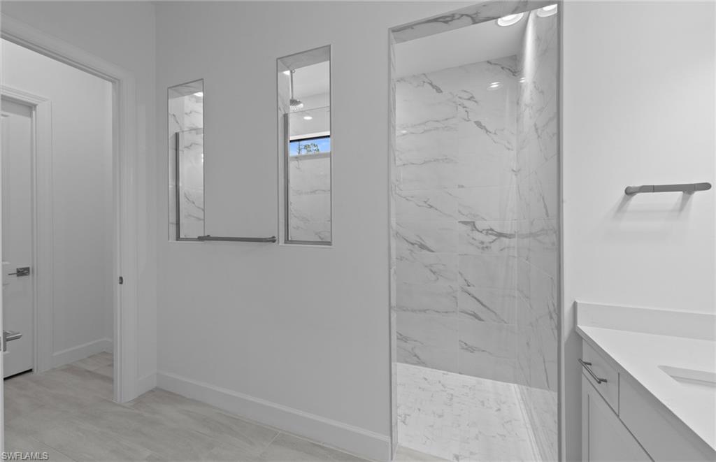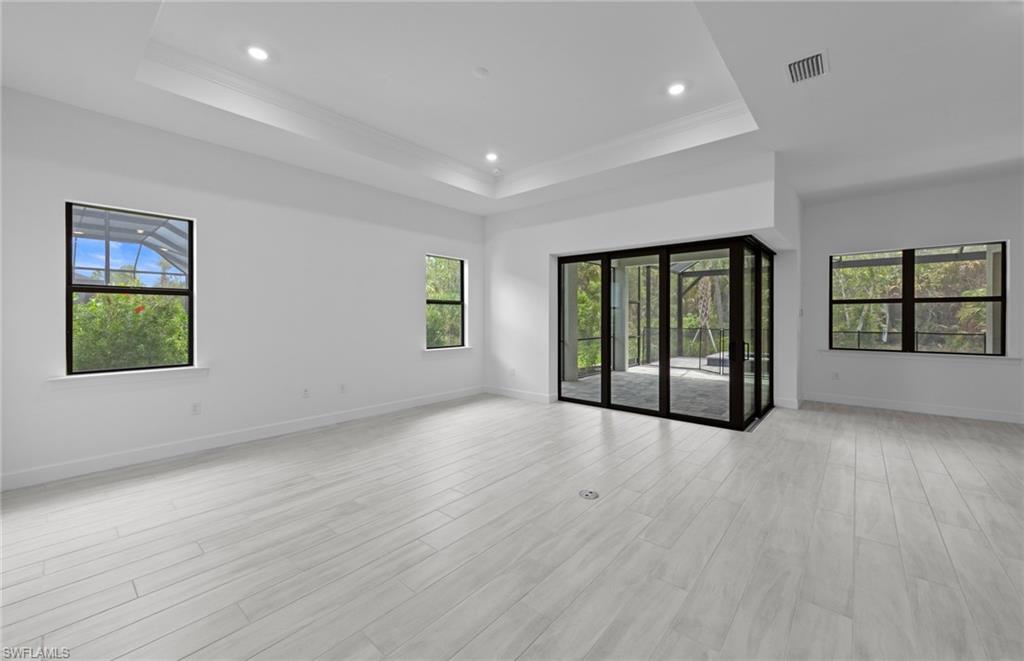 New construction Stellar plan with water views - AVAILABLE NOW! This Stellar pool & spa home features white cabinetry with matte black pulls and high end quartz countertops, impact windows, 10' zero corner sliding glass door (impact), built in kitchen appliances, beautiful wood look tile floors throughout, extended covered lanai with outdoor kitchen prep, 4' garage extension with epoxy finish, & so much more! Terreno by DiVosta is a gated community offering a resort lifestyle with open floor plans, gourmet kitchens, and large outdoor living spaces. For those looking for resort lifestyle communities with private amenities and modern houses, or luxury homes for sale in Naples, FL, Terreno should be your top choice. Neighborhood features include 15,000 sq. ft. grand clubhouse with large community room for events, catering kitchen, state-of-the-art fitness center, exercise studio, 8 pickleball courts, 2 tennis courts, dog park, playground, firepit lounge, dog park, resort style pool, lap lanes, heated spa, full-service restaurant bar & grill, food truck drive-up, 18-hole public golf-course next door & more!