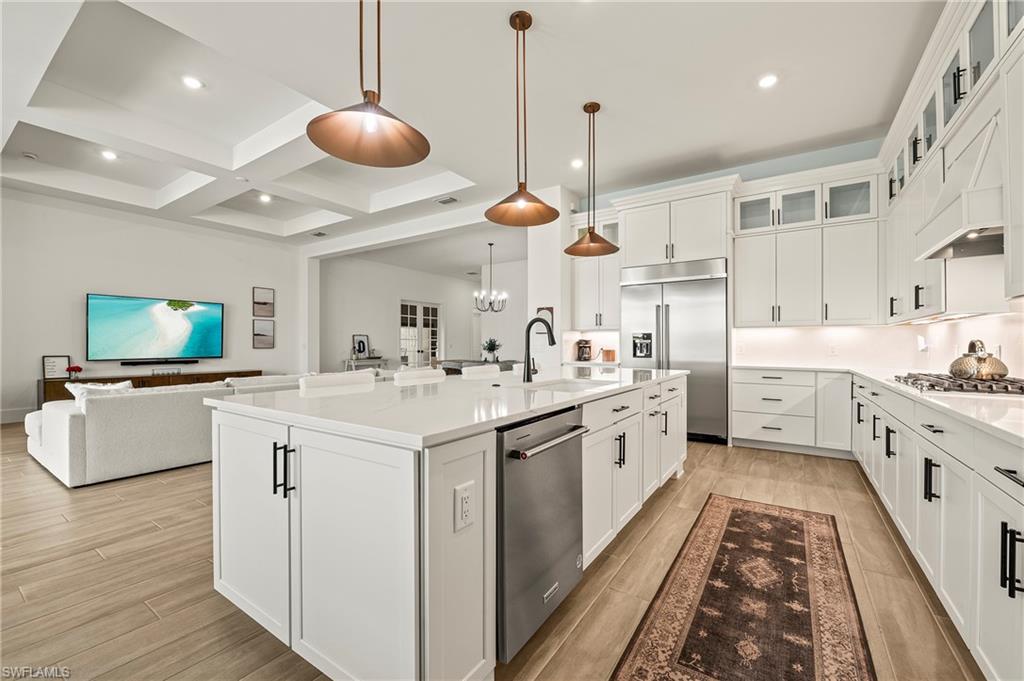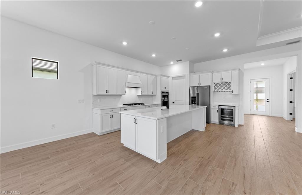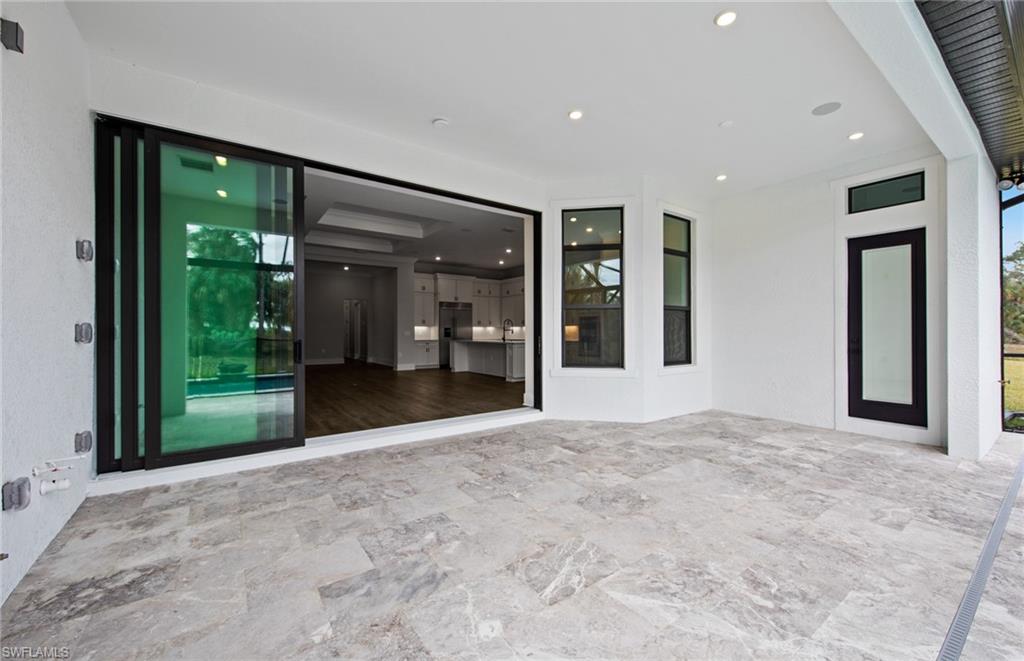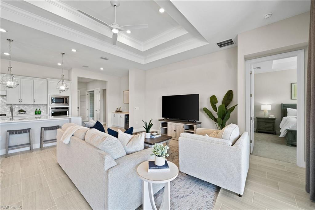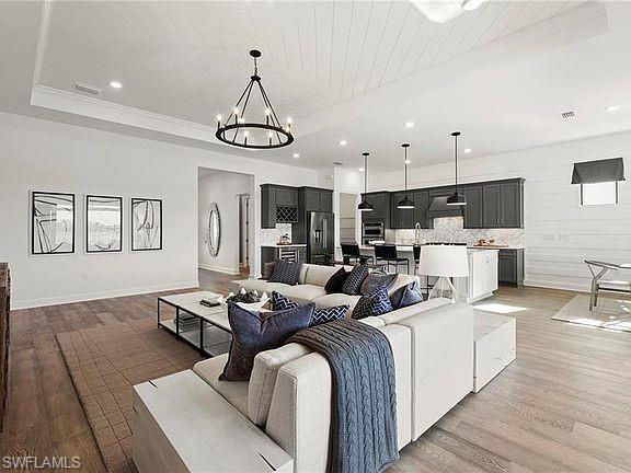 Property staged for photos, this home is a BLANK CANVAS, NEWLY CONSTRUCTED with TALL ceilings, CUSTOM molding and a bright OPEN space!! Enjoy working from home in this impressive den/office filled with plenty of sunlight that flows beautifully into the main living area! Entertaining is FUN with the newly added custom bar equipped with beverage fridge! UPGRADED built in kitchen with high end KitchenAid appliances, double oven, large island and hood that blends beautifully with the cabinetry! Enjoy Sonos home audio in the Primary, Kitchen and Outdoor Lanai never missing a moment of your favorite song! Smart home thermostat, automation control for garage door and front door lock as well as Camera Security system indoors and out makes for ease of monitoring! Stay organized with custom drop zone added just before entering the large 3 car garage complete with epoxy floor! Finished nicely with window coverings, light fixtures, ceiling fans and drapes to make this house a home! Spend your nights in the pool/spa with the ambiance of remote controlled led lighting! Located in TERRENO, at Valencia, an AMENITY RICH, NATURAL GAS community with ONLY SINGLE family homes, located in the heart of ALL the NEW development here in Golden Gate Estates! Secure this home now before Amenity campus is complete, SUMMER 2025! TERRENO will have a BEAUTIFUL modern Coastal Clubhouse, resort style pool, RESTAURANT & BAR ( Olive & Thyme), State of the art fitness Center, Tennis, PICKLEBALL, ACCESS to public golf course, dog park, food truck drive up, playground and more! NEW Publix on Oil Well Opening 2025! With 3 highly rated schools across the street (Elementary, middle & high School) this community is in a GREAT LOCATION for families!! Easy to show, Schedule your tour now!