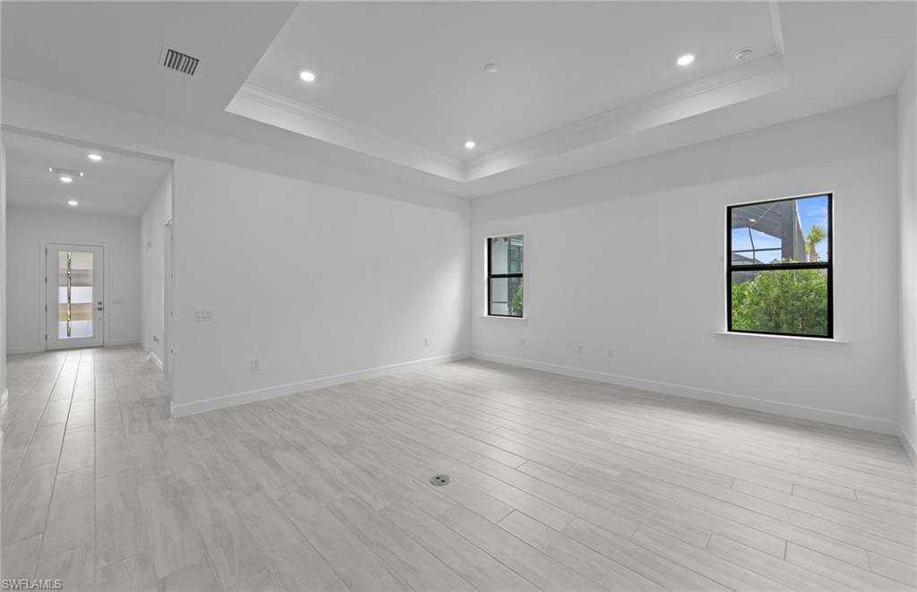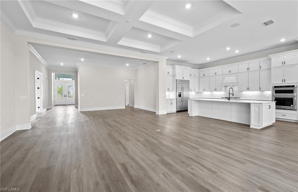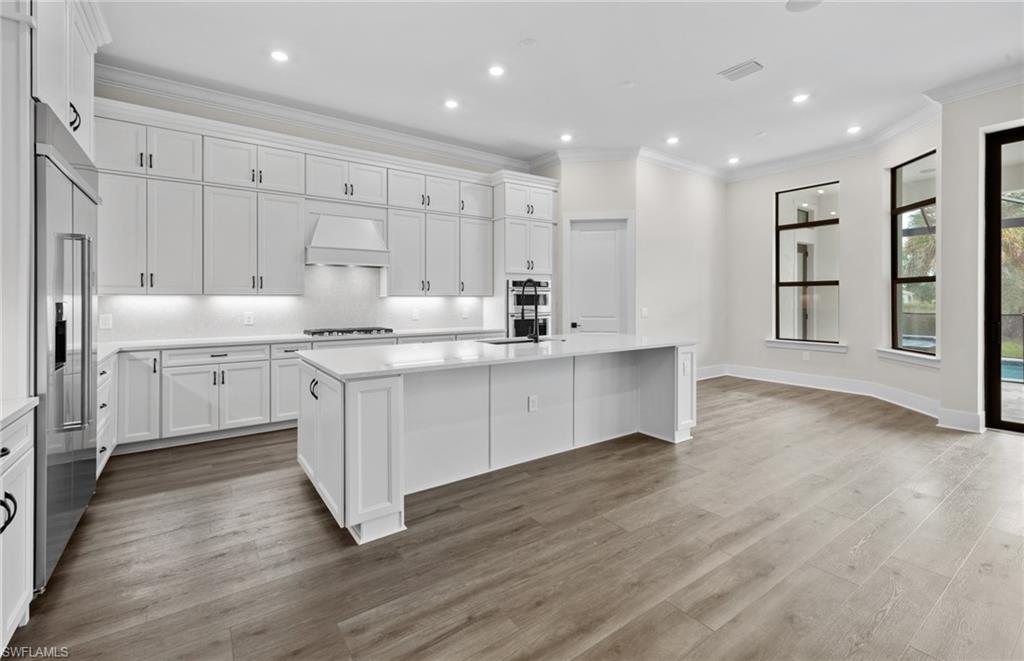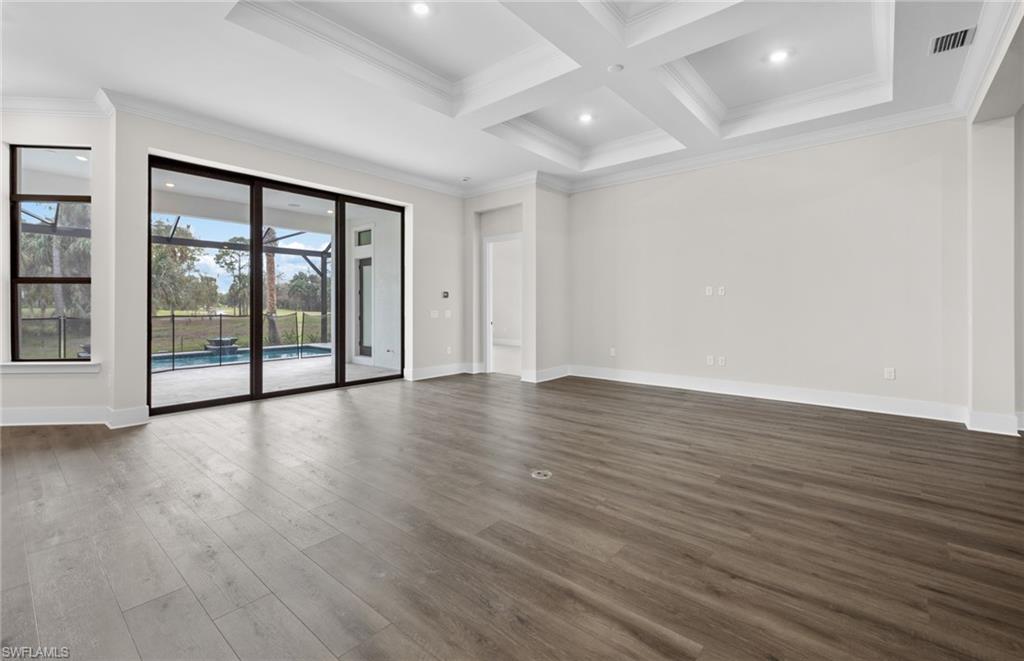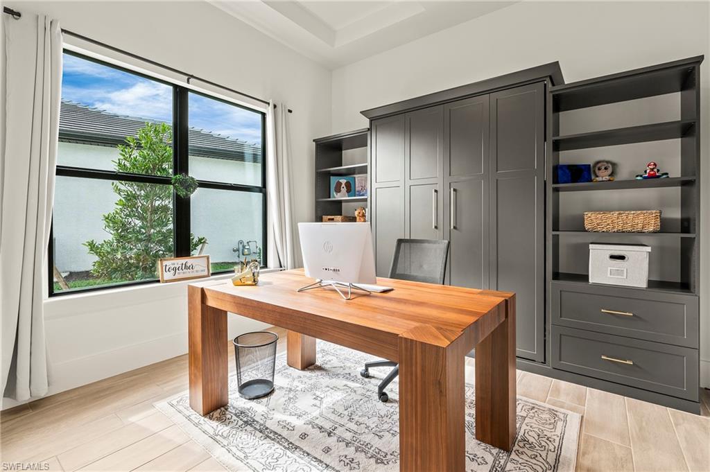 Property staged for photos, this home is a BLANK CANVAS, NEWLY CONSTRUCTED with TALL ceilings, CUSTOM molding and a bright OPEN space!! Enjoy working from home in this impressive den/office filled with plenty of sunlight that flows beautifully into the main living area! Entertaining is FUN with the newly added custom bar equipped with beverage fridge! UPGRADED built in kitchen with high end KitchenAid appliances, double oven, large island and hood that blends beautifully with the cabinetry! Enjoy Sonos home audio in the Primary, Kitchen and Outdoor Lanai never missing a moment of your favorite song! Smart home thermostat, automation control for garage door and front door lock as well as Camera Security system indoors and out makes for ease of monitoring! Stay organized with custom drop zone added just before entering the large 3 car garage complete with epoxy floor! Finished nicely with window coverings, light fixtures, ceiling fans and drapes to make this house a home! Spend your nights in the pool/spa with the ambiance of remote controlled led lighting! Located in TERRENO, at Valencia, an AMENITY RICH, NATURAL GAS community with ONLY SINGLE family homes, located in the heart of ALL the NEW development here in Golden Gate Estates! Secure this home now before Amenity campus is complete, SUMMER 2025! TERRENO will have a BEAUTIFUL modern Coastal Clubhouse, resort style pool, RESTAURANT & BAR ( Olive & Thyme), State of the art fitness Center, Tennis, PICKLEBALL, ACCESS to public golf course, dog park, food truck drive up, playground and more! NEW Publix on Oil Well Opening 2025! With 3 highly rated schools across the street (Elementary, middle & high School) this community is in a GREAT LOCATION for families!! Easy to show, Schedule your tour now!