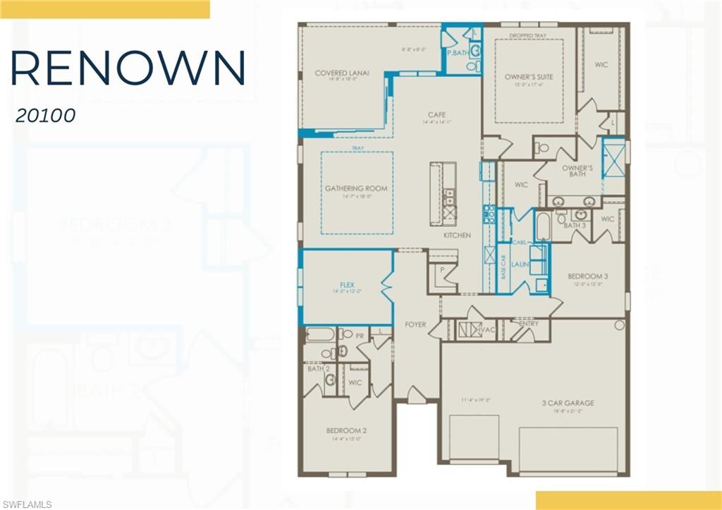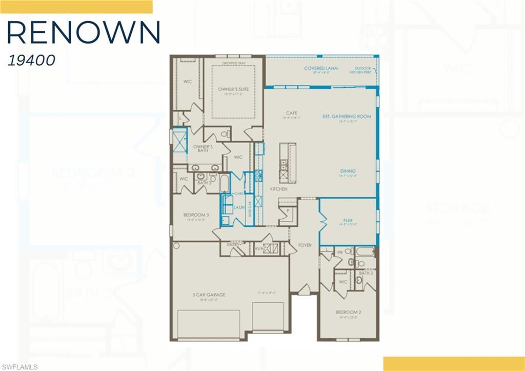 This stunning Renown floor plan is a brand-new, move-in-ready single-family home offering the ultimate in luxury and functionality. Featuring three spacious ensuite bedrooms, this thoughtfully designed layout includes a large gathering room perfect for entertaining and everyday living. The heart of the home is an upgraded gourmet kitchen with built-in appliances, white cabinetry with bronze gold hardware, a beverage cooler, and a cabinet-style hood that adds a custom touch. Step outside to your private custom pool with screened cage, ideal for enjoying Florida’s beautiful weather year-round. The home also includes an outdoor kitchen pre-plumb, making it perfect for entertaining. Inside, you'll find gorgeous 8x48 tile flooring throughout, an enlarged walk-in shower in the owner’s suite, and a full laundry room upgrade complete with cabinetry, countertops, and a sink—all conveniently connected to the owner’s walk-in closet for added ease. The epoxy-finished garage adds the finishing touch to this well-appointed home. Terreno by DiVosta is a gated community offering a resort lifestyle with open floor plans, gourmet kitchens, and large outdoor living spaces. For those looking for resort lifestyle communities with private amenities and modern houses, or luxury homes for sale in Naples, FL, Terreno should be your top choice. Neighborhood features include 15,000 sq. ft. grand clubhouse with large community room for events, catering kitchen, state-of-the-art fitness center, exercise studio, 8 pickleball courts, 2 tennis courts, dog park, playground, firepit lounge, dog park, resort style pool, lap lanes, heated spa, full-service restaurant bar & grill, food truck drive-up, 18-hole public golf-course next door & more! Photos are from a furnished model. Options for this home may vary.