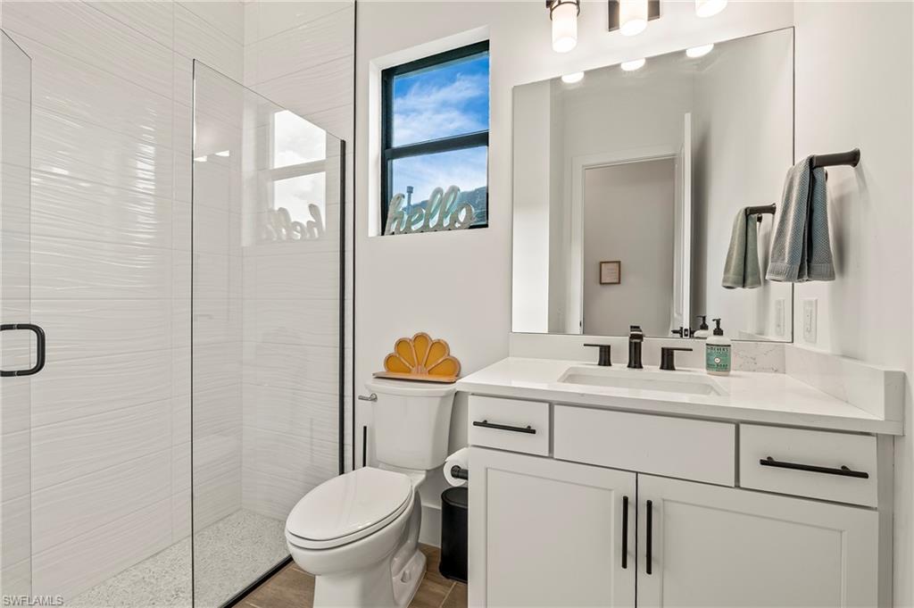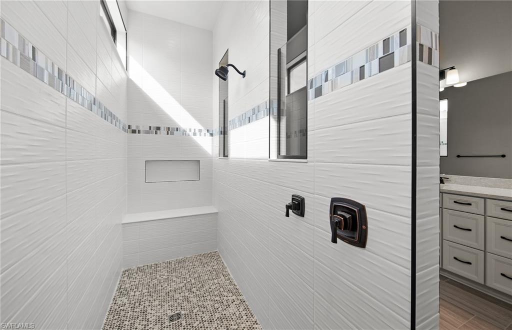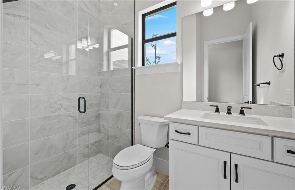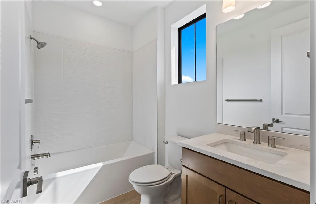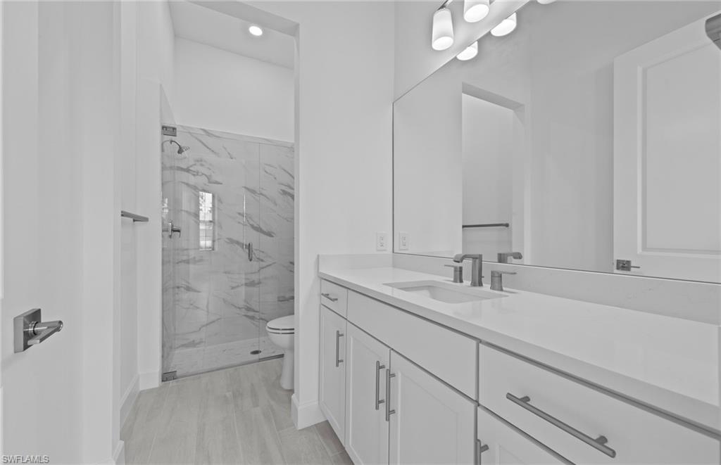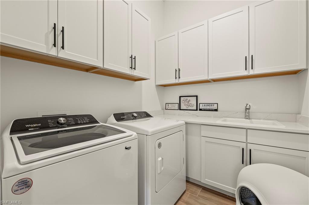 Move-in ready and located in the premier gated community of Terreno by DiVosta, the newly constructed Layton floorplan offers 4 bedrooms, 3.5 bathrooms, and exceptional outdoor living. This home showcases a custom pool with screened enclosure and a dedicated pool bath—perfect for entertaining or relaxing in your private oasis. Interior upgrades include stylish two-tone kitchen cabinetry with a built-in hood, quartz countertops, built-in KitchenAid appliances, and 8"x40" tile flooring throughout. The laundry room is equipped with upper cabinets and countertops for added convenience, and the garage features a durable epoxy finish. The home also includes a pre-plumb for an outdoor kitchen, enhancing its resort-style appeal. Terreno by DiVosta is a gated Naples community designed for those seeking luxury homes and a vibrant resort lifestyle. Community amenities include a 15,000 sq. ft. grand clubhouse with a large event space, catering kitchen, state-of-the-art fitness center, and exercise studio. Outdoor recreation is abundant with 8 pickleball courts, 2 tennis courts, a resort-style pool with lap lanes and heated spa, fire pit lounge, playground, and a dog park. Residents also enjoy a full-service restaurant, bar & grill, food truck drive-up area, and access to an adjacent 18-hole public golf course. For those searching for modern homes in a resort-style setting, Terreno offers an unmatched lifestyle in Naples, FL. Photos are from a furnished model. Options for this home may vary.