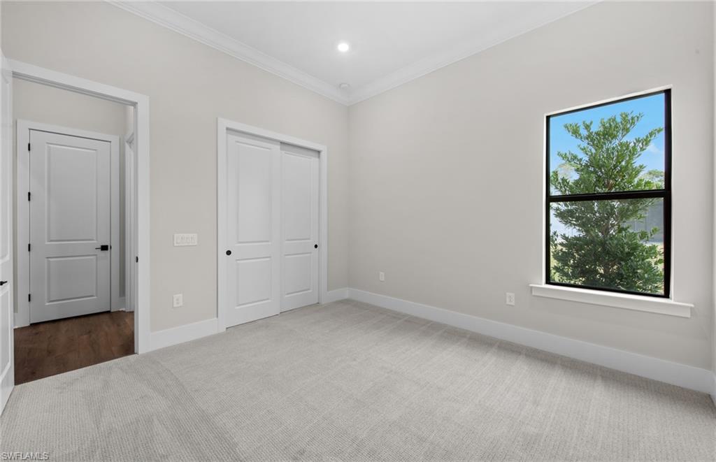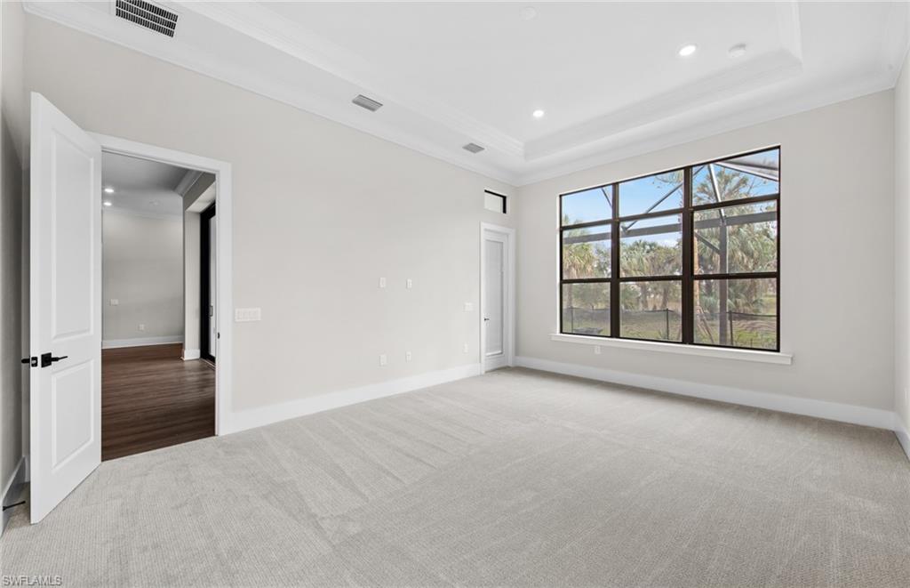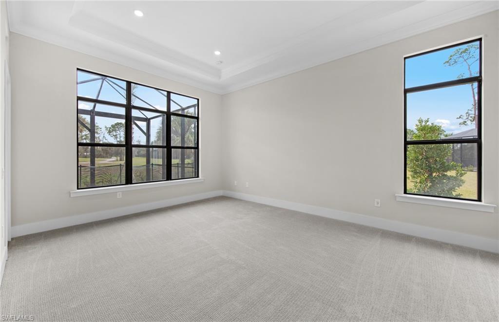 This stunning Stellar Home Plan with breathtaking, picturesque golf course and preserve views located in highly desirable Naples in the New Construction Community of Terreno by DiVosta featuring three spacious bedrooms, three luxurious bathrooms, a versatile enclosed flex room, and a three-car garage with a 4’extension and epoxy finished flooring is a head-turner that will captivate you! This beautiful Stellar Home boasts a gourmet kitchen with built-in appliances, gorgeous Silestone countertops, a stylish backsplash, sleek white cabinets with Brushed Satin Nickel Pulls, an inviting, bright sunroom, and a welcoming gathering room with a charming tray ceiling adding character and flair, and a zero-corner sliding glass door-perfect for entertaining! The fantastic enclosed flex room could function in a variety of ways. The enclosed flex room could serve as a guest bedroom, a home office, or as a private retreat room for relaxation. Other highlights of this Stellar Home are: an upgraded laundry room with white cabinets, glistening tile flooring throughout, outdoor kitchen pre-plumbing which would be ideal for cooking meals to enjoy with friends and family, and a spectacular, screened-in Custom Pool and Spa-the quintessential spot for a solo swim or for hosting friends. Enter the fabulous, roomy primary suite to experience ultimate bliss and relaxation! The primary suite is the ideal room to unwind inside of and to curl up with your favorite book/watch your favorite show. Escape into the magnificent primary bathroom to create your own private oasis! The exquisite primary bathroom features elegant Silestone countertops, lovely white cabinets, dual sinks, and an enlarged walk-in shower. The primary bathroom is made for self-indulgence, pampering, comfort, and relaxation! The two charming secondary bedrooms and bathrooms offer additional space for rest, relaxation, and pampering! The two enchanting secondary bathrooms feature sparkling Silestone countertops, fantastic white cabinets, and walk-in showers. The wonderful secondary bedrooms and bathrooms would serve as convenient rooms for visiting friends and family. Another perk of this unforgettable abode is the tankless water heater-providing an efficiency upgrade! The amazing amenities at Terreno by DiVosta recently opened! Neighborhood features include a 15,000 sq. ft. grand clubhouse with large community room for events, catering kitchen, state-of-the-art fitness center, exercise studio, 8 pickleball courts, 2 tennis courts, dog park, playground, firepit lounge, resort style pool, lap lanes, heated spa, full-service bar & grill, food truck drive-up, 18-hole public golf course next door & more! This ray of sunshine could be the home of your dreams! Schedule a tour soon!